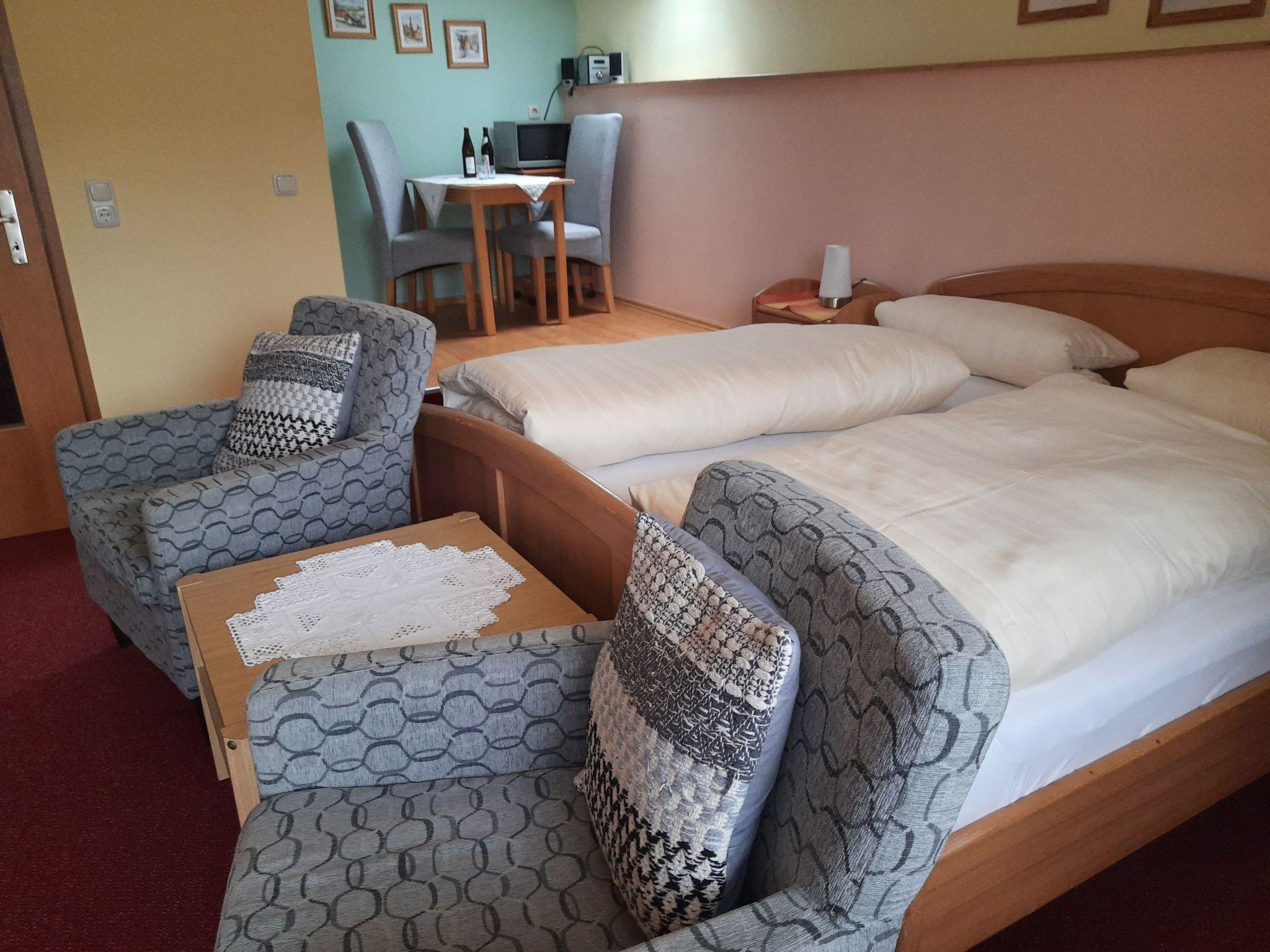 Spacious, well-kept garden with sunbathing lawn, table tennis, garden barbecue, swimming pool in summer. Kneipp treading pool in the neighbouring hiking park.