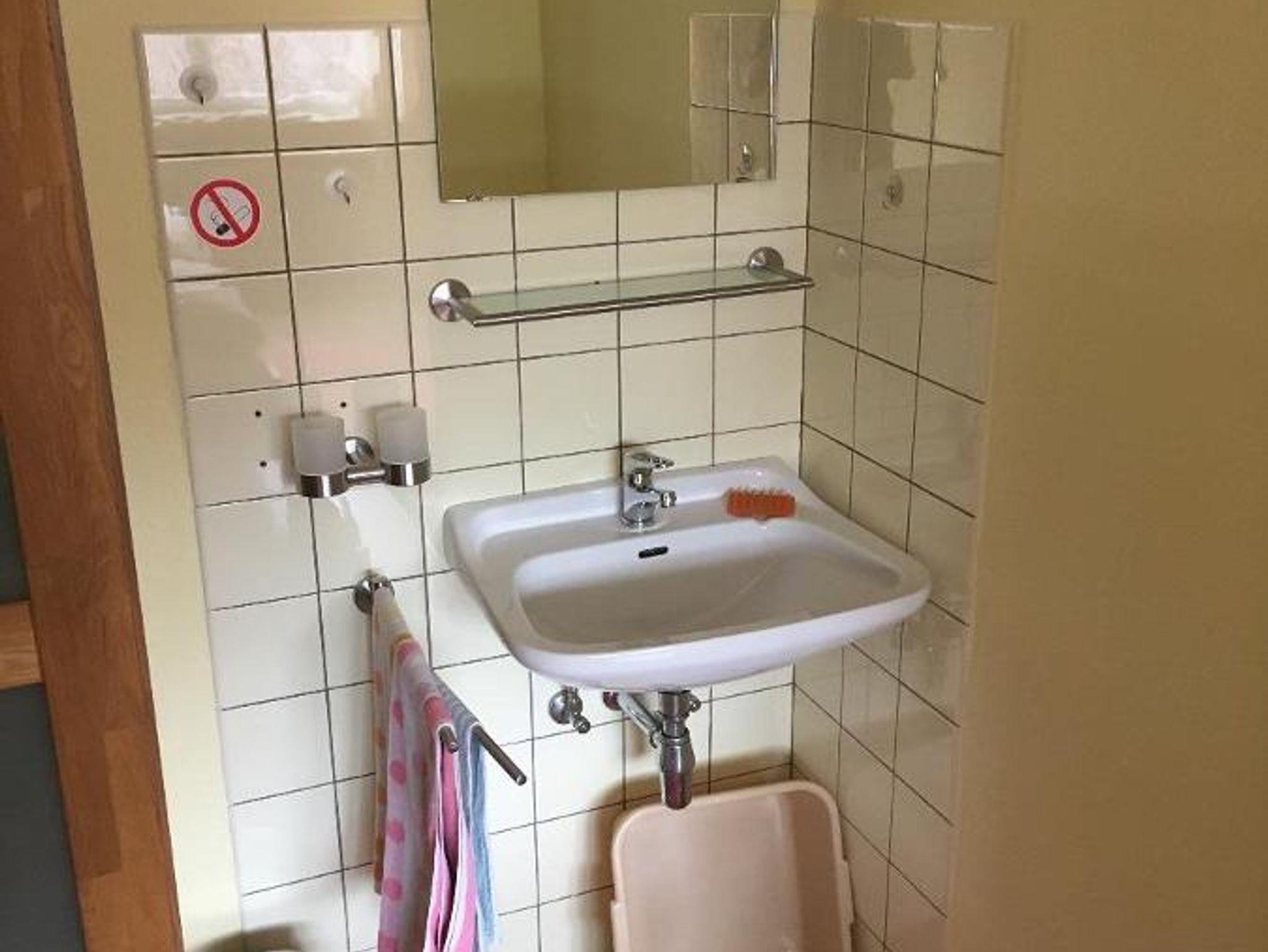 Das Zimmer besteht aus einem Doppelbett (Zustellbett auf Anfrage), einem kleinen Tisch mit 2 Stühlen und einem Waschbecken (Gemeinschafts-Dusche und WC auf der Etage) und einer gemeinschaftlichen Terrasse