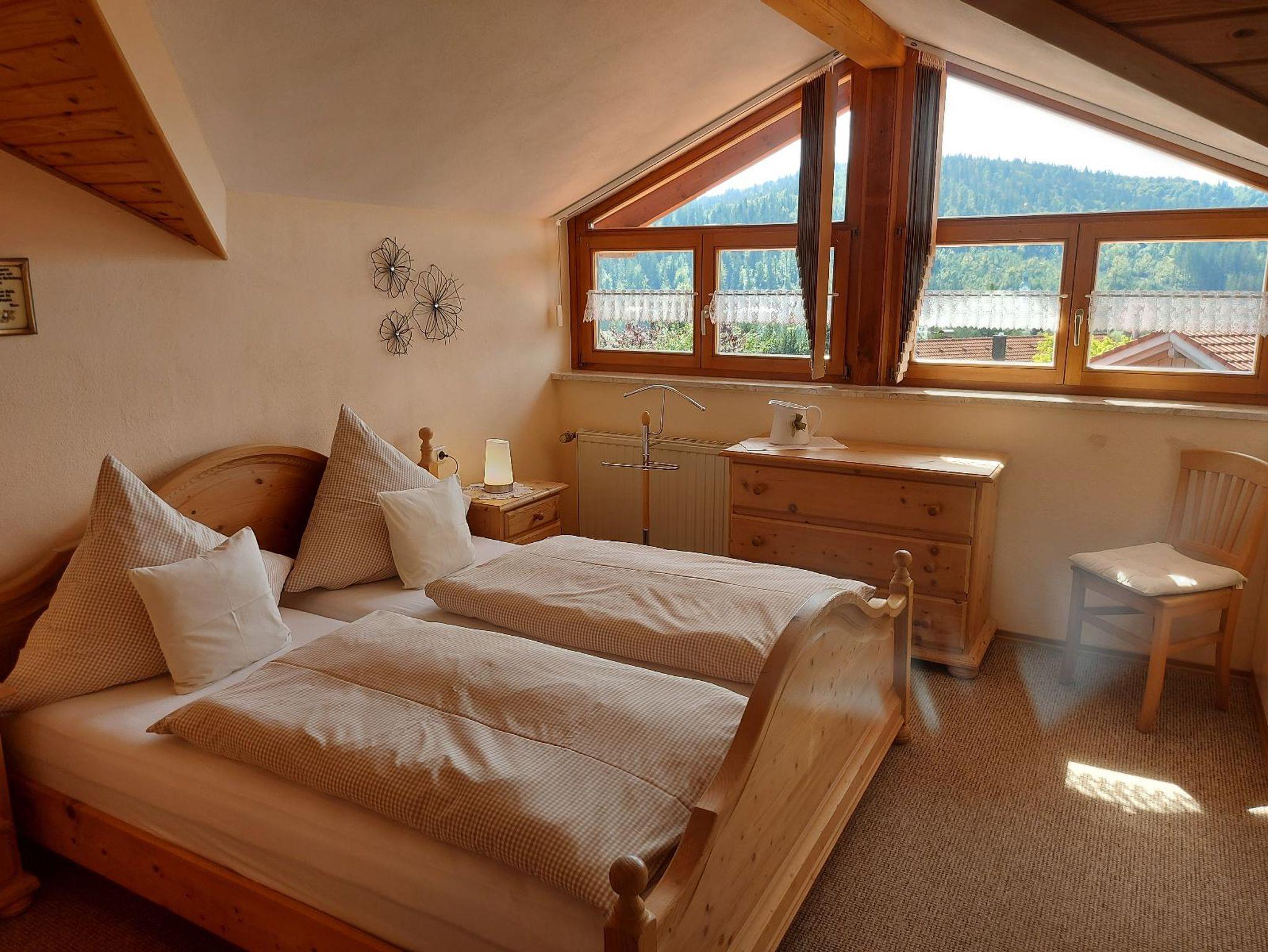 Die helle und geräumige Ferienwohnung (50qm) in Südhanglage ist optimal für 2 Personen geeignet. Am Balkon können Sie den Tag ausklingen lassen und dabei den Blick zum Großen Arber genießen. Die