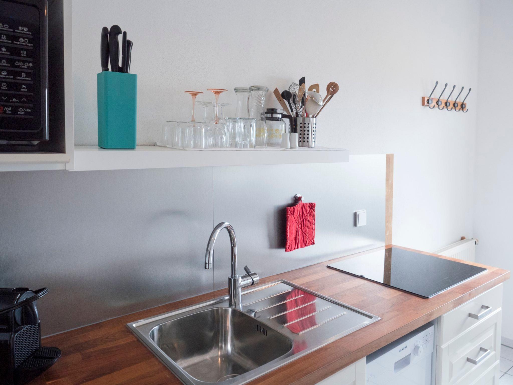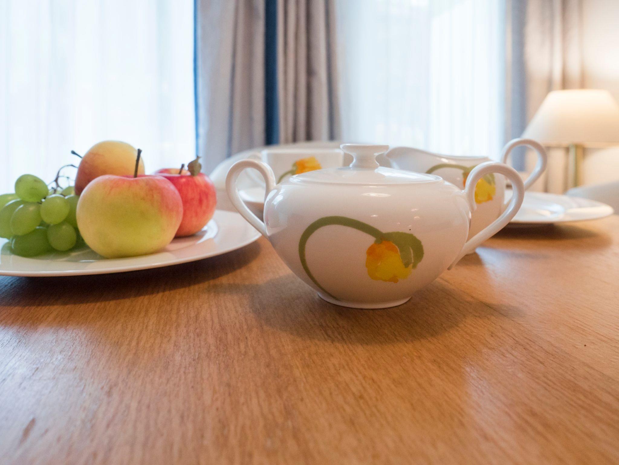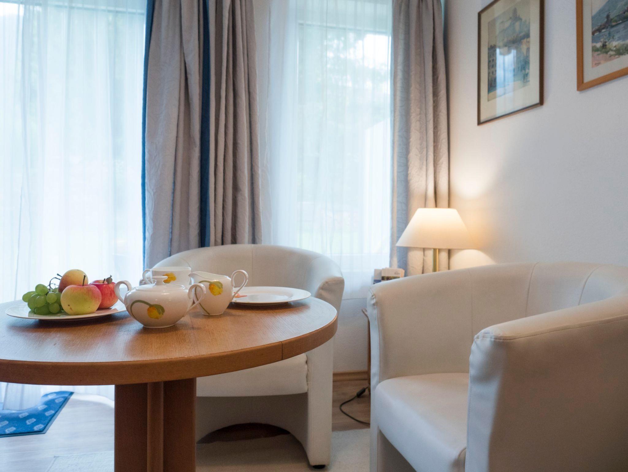Unser 1 Zimmer Appartement mit Wohnschlafraum und Doppelbett lädt Sie zum Verweilen ein. Im Zimmer befindet sich ein Schrank mit Safe, ein Nachtkästchen, Schreibtisch, sowie eine Wohnecke mit Sesseln und einer kleinen Couch. Ein Tisch mit Stuhl, Fernsehen/Radio (Sat DVBT-2) WLan Fritz Box. Die Südterrasse mit Tisch und Stühlen sowie einem Liegestuhl bietet bei schönem Wetter einen Platz zum Geniessen und Verweilen. Der Eingangsbereich mit eigenem Zugang führt Sie in die Diele mit kleiner Garderobe, das Telefonieren ist über WLan möglich. Die Küchenzeile mit Herd, Mikrowelle, Geschirrspüler, Wasserkocher, Nespressomaschine, Toaster ist komplett eingerichtet, eine kleine Essecke ist vorhanden. Das Badezimmer beinhaltet eine Dusche/WC, einen Fön und ein großes Fenster. Die Böden sind im Bad, Eingangsbereich, Küchenzeile und Terrasse gefliest. Ein hochwertiges Vinyl Parkett befindet sich im Wohnschlafraum.