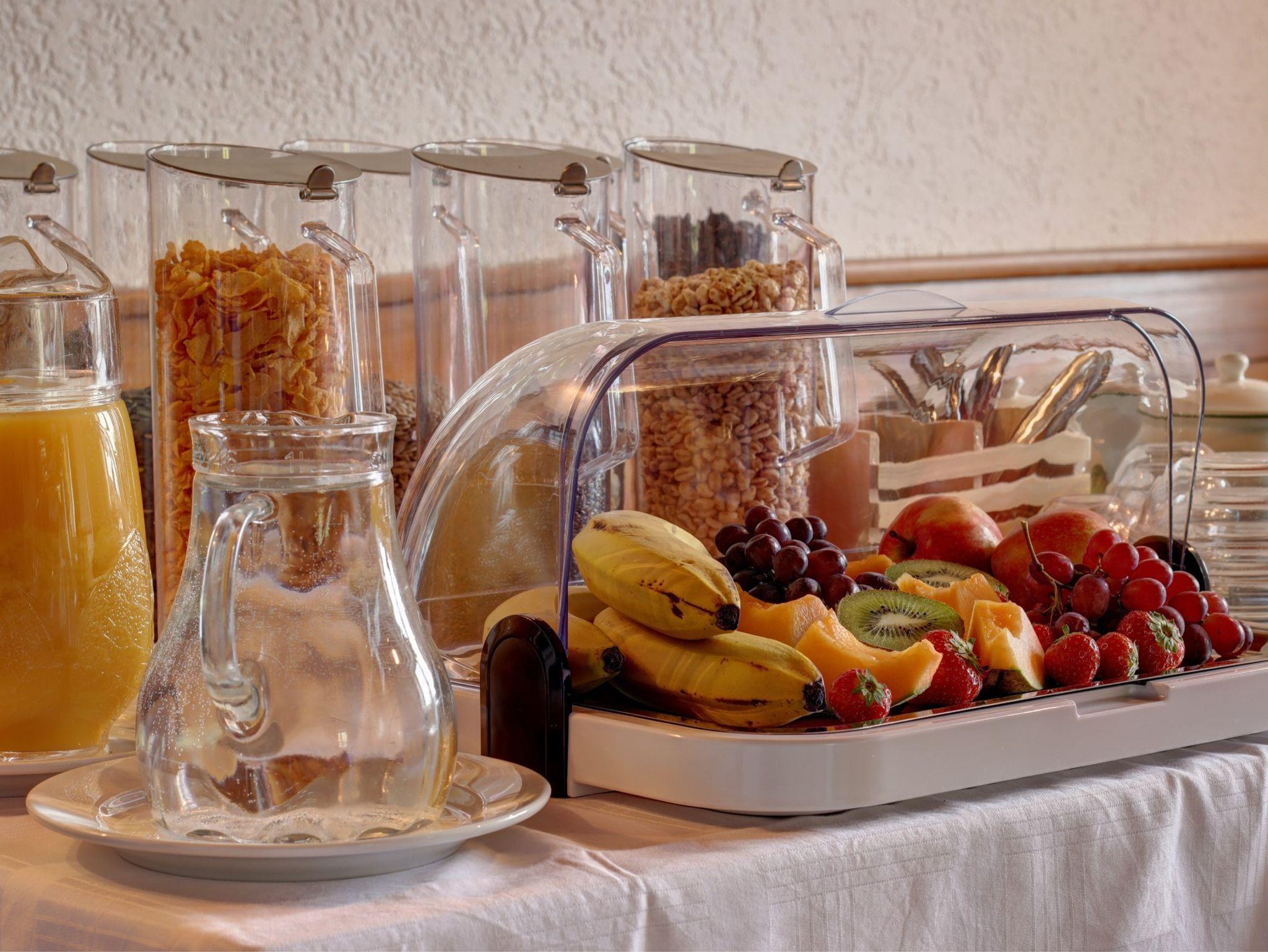 Der Wohnraum ist behaglich eingerichtet und beinhaltet eine gemütliche Sitzgruppe, TV, Safe und einen Wasserkocher. Auf dem Balkon mit Tisch und Stühlen genießen Sie die herrliche Aussicht. In der Dusche mit WC finden Sie einen fest installierten Fön. Das Bett besitzt verstellbare Lattenroste. WLAN ist vorhanden.