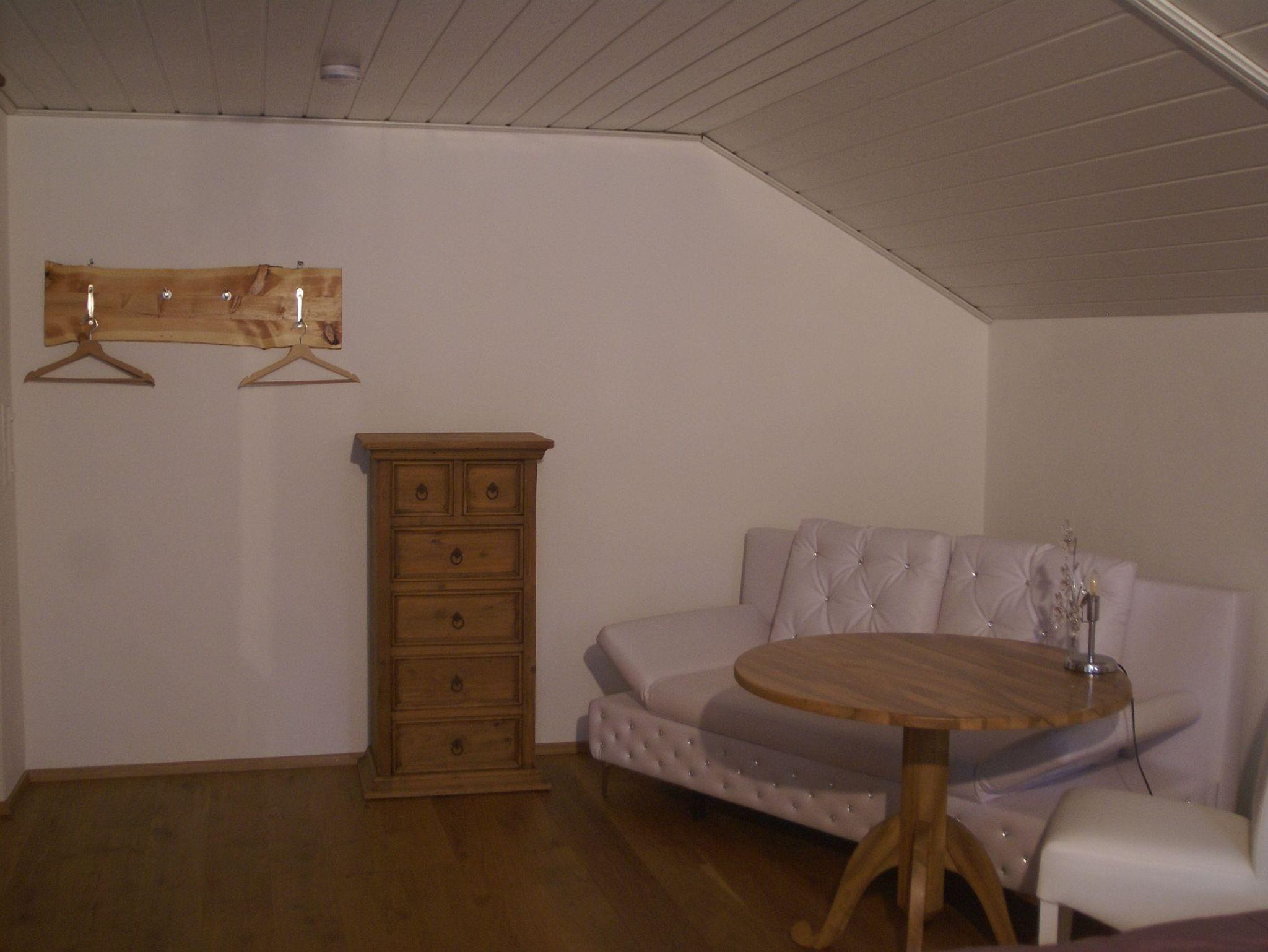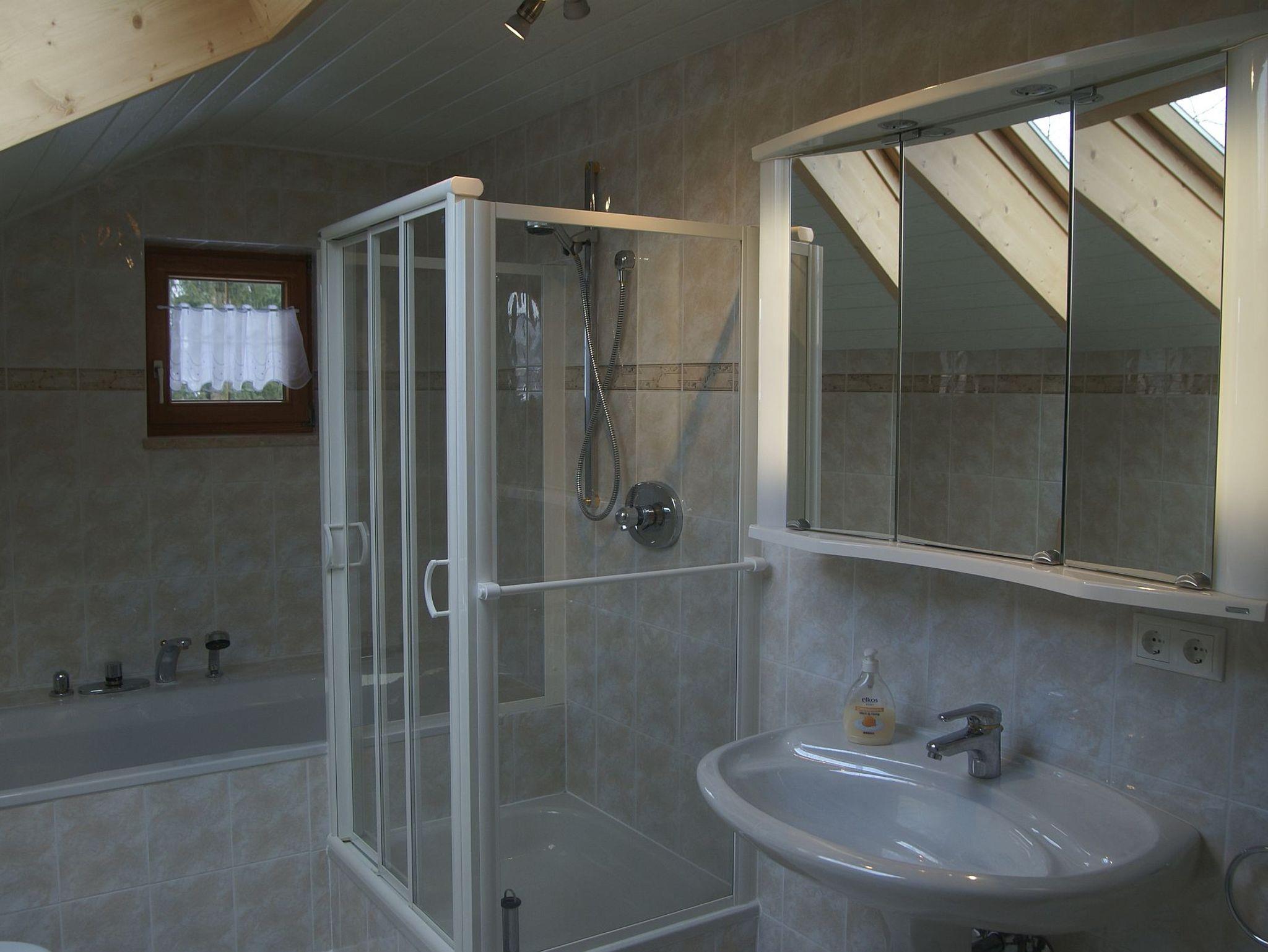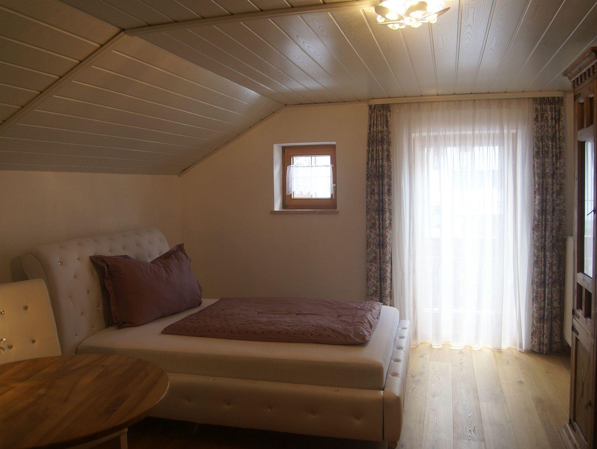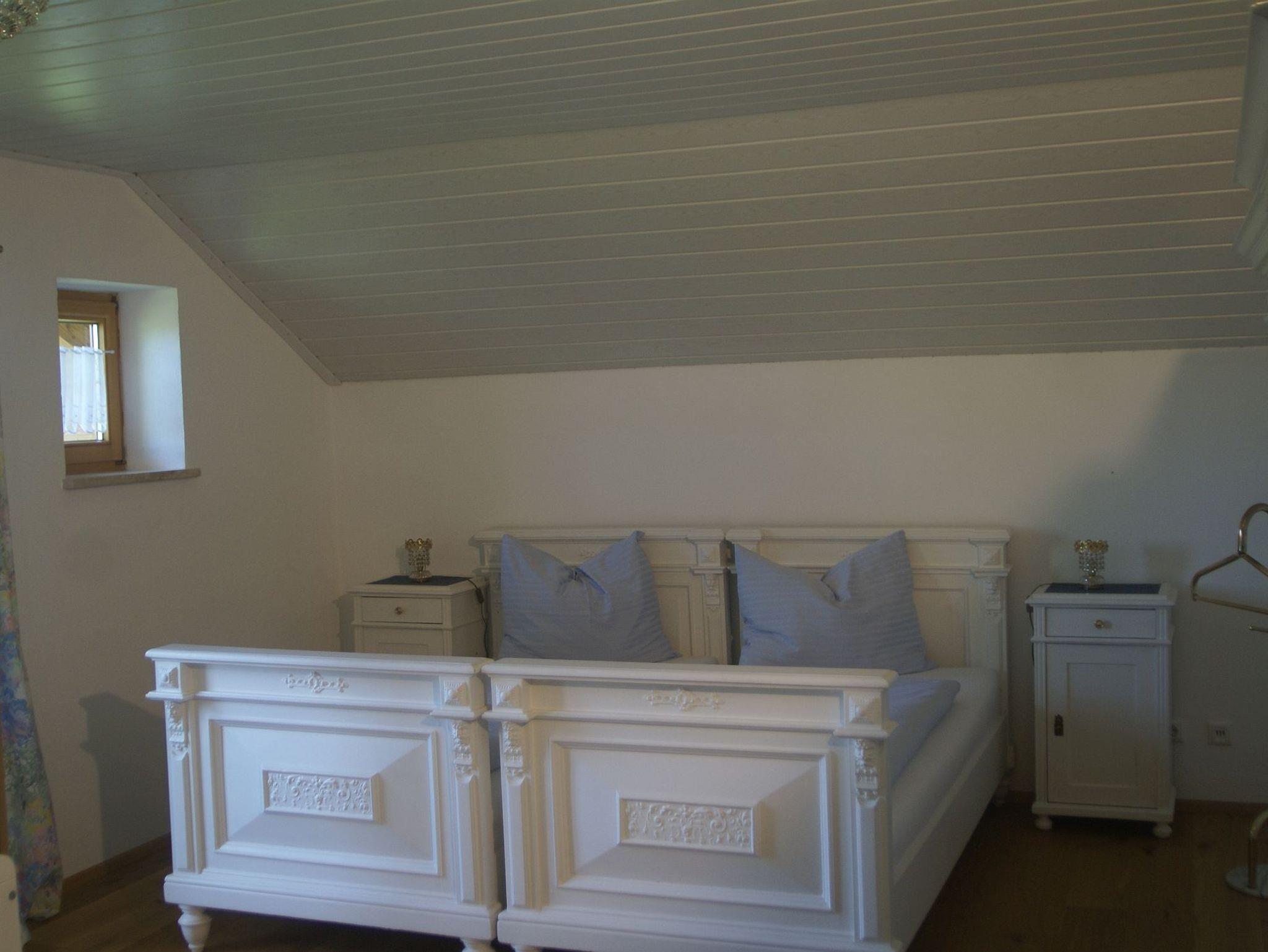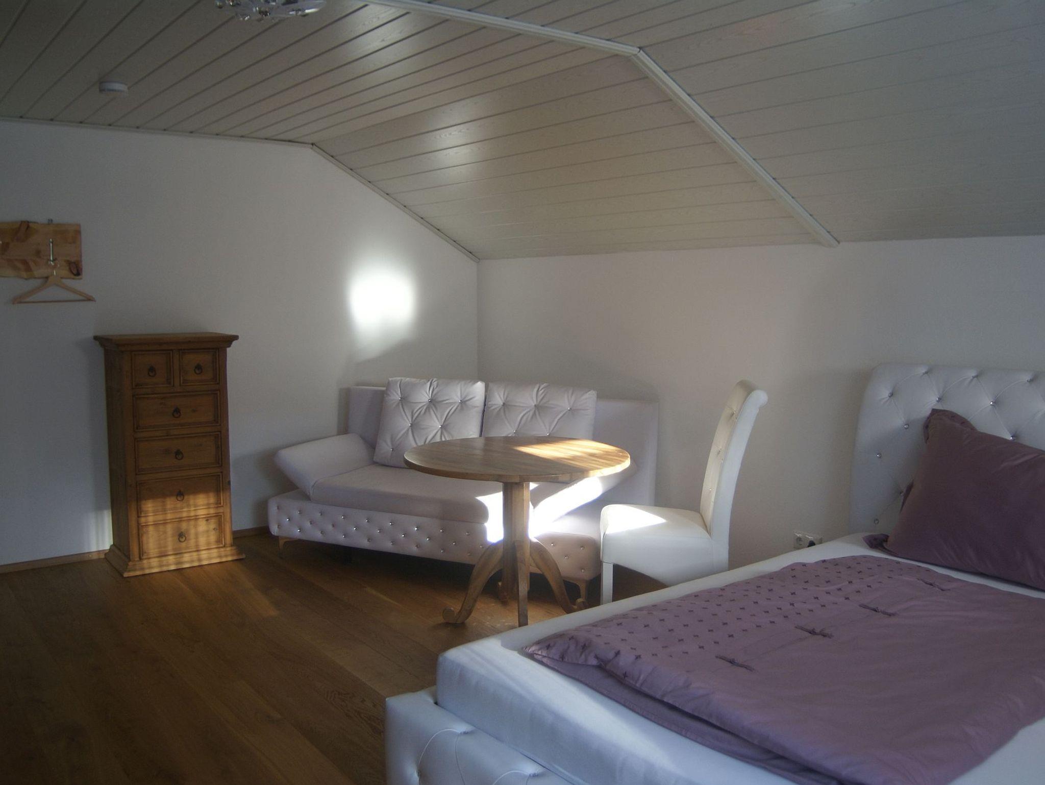 Ein kleines, liebevoll eingerichtetes Schlafzimmer mit breitem Bett und Babybettchen befinden sich ebenfalls im Erdgeschoss. Im Obergeschoss befinden sich drei große Schlafzimmer, alle mit Balkon, eines ca. 24 qm groß mit Doppelbett und einem Gitterbett für unsere kleinen Gäste. Die beiden anderen sind jeweils mit einem 140 cm breiten Bett und einer Couch oder Relax-Ecke ausgestattet. Badewanne und Dusche im geräumigen Badezimmer ergänzen unser Obergeschoss. Es befindet sich in jedem Stockwerk ein WC. Handtücher sowie Bett- und Tischwäsche stehen natürlich zur Verfügung. Auf Wunsch werden auch ein Wickeltisch mit Babybadewanne, Kinderhochstühle und zusätzliche Kinderbetten zur Verfügung gestellt.