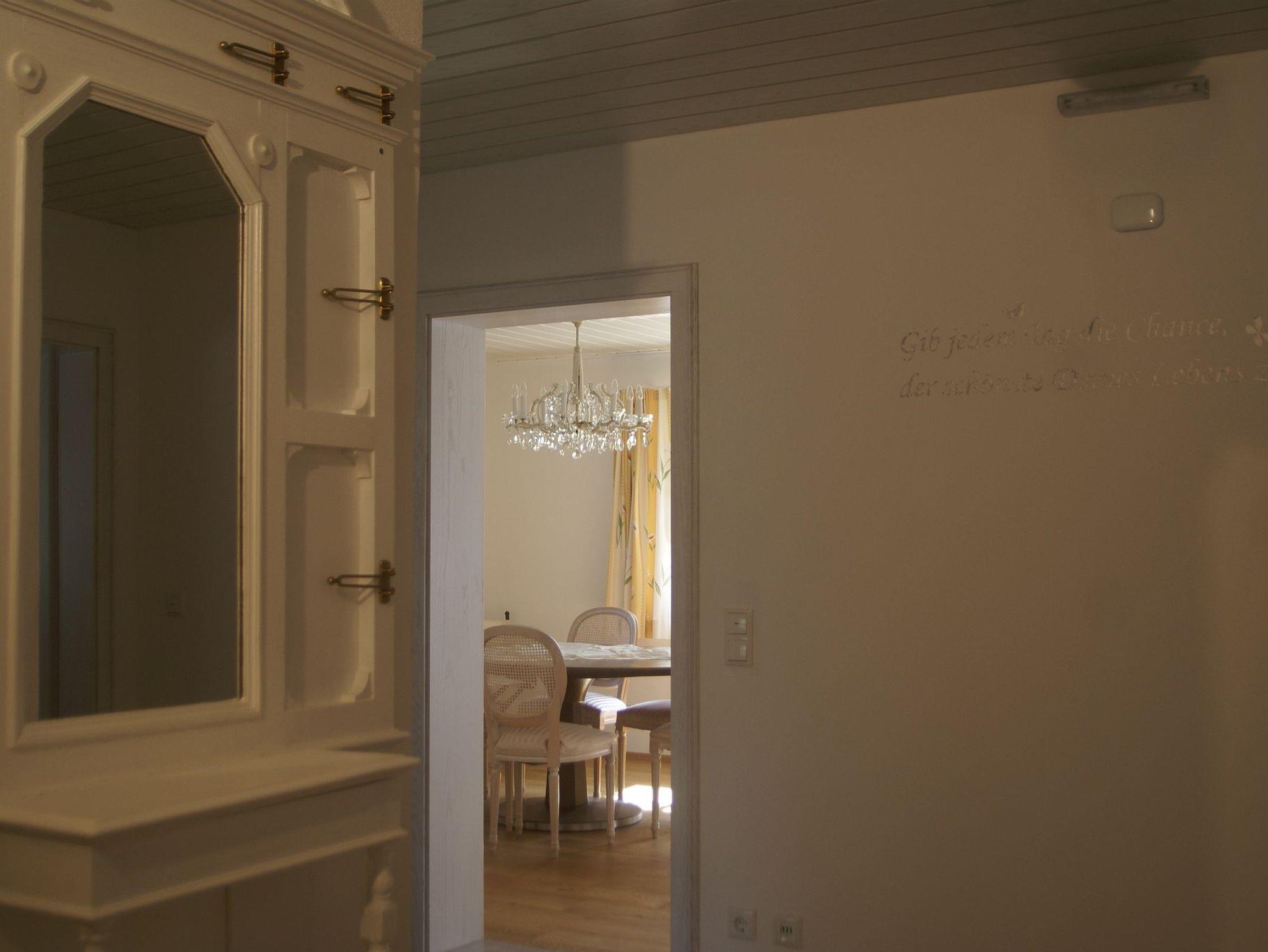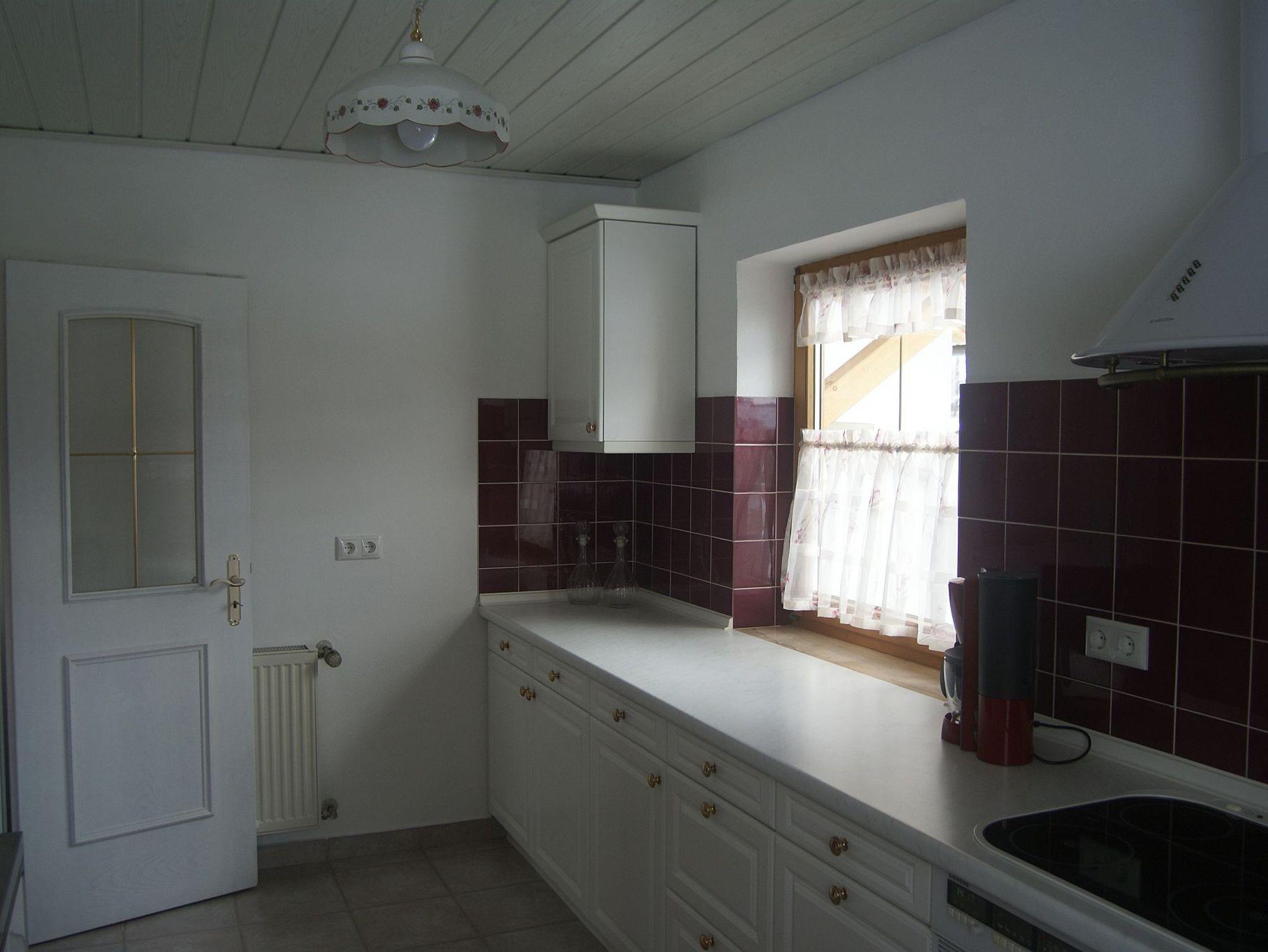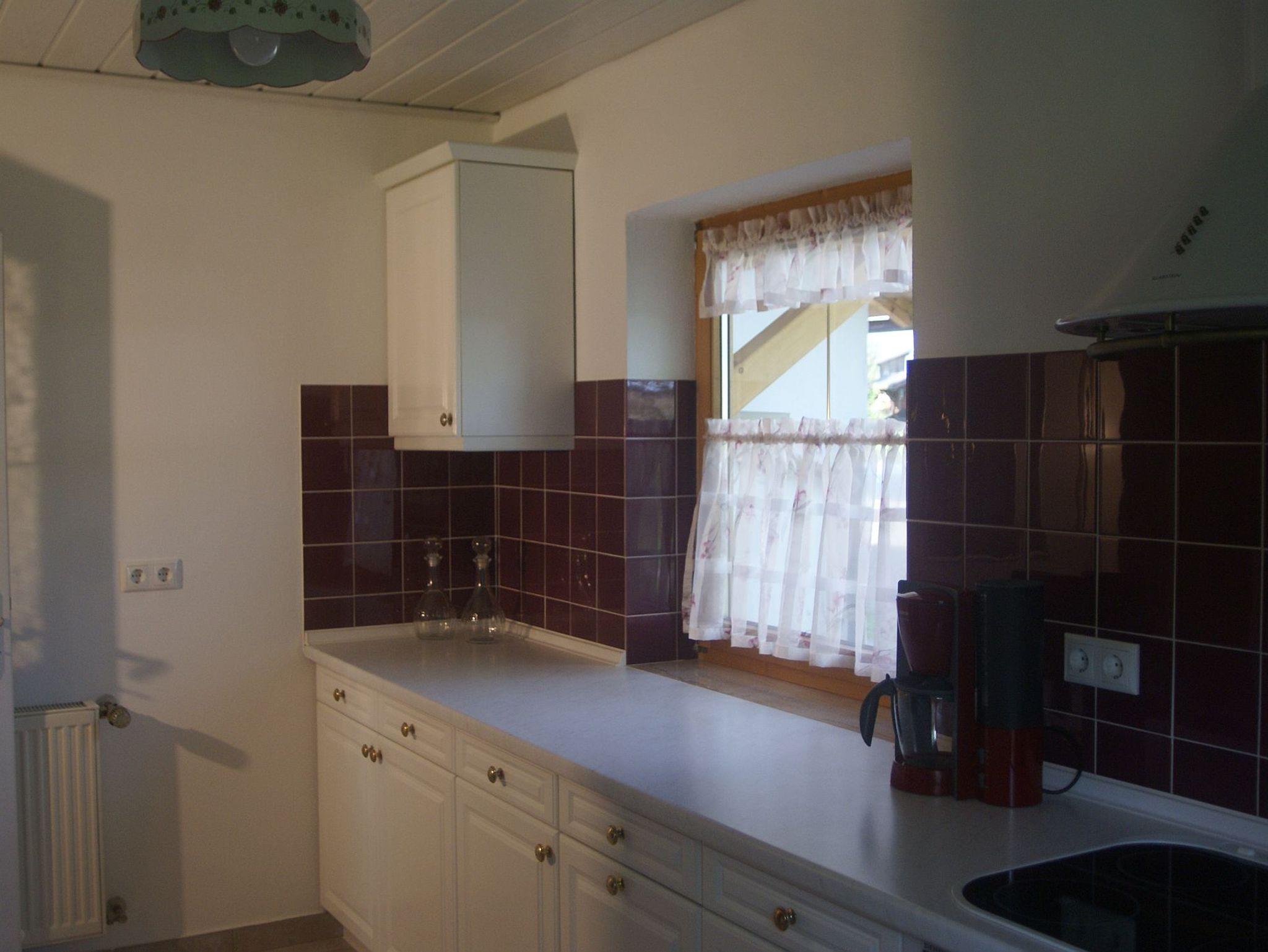 Im Erdgeschoss des Hauses befindet sich eine schöne Landhaus-Küche, ausgestattet mit Geschirrspüler, E-Herd mit Backrohr, Kaffeemaschine, Toaster, Wasserkocher, Kühl- und Gefrierkombination und einem Holzofen sowie allen notwendigen Küchenutensilien. Im 40 qm großen Wohn- und Esszimmer finden unsere Gäste genügend Platz zum Relaxen und gemütlichen Beisammensein.