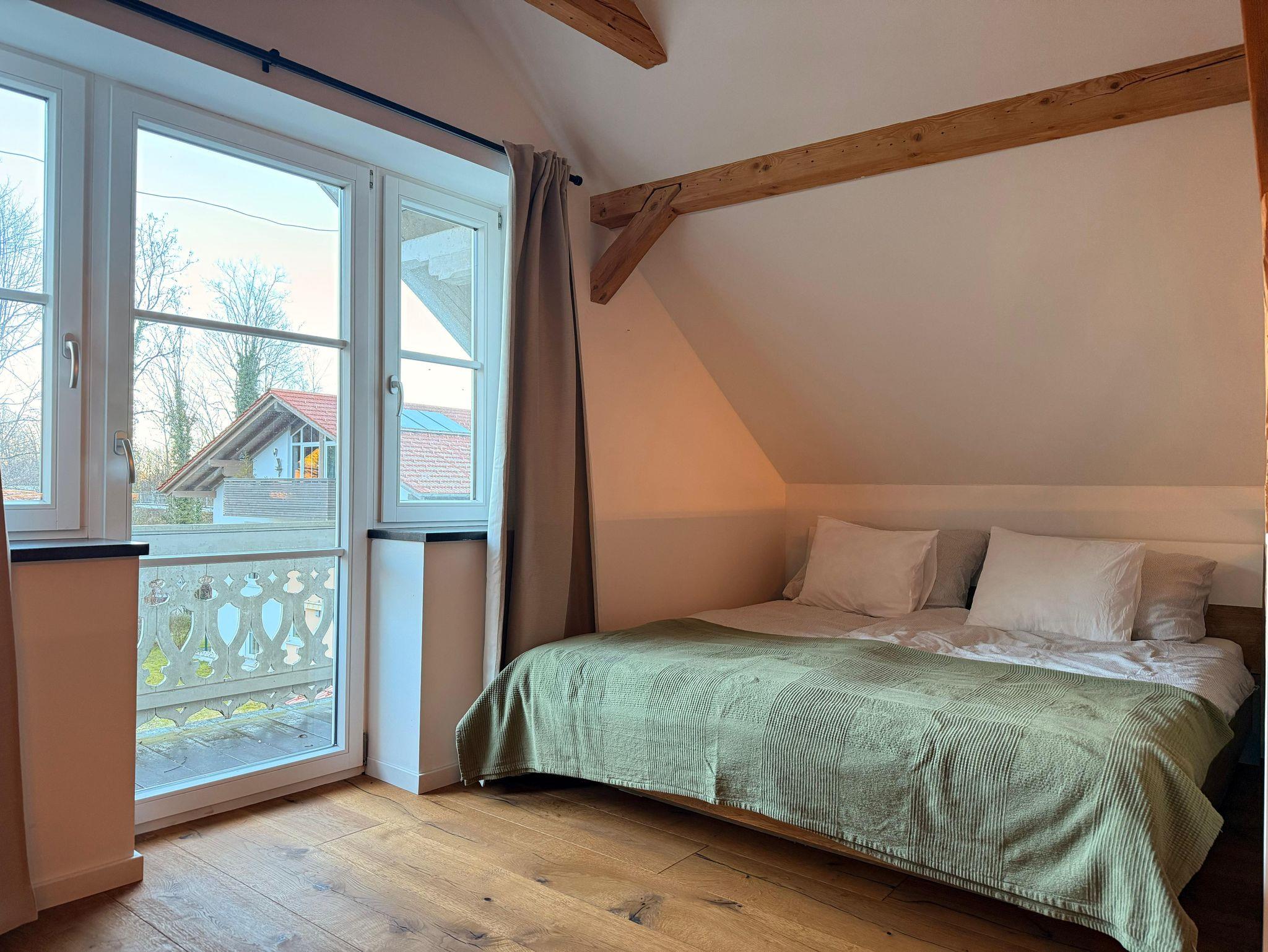 Herzlich willkommen in unserer liebevoll eingerichteten Loftwohnung in Bayerisch Gmain, am Fuße der bayerischen Alpen und nur wenige Minuten von der österreichischen Grenze sowie der Kulturstadt Salzburg entfernt. Die rund 120 m² große Wohnung ist offen gestaltet und besticht durch viel Licht, warme Holzelemente und sichtbare Balken, die von der ersten Minute an eine gemütliche Atmosphäre schaffen. Die Loftwohnung bietet Ihnen eine komfortable Sitzecke mit Fernseher, einen konfortablen Arbeitsbereich und eine vollständig ausgestattete Küche, die zum gemeinsamen Kochen einlädt. Direkt daneben befindet sich ein großzügiger Essbereich mit einem großen Tisch, an dem Sie entspannt zusammenkommen können. Das Badezimmer verfügt über eine Dusche und ein WC – und sogar über einen wunderbaren Blick auf die Berge, der jeden Start in den Tag besonders macht. Bitte beachten Sie, dass es durch die Dachschrägen im Bereich des WCs etwas enger sein kann. Zwei behagliche Doppelbetten sorgen dafür, dass Sie sich nach einem aktiven Tag in der Natur bestens erholen können. Ob Sie zu zweit reisen, als kleine Familie unterwegs sind oder sich eine Auszeit allein gönnen möchten – unser Loft bietet Ihnen den idealen Rückzugsort. Hier können Sie die Ruhe genießen, die umliegende Natur erkunden, ein gutes Buch in entspannter Atmosphäre lesen oder konzentriert arbeiten. Wir freuen uns darauf, Sie willkommen zu heißen und Ihnen eine erholsame Zeit in unserem charmanten Loft zu bereiten.