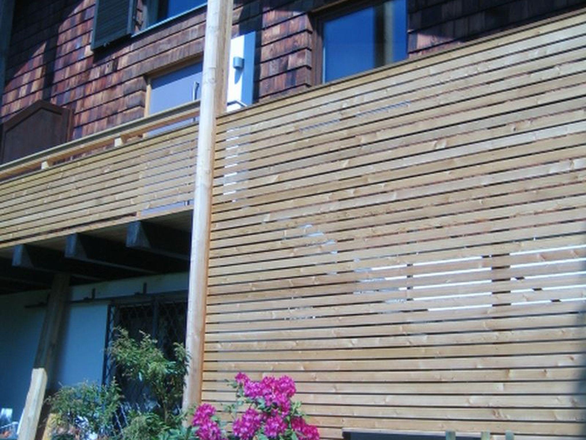 In absolut ruhiger Lage, mitten im Grünen wurde im Jahr 2015 diese Ferienwohnung gebaut. Über eine Außentreppe gelangen Sie in das erste Geschoß mit kleinem Bad und Toilette, Aufenthaltsraum mit Küchenzeile und angrenzendem Schlafraum mit Doppelbett. Über eine großzügige Treppe gelangen Sie in das ausgebaute Dachgeschoß mit zweitem weiträumigem Bad/Toilette, Sitzecke, viel Schrankraum und Doppelbett. Das Sofa ist als Schlafcouch nutzbar, so dass die vornehm ausgestattete Ferienwohnung (mit 2 Fernsehgeräten) bis zu 5 Personen einen gemütlichen Aufenthalt bietet. Durch das große Giebelfenster genießen Sie einen fantastischen Bergblick. Im unteren Geschoß schauen sie in den großen Garten, mit großer Liegewiese und Pavillon die zum Verweilen einladen.