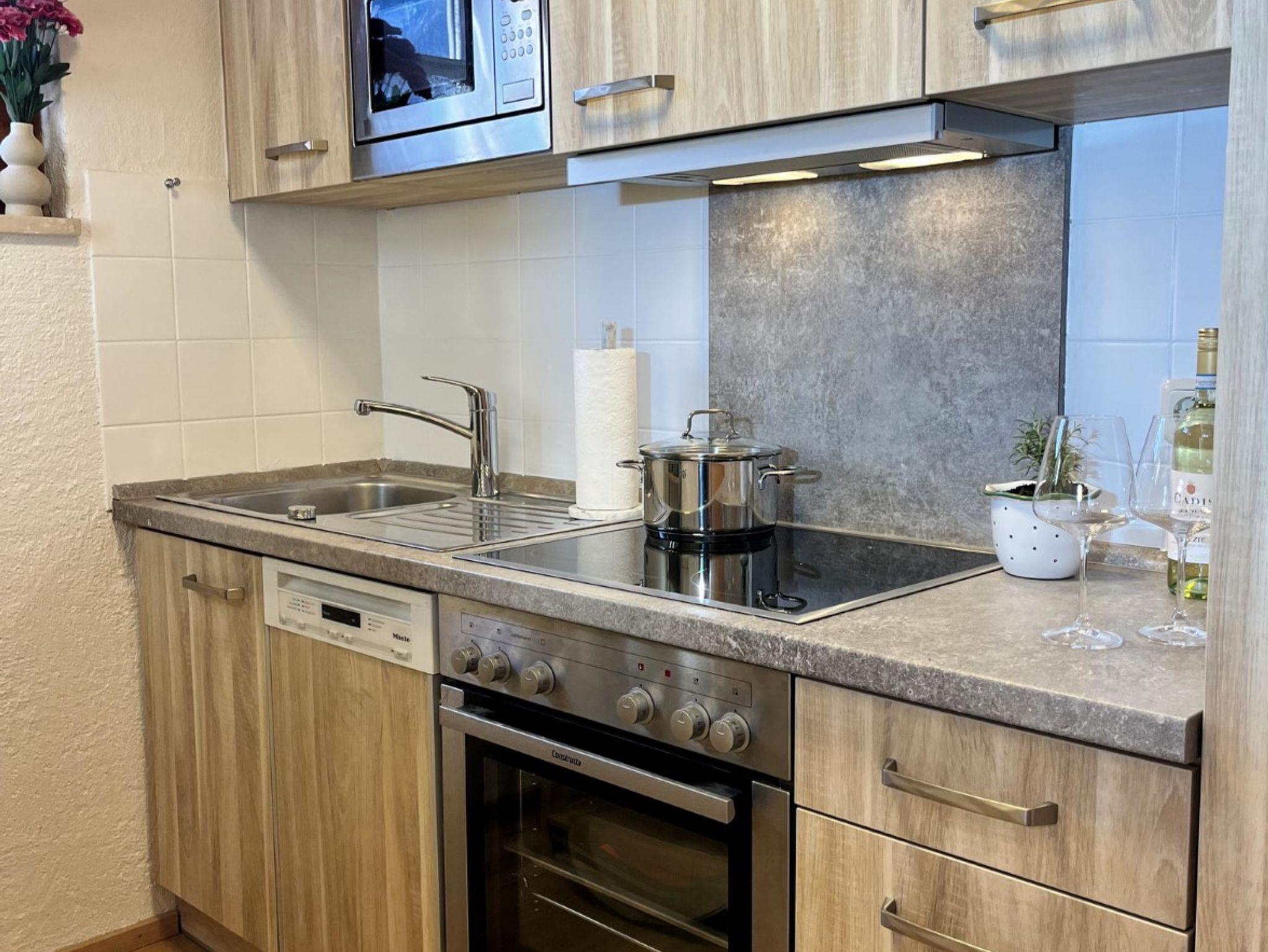 Der offene Wohn- und Essbereich bildet das Herzstück der Wohnung und schafft eine einladende Atmosphäre. Die voll ausgestattete Küche lädt zum gemütlichen Kochen und Genießen ein. Die beiden Balkone bieten einen wunderschönen Bergblick und ganztägige Sonne – perfekt für Frühstück im Freien, entspannte Lesestunden oder abendliche Sonnenuntergänge über den Alpen.