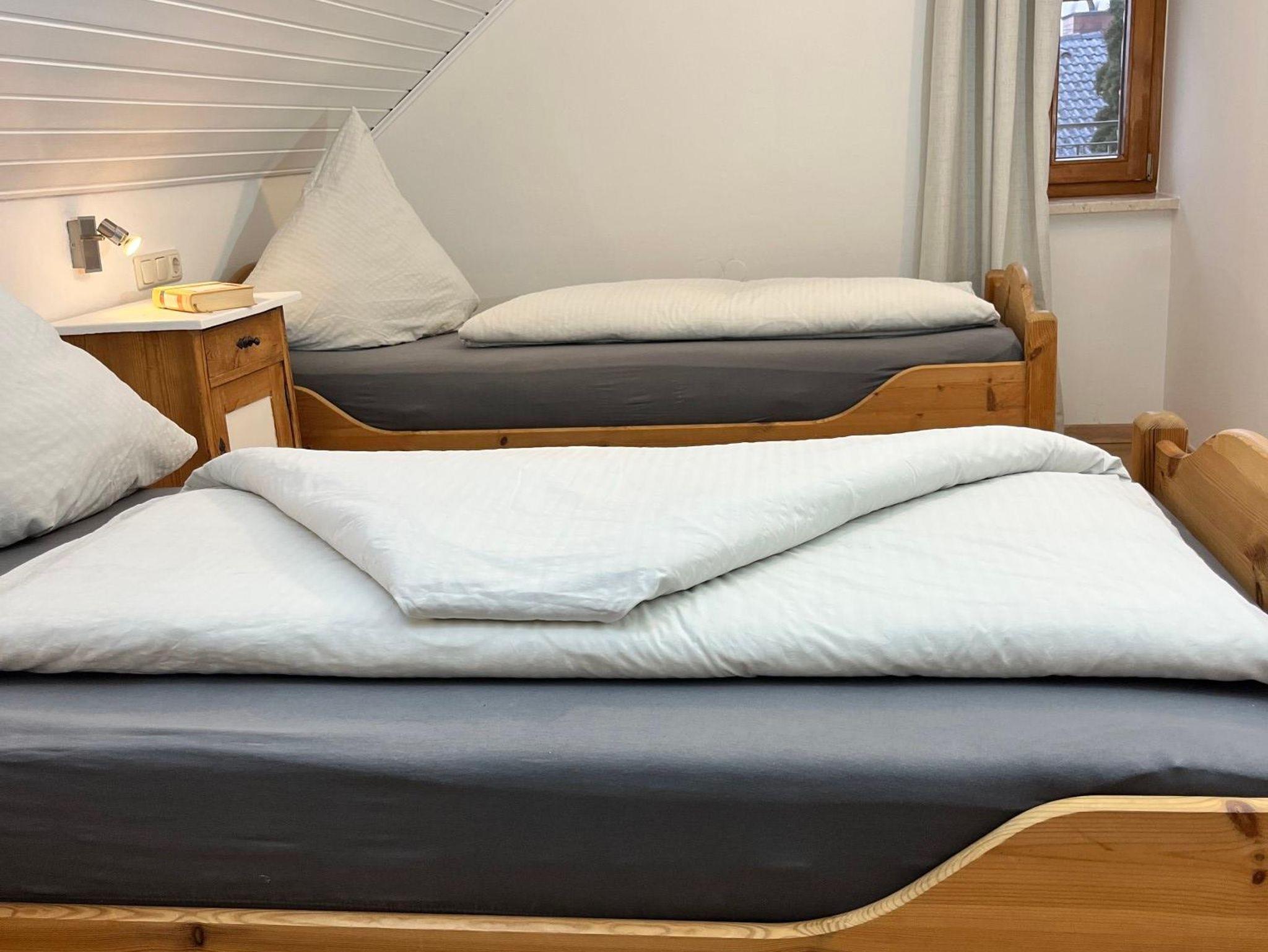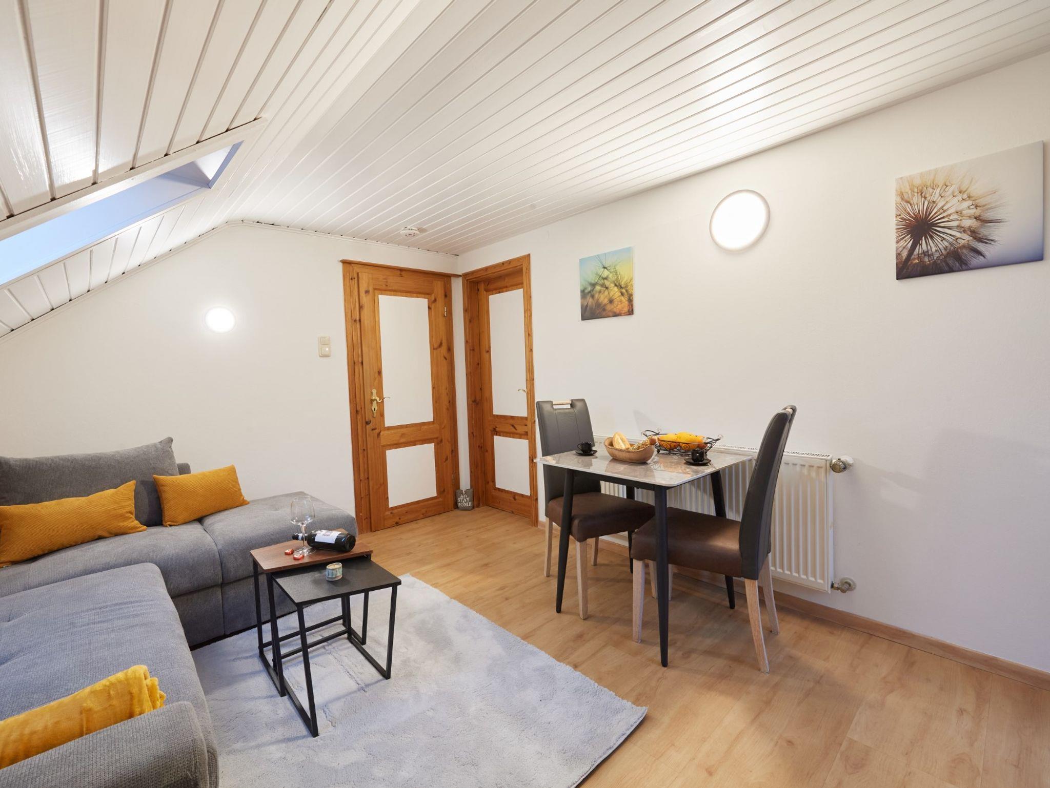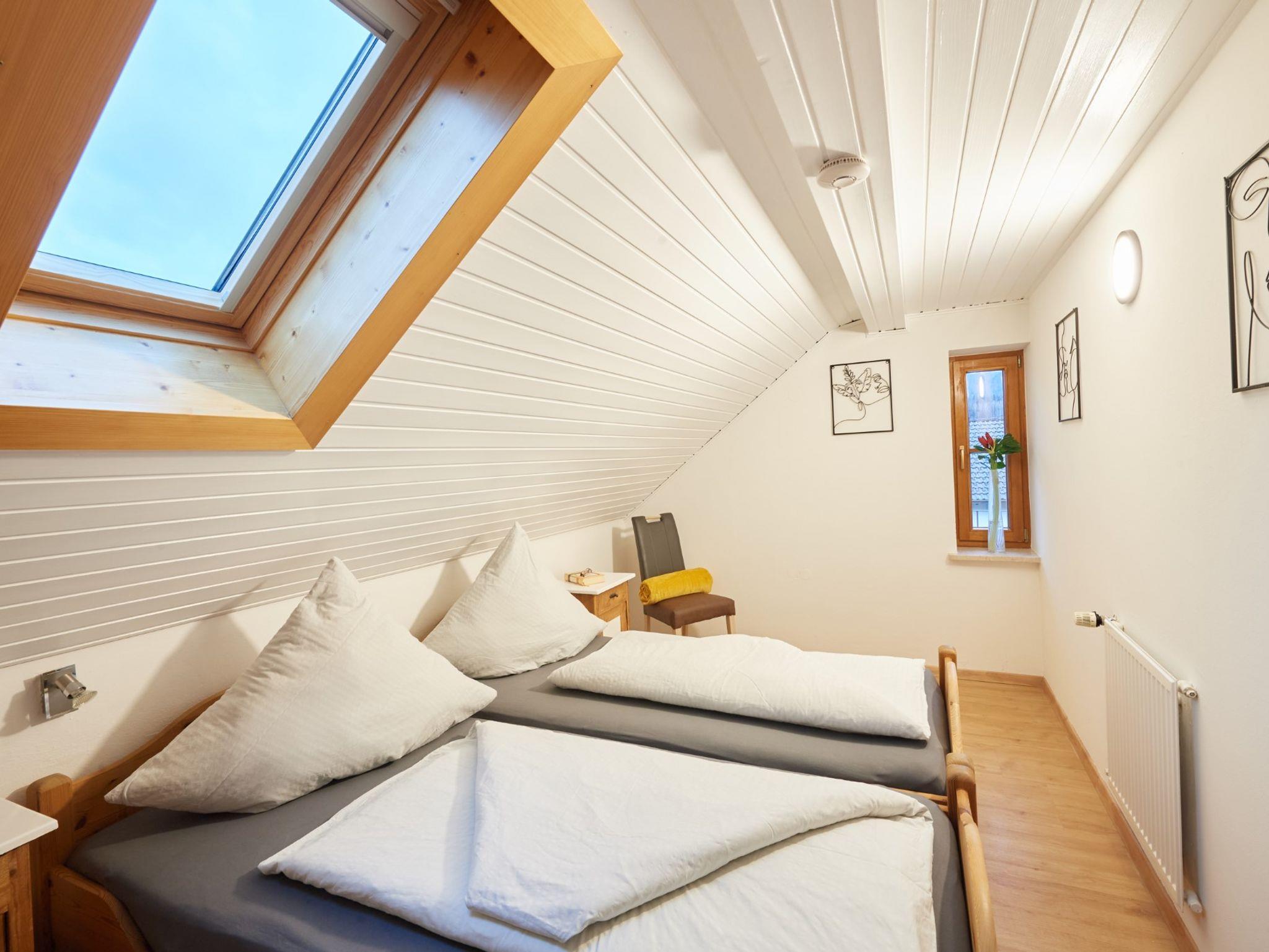 Modern und ländlich treffen in dieser liebevoll eingerichteten 45 qm großen Dachgeschoss-Ferienwohnung harmonisch aufeinander. Die Wohnung ist gut ausgestattet und bietet ein gemütliches Wohnzimmer, ein Schlafzimmer mit zwei Einzelbetten, die sich bei Bedarf zu einem Doppelbett zusammenschieben lassen, sowie ein Badezimmer mit Dusche. Genießen Sie Ihren Urlaub in dieser behaglichen Ferienwohnung, die mit viel Liebe zum Detail gestaltet wurde. Vom Balkon aus haben Sie einen herrlichen Blick auf den Hochstaufen und können entspannte Stunden an der frischen Luft verbringen. Eine Etage tiefer steht Ihnen ein zweiter großer Balkon zur Verfügung, der ebenfalls zur Wohnung gehört Im Keller stehen Ihnen Münzwasch- und Münztrockenautomaten zur Verfügung. Wir freuen uns darauf, Sie bei uns begrüßen zu dürfen!