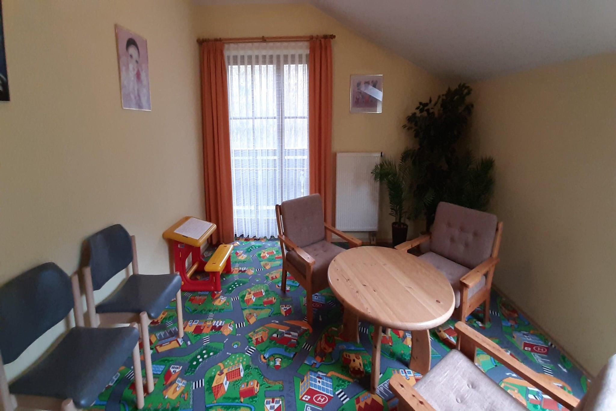 I 3. etasje: (åpent kjøkken(komfyr med kokeplater, vannkoker, kaffetrakter, kjøleskap), Stue/soverom(1 persons sovesofa, 1 persons sovesofa, spisebord), bad(badekar, håndvask, toalett), balkon) bibliotek, aktivitetsrom, treningsrom, badstue, garasje, tørketrommel(betalt), sprinkelseng, solarium(betalt), infrarød sauna(betalt), vaskemaskin(betalt), terrasse, hage, hagemøbler, parkering, bordtennis, høy barnestol
