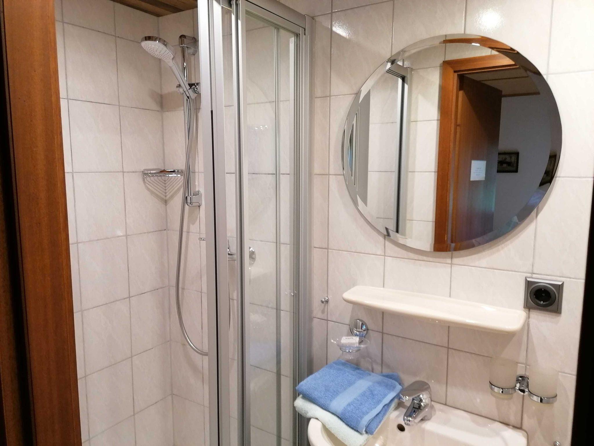 Das gemütliche Zimmer verfügt über Dusche/WC und Balkon.