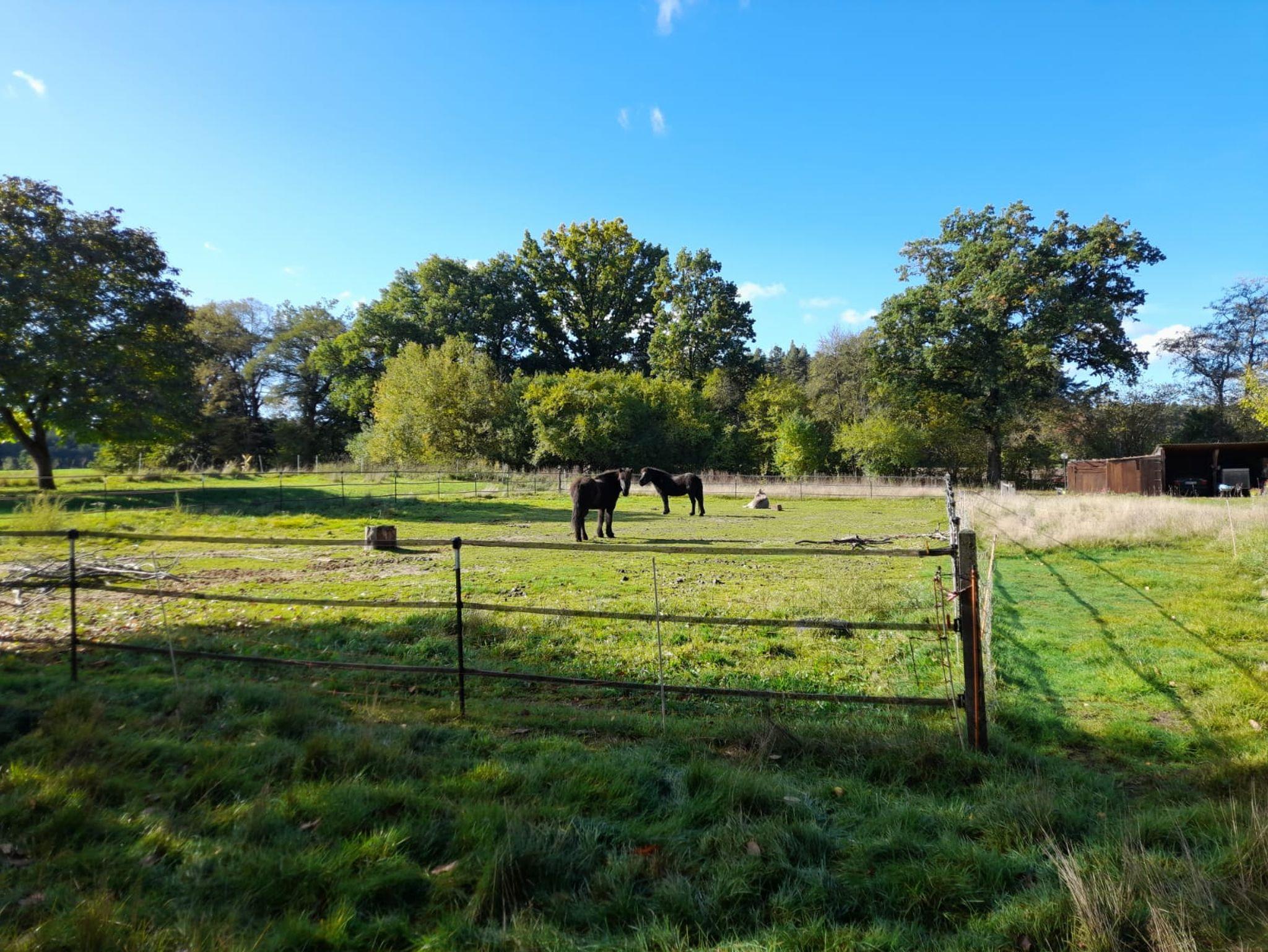 In unmittelbarer Nachbarschaft befindet sich eine Weide mit Pferden, Esel und Ziegen.