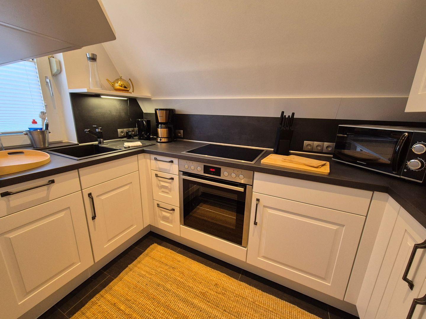 Dieses traumhaft eingerichtete Ferienhaus verfügt über eine voll ausgestattete Küchenzeile mit einer Mikrowelle, ein Kühlschrank, ein Backofen/Ceranfeld, ein Wasserkocher und eine Kaffeemaschine, ein gemütliches Wohnzimmer mit einem Sofa, Sessel und einen Flachbild-TV. Ein wunderschönes Bad und ein zusätzliches Gäste WC runden das Angebot ab. Im Abstellraum verfügen Sie über eine Waschmaschine. Über eine kleine Treppe gelangen Sie ins Obergeschoß, hier befindet sich ein Schlafzimmer mit 2 Einzelbetten und ein weiteres tolles Schlafzimmer mit Doppelbett und direkten Zugang zum Balkon mit Blick auf das "Große Meer"