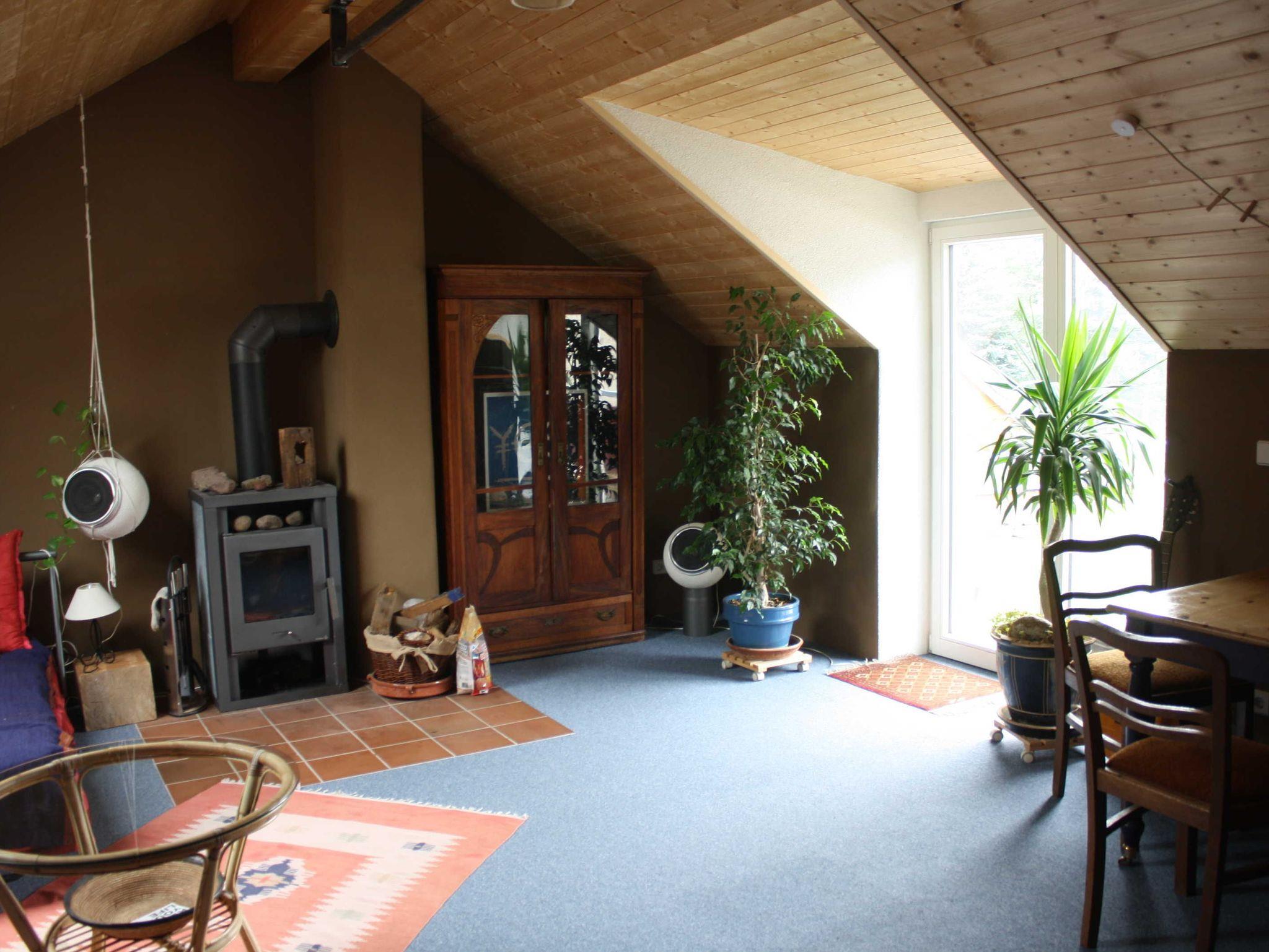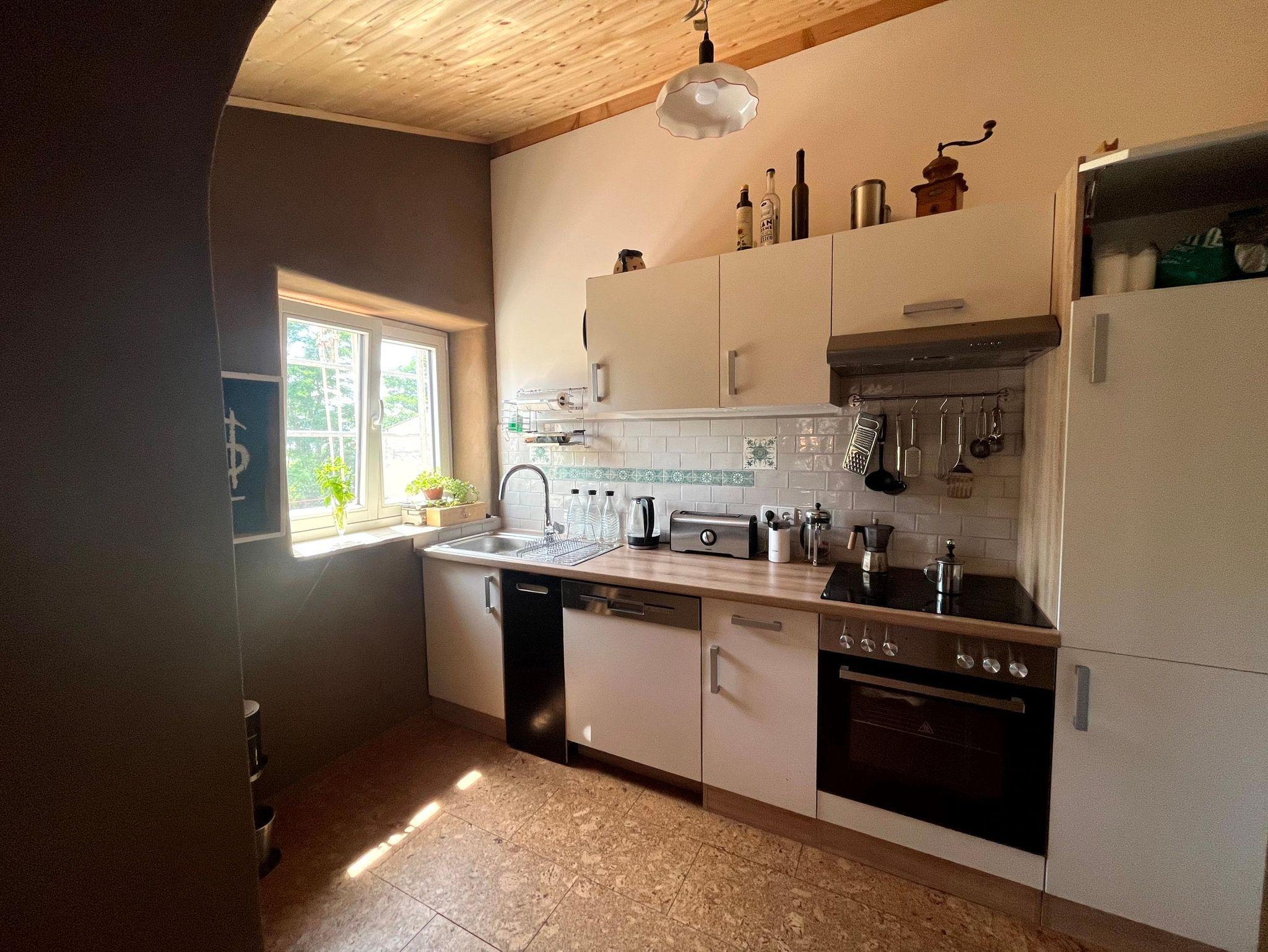 Die Wohnung ist voll ausgestattet mit Backofen, Spülmaschine und Kühlschrank. Sie ist mit Lehm verputzt und verfügt über einen Kaminofen sowie eine Fußbodenheizung.
