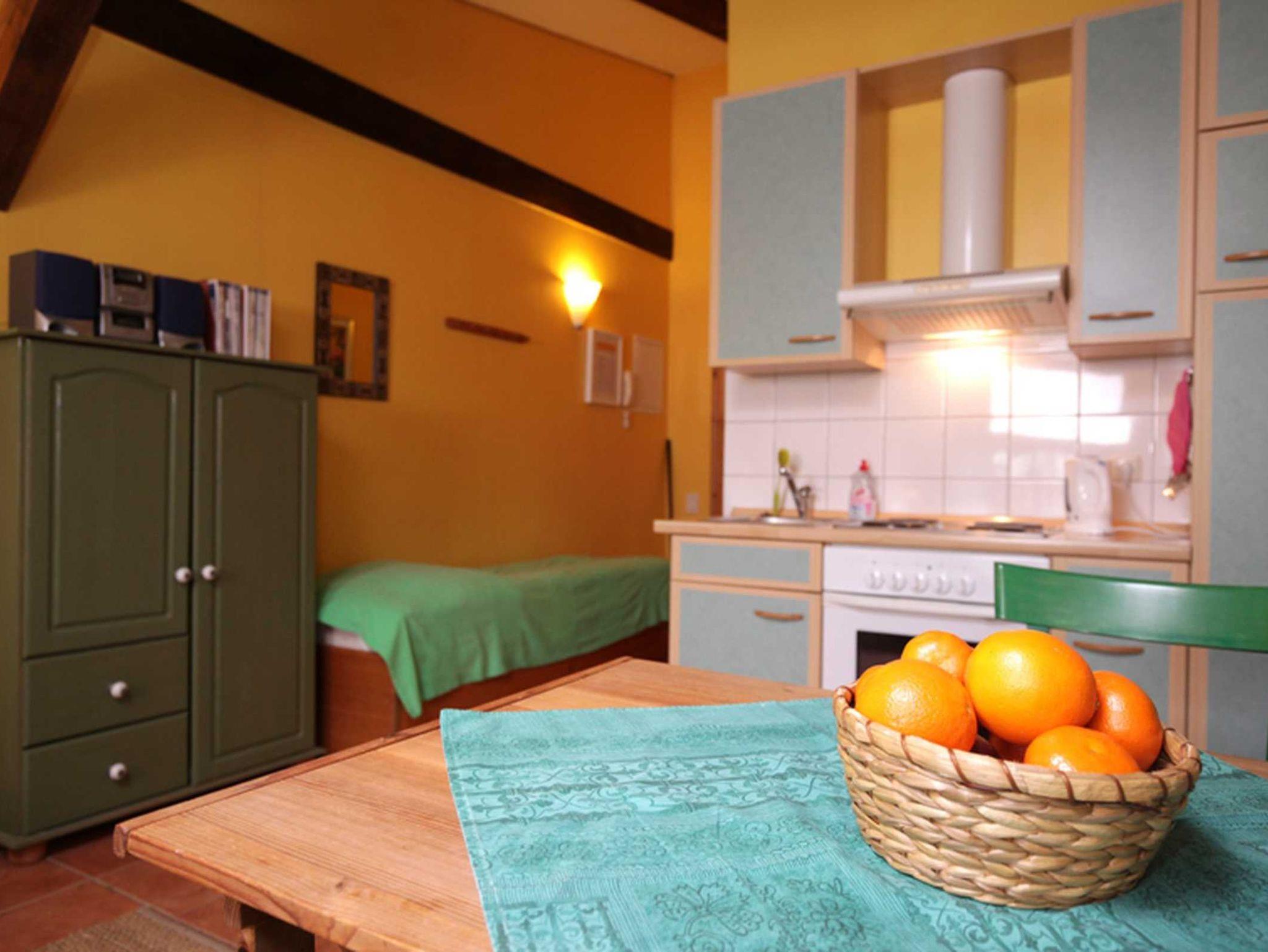 - Integrierte moderne Küche (Backofen - abwaschen ohne Maschine, aber Mikrowelle,