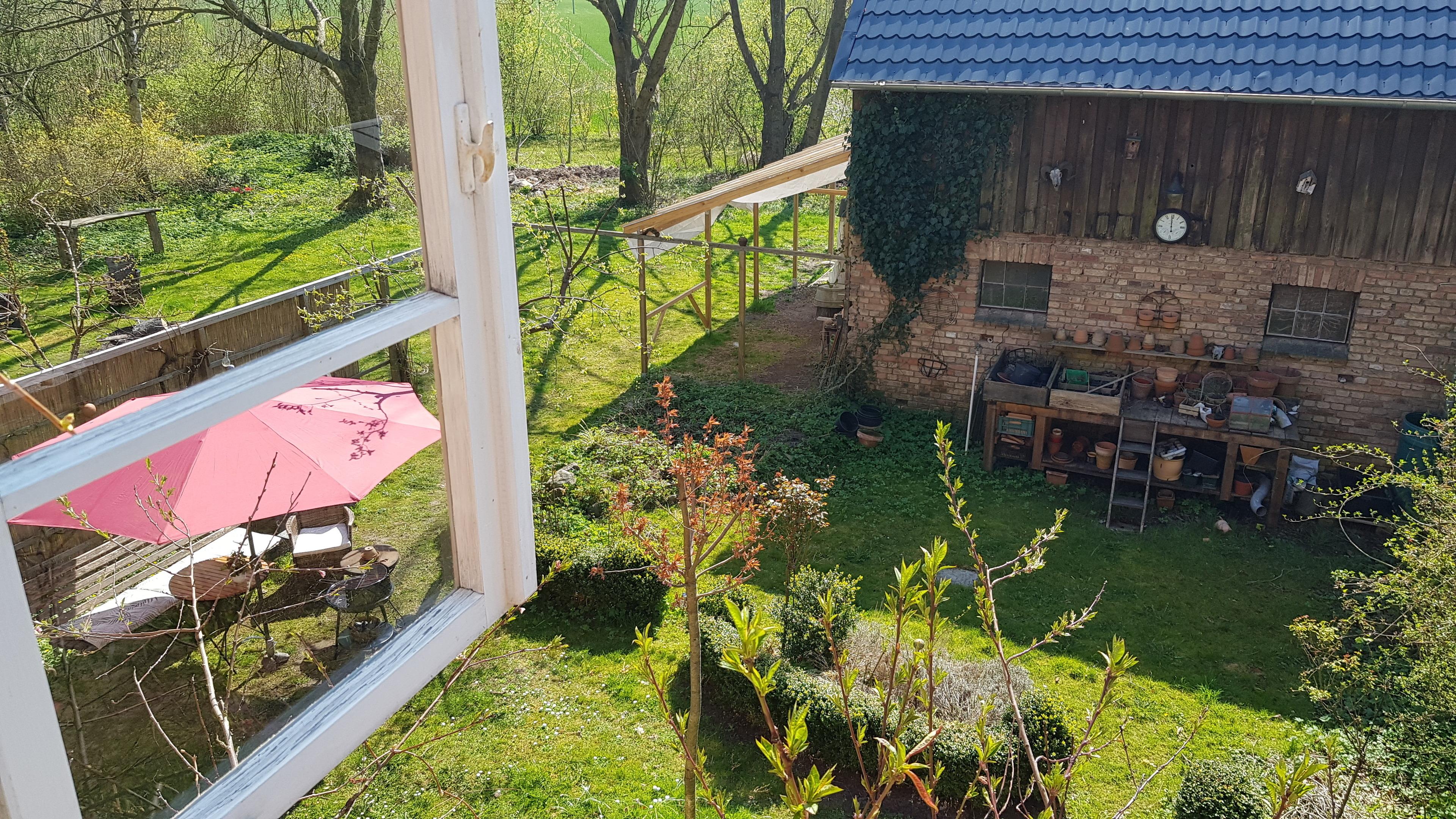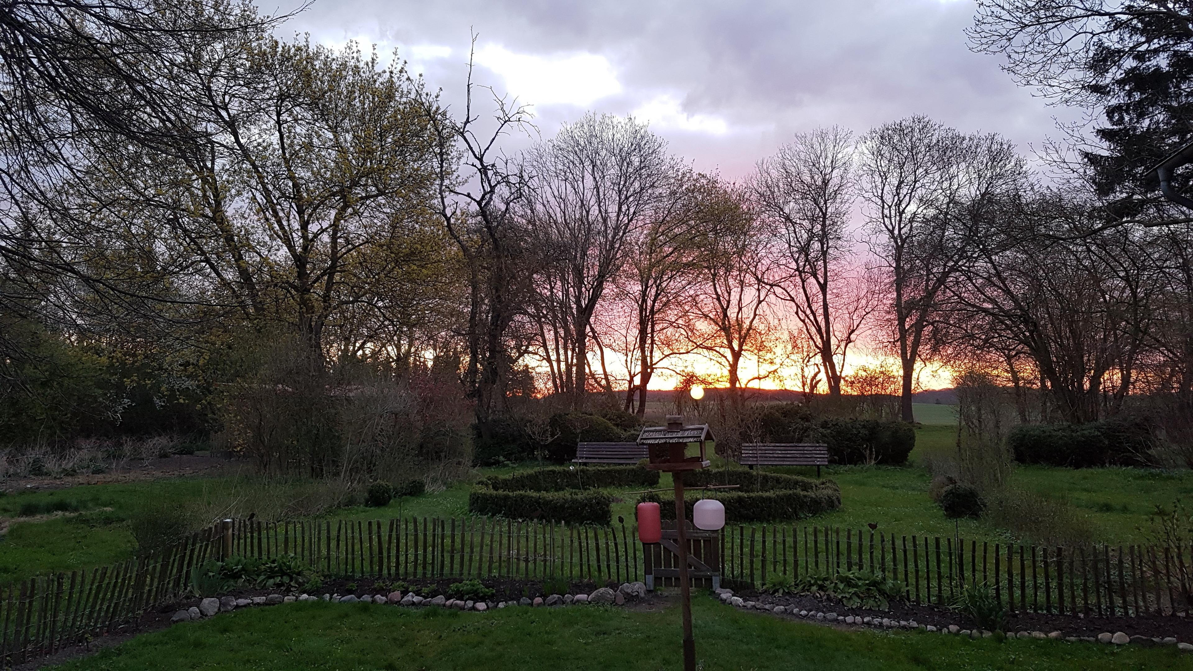 Im Garten können Sie als Frühaufsteher zauberhafte Sonnenaufgänge erleben. Unser neugieriges Federvieh freut sich über jeden Besuch. Ein kleiner Grillplatz lädt zu gemütlichen Abenden ein.