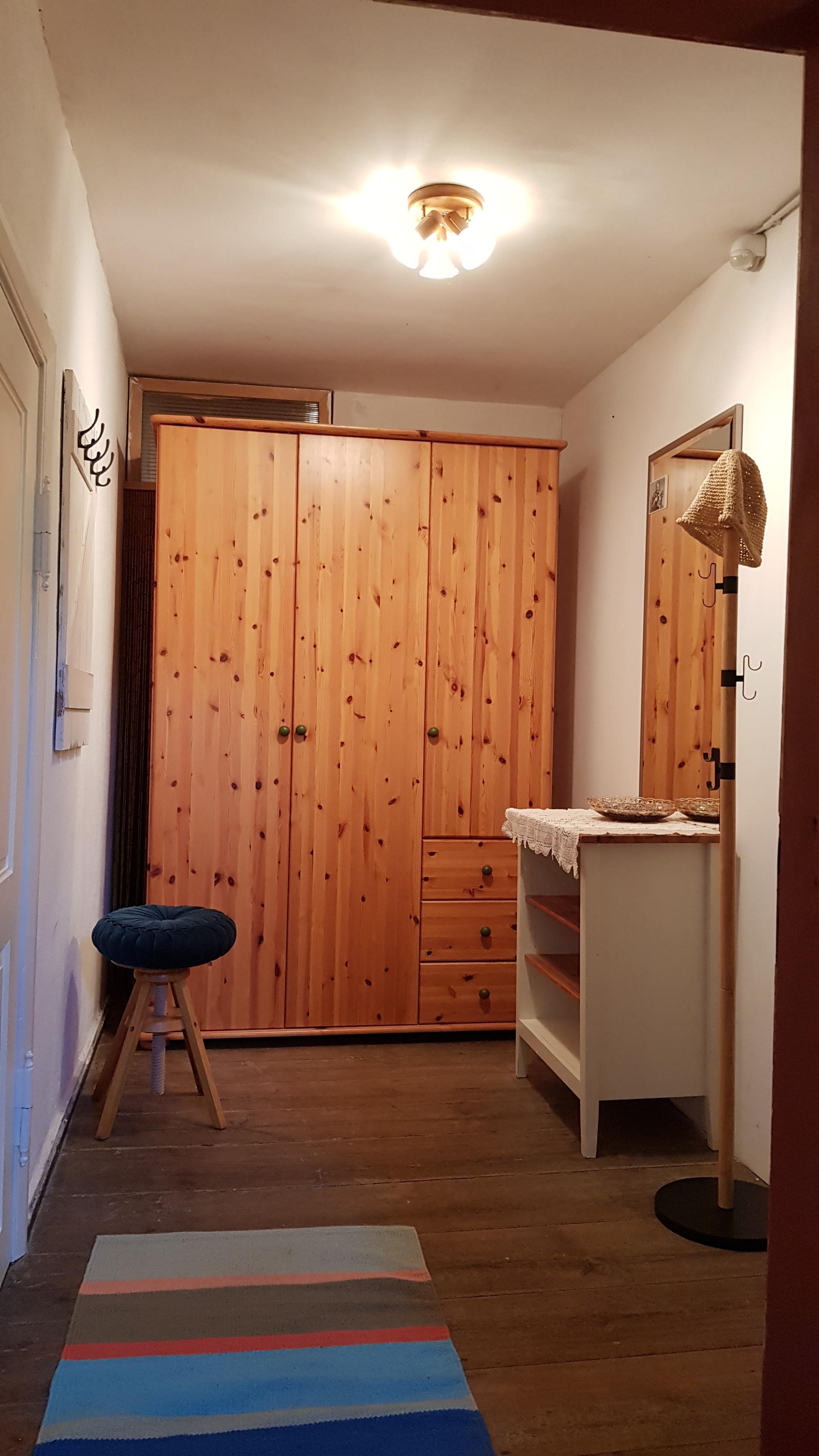 In der Diele gibt es eine Sitzbank und eine Garderobe.