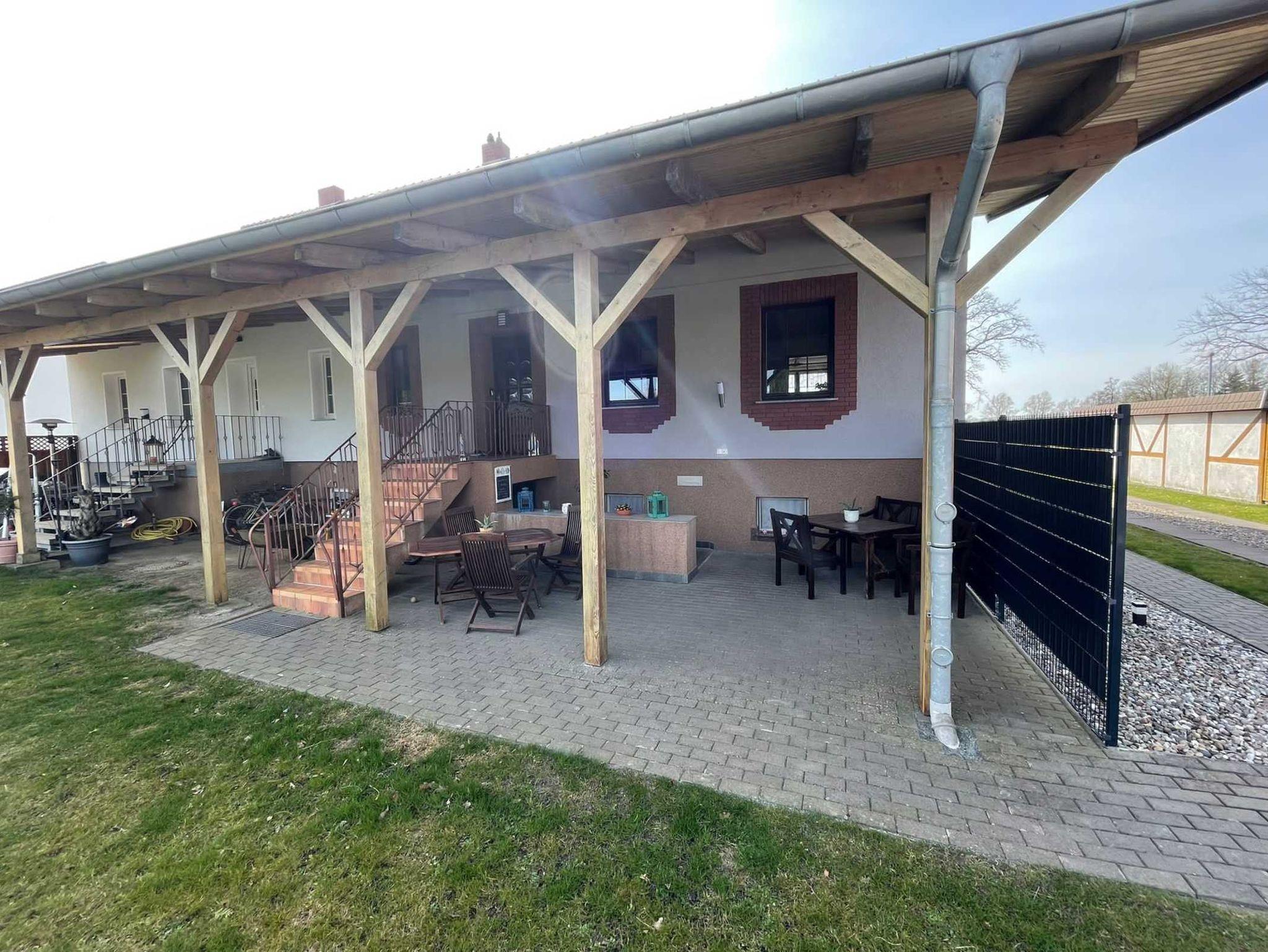 Die Ferienwohnung befindet sich in der oberen Etage im Haus des Vermieters. Sie ist 57 m² groß und familiengerecht eingerichtet. Sie besteht aus einem Wohnraum mit Sitzgruppe, Radio, TV, einem Schlafraum mit Doppelbett, einer Küche mit Sitzgruppe und einem Bad mit WC und Dusche. Eine Terrasse mit Grill und Gartenmöbel stehen zur Verfügung. Auf dem Hof befindet sich ein Pool (7mx4m, 1,20m tief), der genutzt werden kann. 1 Hund (Risthöhe 40 cm) ist erlaubt für 4,00 Euro pro Tag. Bettwäsche und Handtücher sind vorhanden. Fahrräder können für 4,00 Euro pro Tag ausgeliehen werden. Anreise ab 16.00 Uhr, Abreise bis 10.00 Uhr.