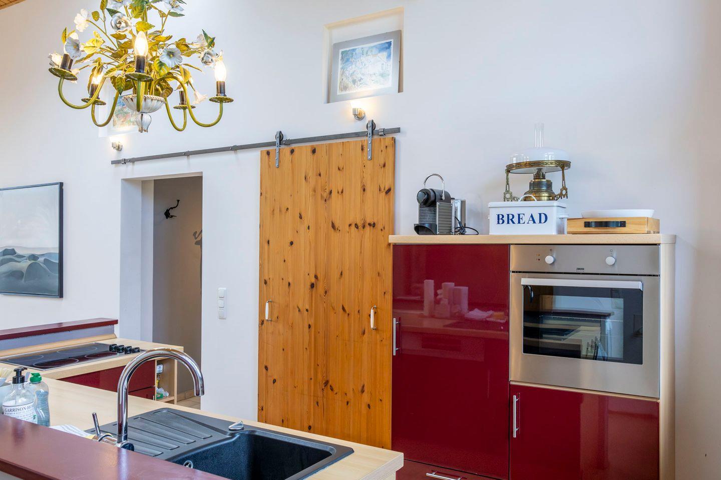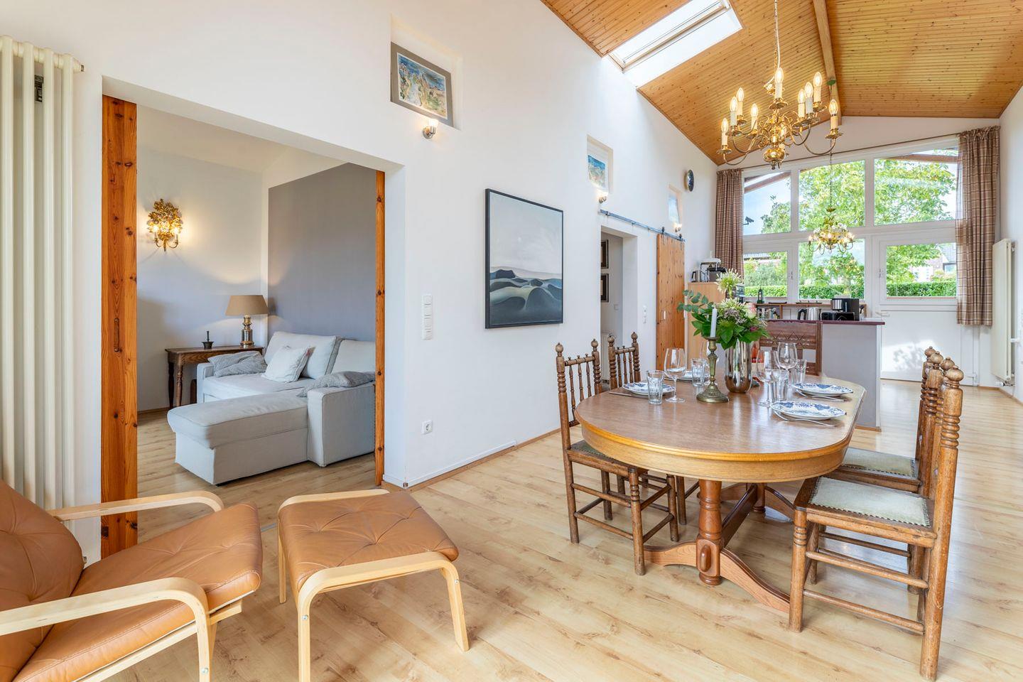 Die offene, moderne Küche ist in den Wohnraum mit großzügigem Esstisch integriert und bietet alles, was für die Zubereitung gemeinsamer Mahlzeiten benötigt wird: Cerankochfeld, Backofen, Kühlschrank mit Gefrierfach, Geschirrspüler, Nespresso-Espressomaschine, Kaffeevollautomat, Wasserkocher, Toaster, Mixer und umfassende Küchenutensilien sowie Geschirr und Besteck. So können Sie sich flexibel selbst versorgen und müssen auf keinerlei Komfort verzichten.