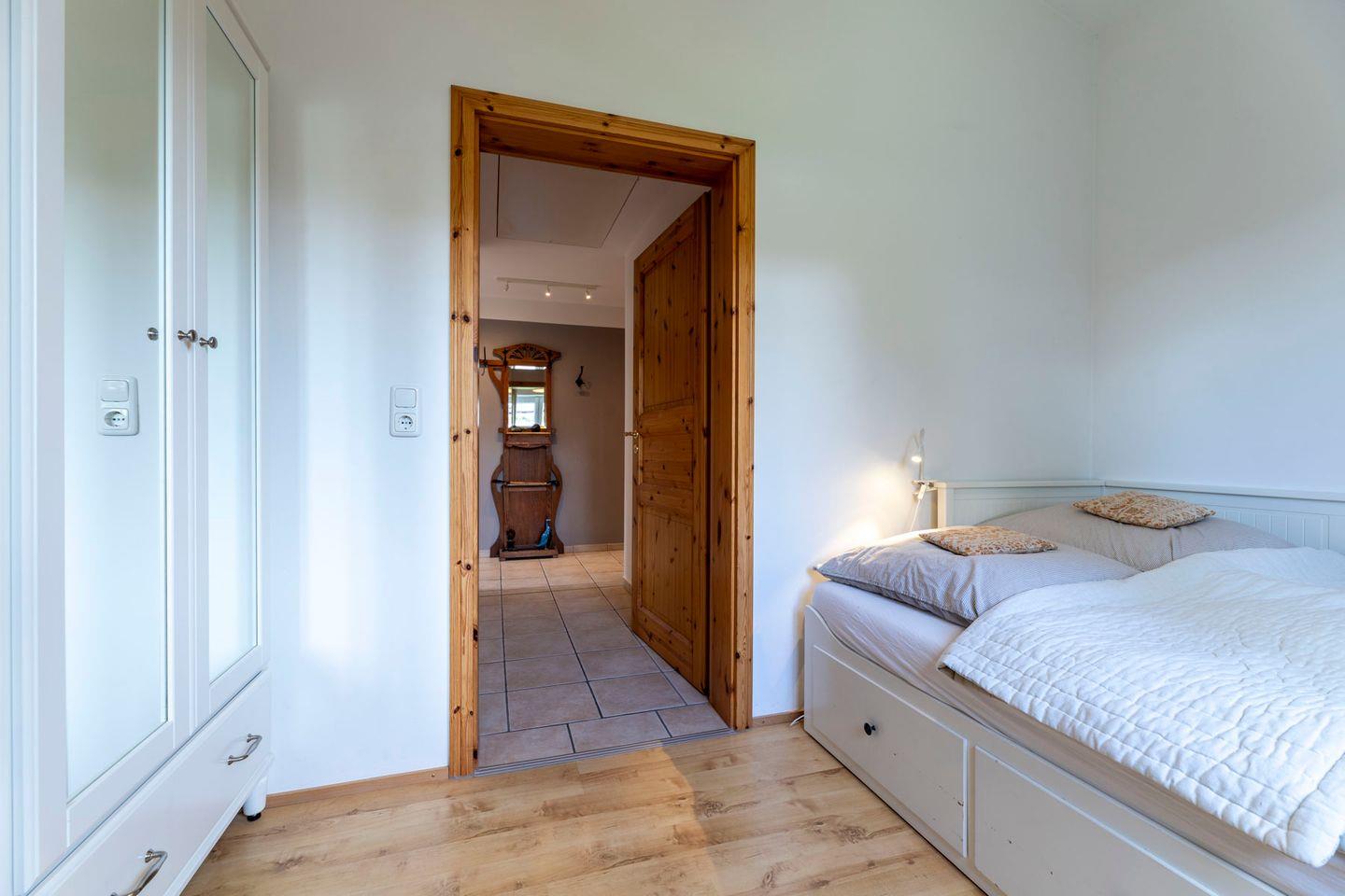 Das 2006 erbaute, ebenerdige Haus besticht durch seine großzügige Raumaufteilung. Zwei separate Schlafzimmer (1 Schlafzimmer mit Doppelbett 180x200 und Zugang zum Badezimmer, 1 Schlafzimmer mit Doppelbett 140x200)– teils mit Schiebetüren – garantieren entspannte Nächte und Privatsphäre.