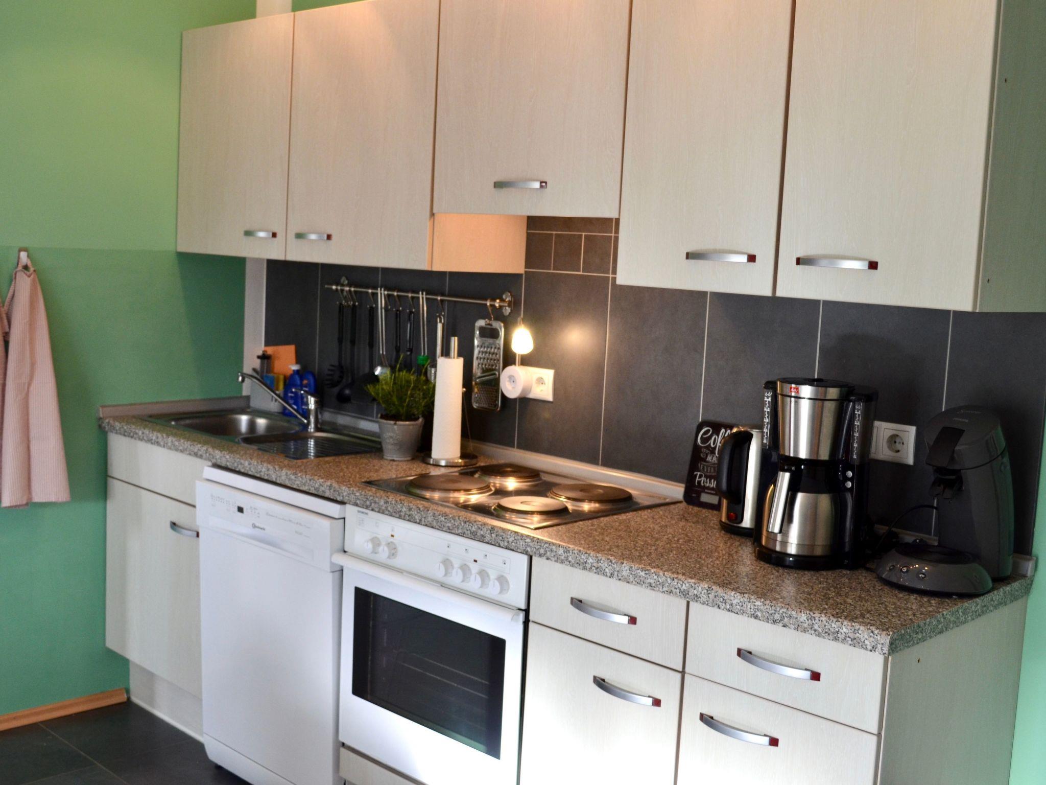 The flat has a bedroom with a double bed, a spacious living/dining area with a cosy sofa bed for a third person and a fully equipped kitchen. This leaves nothing to be desired with a dishwasher, microwave, four-ring hob, coffee pod machine and other amenities. The room is rounded off by a modern bathroom with shower, bath and washing machine. For your comfort, we offer free internet access (W-LAN) and cosy bathrobes for relaxing moments.