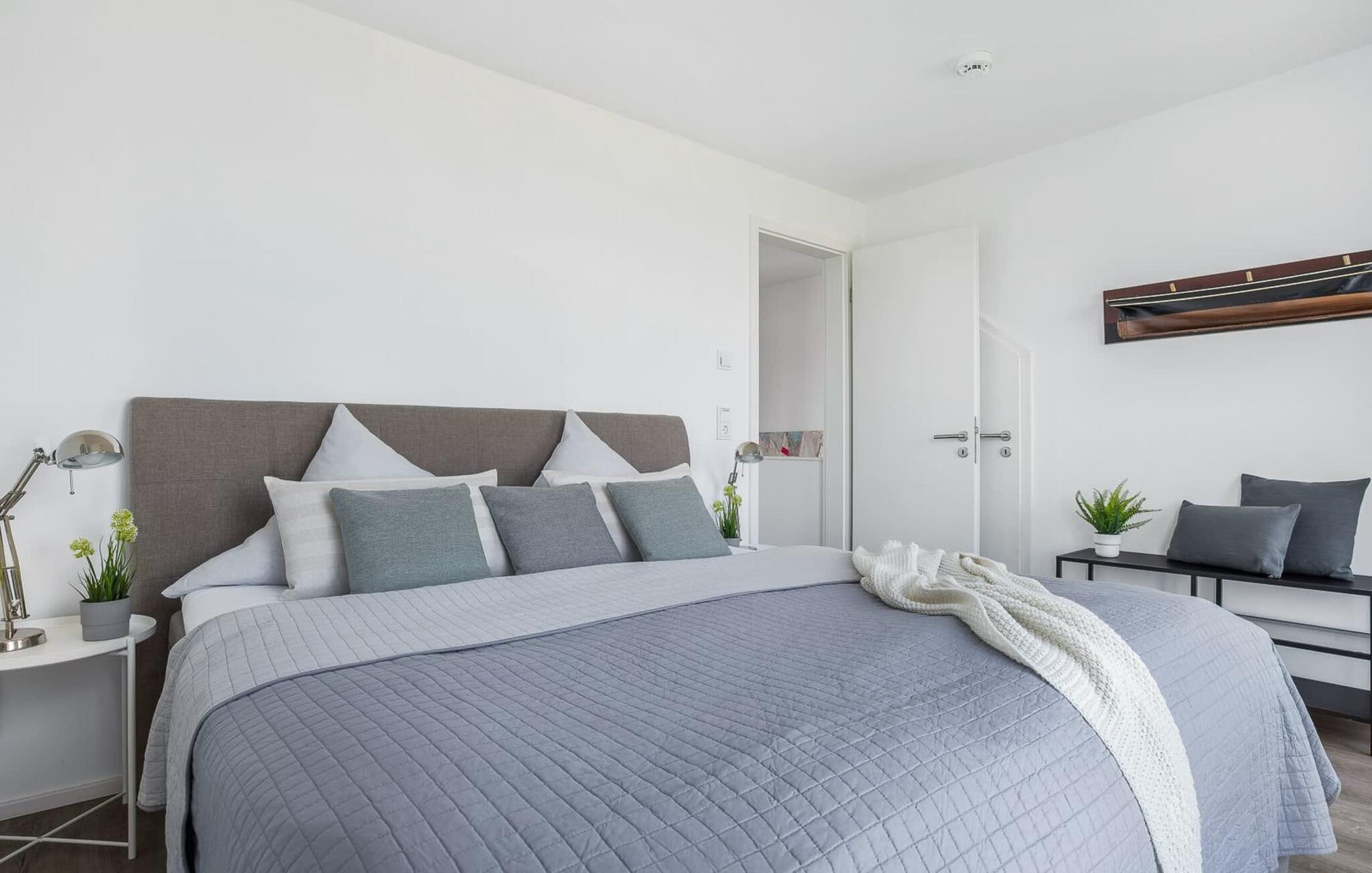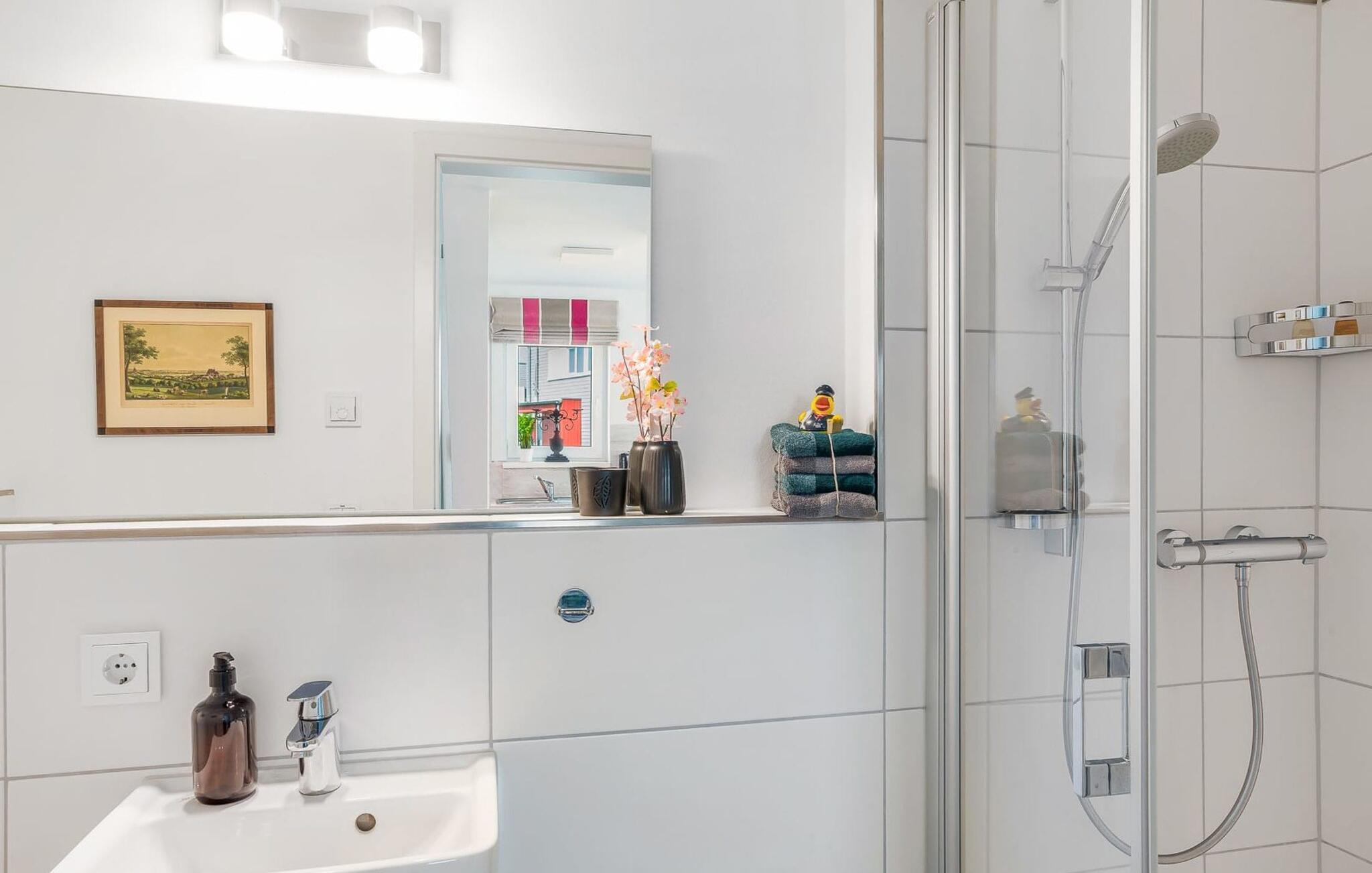 Det åpne kjøkkenet ligger i direkte tilknytning til oppholdsrommet, og har et omfattende utstyr som ikke etterlater noe å ønske. I øverste etasje blir drømmer til virkelighet når gjestene kan våkne opp og sovne i hovedsoverommet med en fantastisk utsikt over Schlei. Om morgenen byr bredden av Schlei på et ekte naturskue. Når endene og svanene våkner, kan du starte dagen på terrassen ved siden av soverommet. Et annet soverom har plass til ytterligere to voksne.