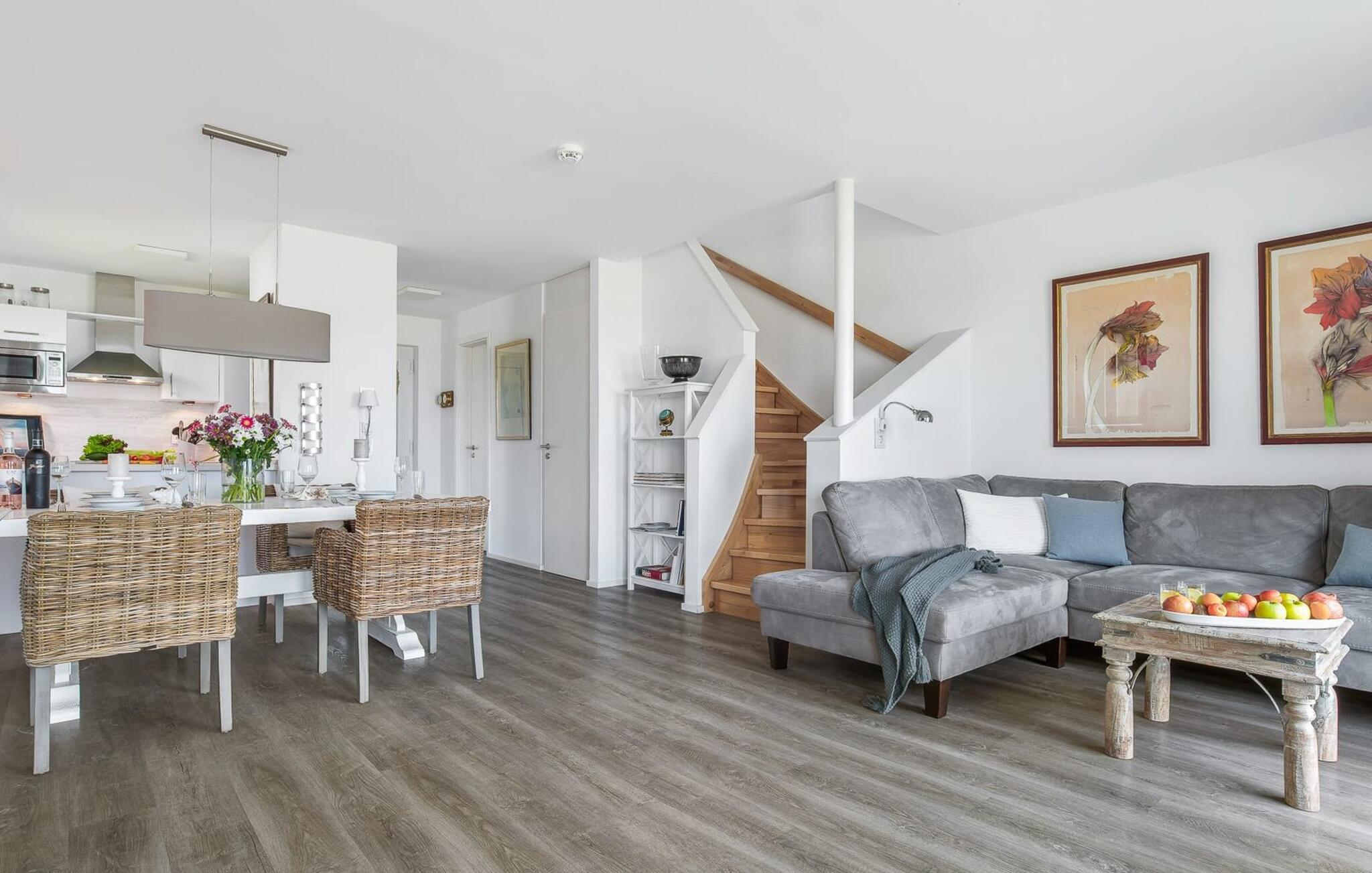 Den åpne stue-/spisestuen i første etasje imponerer med gulv-til-tak-vinduer, som gir en fantastisk utsikt over Schlei, som gir et fantastisk panorama rett foran vinduet. En sittegruppe, vedovn og et romslig spisebord sørger for hygge og selskapelighet. I direkte tilknytning til stuen ligger terrassen med panoramautsikt over Schlei. Enten du nyter en hyggelig grillfest eller et glass vin og en bok, vil sivet som svaier i vinden ved bredden av Schlei og den vidstrakte Schlei gi deg uforglemmelige ferieopplevelser.