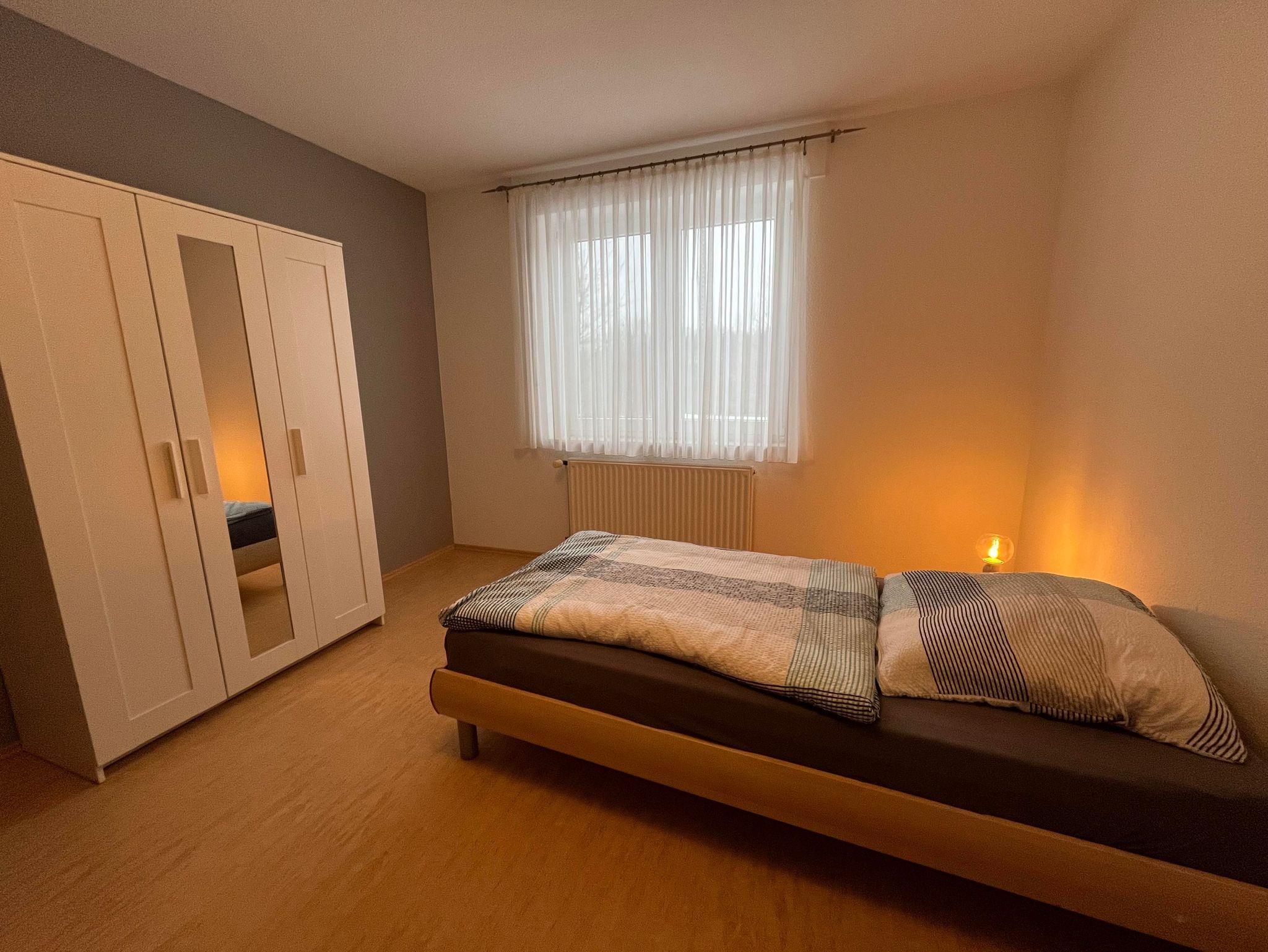 Diese helle Erdgeschosswohnung befindet sich am Rande eines Wohngebiets. Von dem überdachten Balkon (Südseite) haben Sie einen direkten Blick ins Grüne. Fahrradunterstellmöglichkeiten sind im Gerätehäuschen möglich. Vor dem Haus befindet sich für Sie ein Parkplatz. Die Wohnung ist über wenige Stufen zu erreichen. Waschmaschinennutzung ist nach Absprache möglich. WLan ist vorhanden.