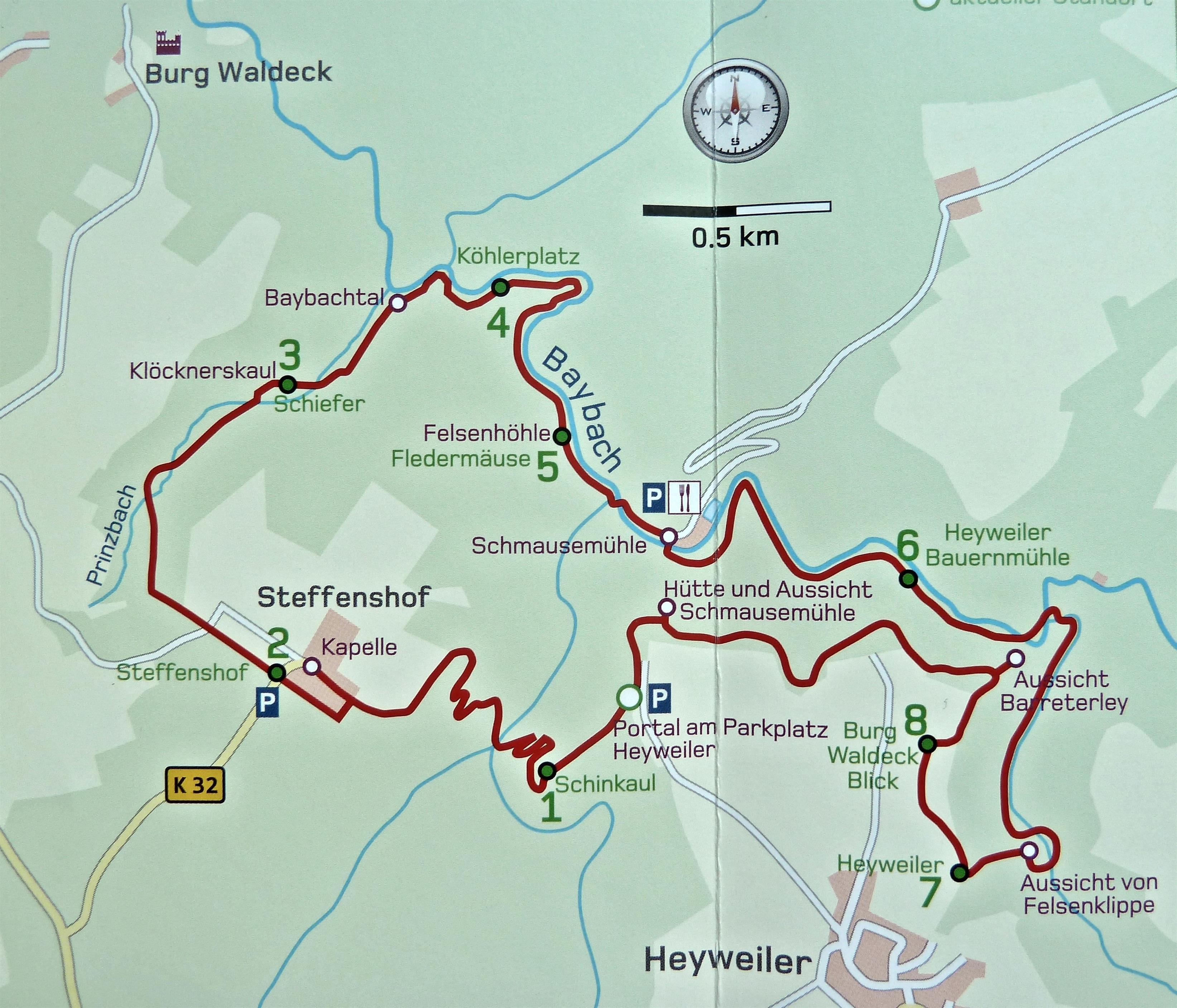 Täglichen Spaziergänge an den Waldrändern entlang um den Ort laden zur grandiosen Aussicht bis zur Eifel . Und versäumen Sie auf keinen Fall die Barreter-lay anzusteuern, ein besonderer Aussichtspunkt auf der Traumschleife. Ab der Ortsmitte immer am Wald entlang bleiben.