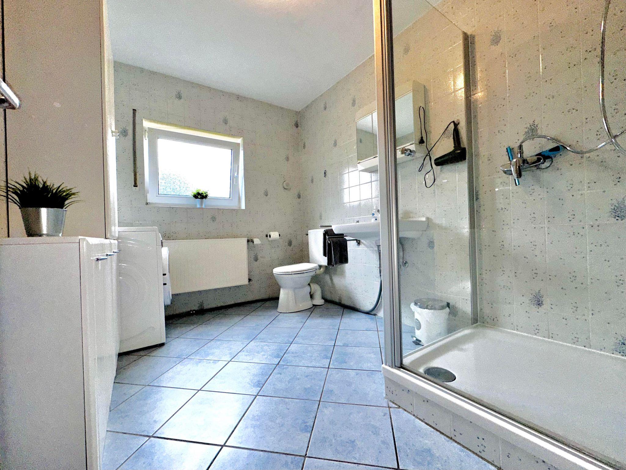 Im Badezimmer befindet sich eine großzügige Dusche. Ein Haartrockner, Hand- und Duschtücher sowie Duschvorlagen sind ebenfalls vorhanden. Gegen eine geringe Gebühr kann auch die Waschmaschine genutzt werden.