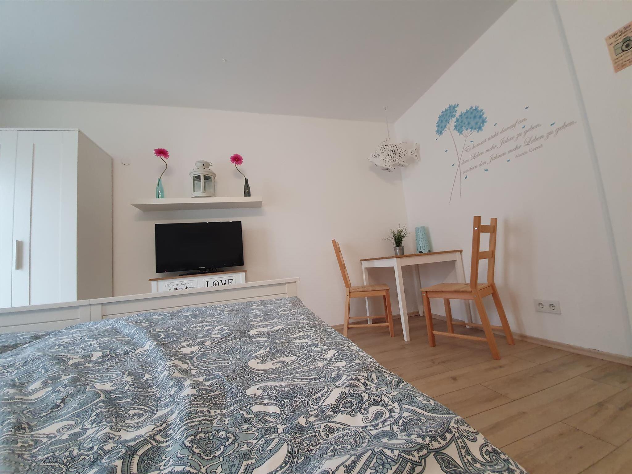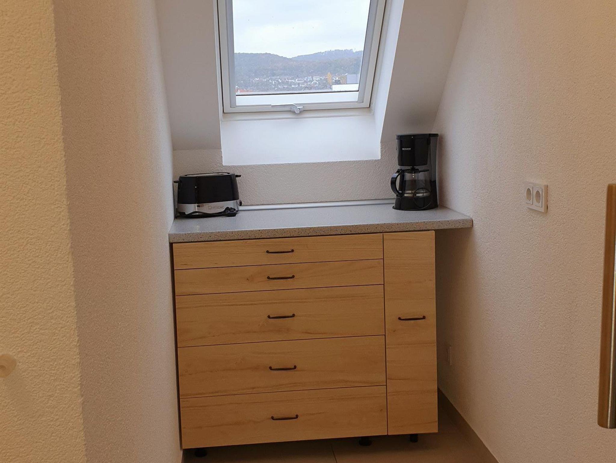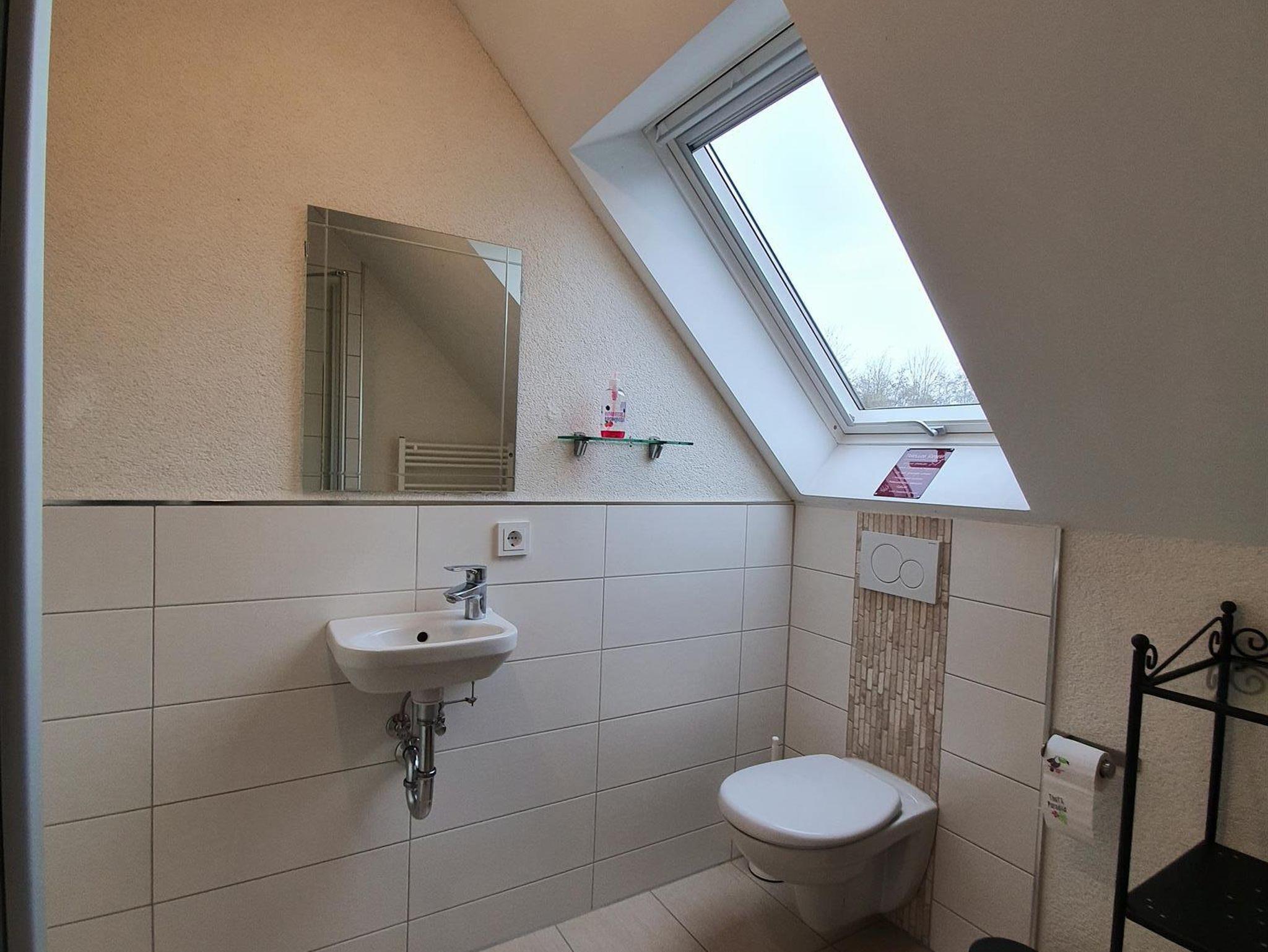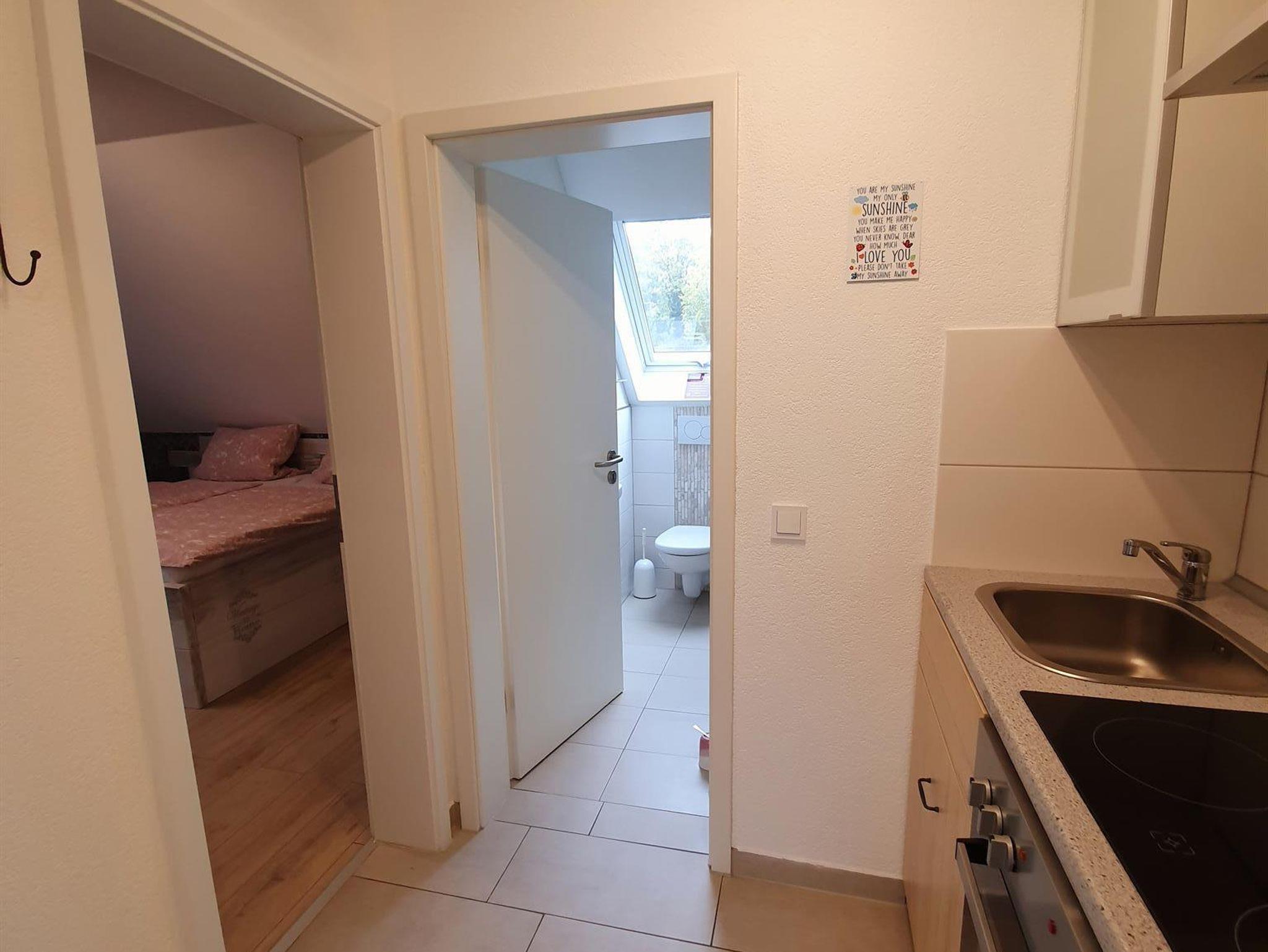 Wer einen separaten Bereich haben möchte, kann im OG das Appartment für sich alleine nutzten, da als abgeschlossene Einheit mit Abschlußtür nutzbar. . Somit bietet sich hier ein extra Wohnbereich (2 Doppelzimmer, Single Küche und kleines Duschbad).