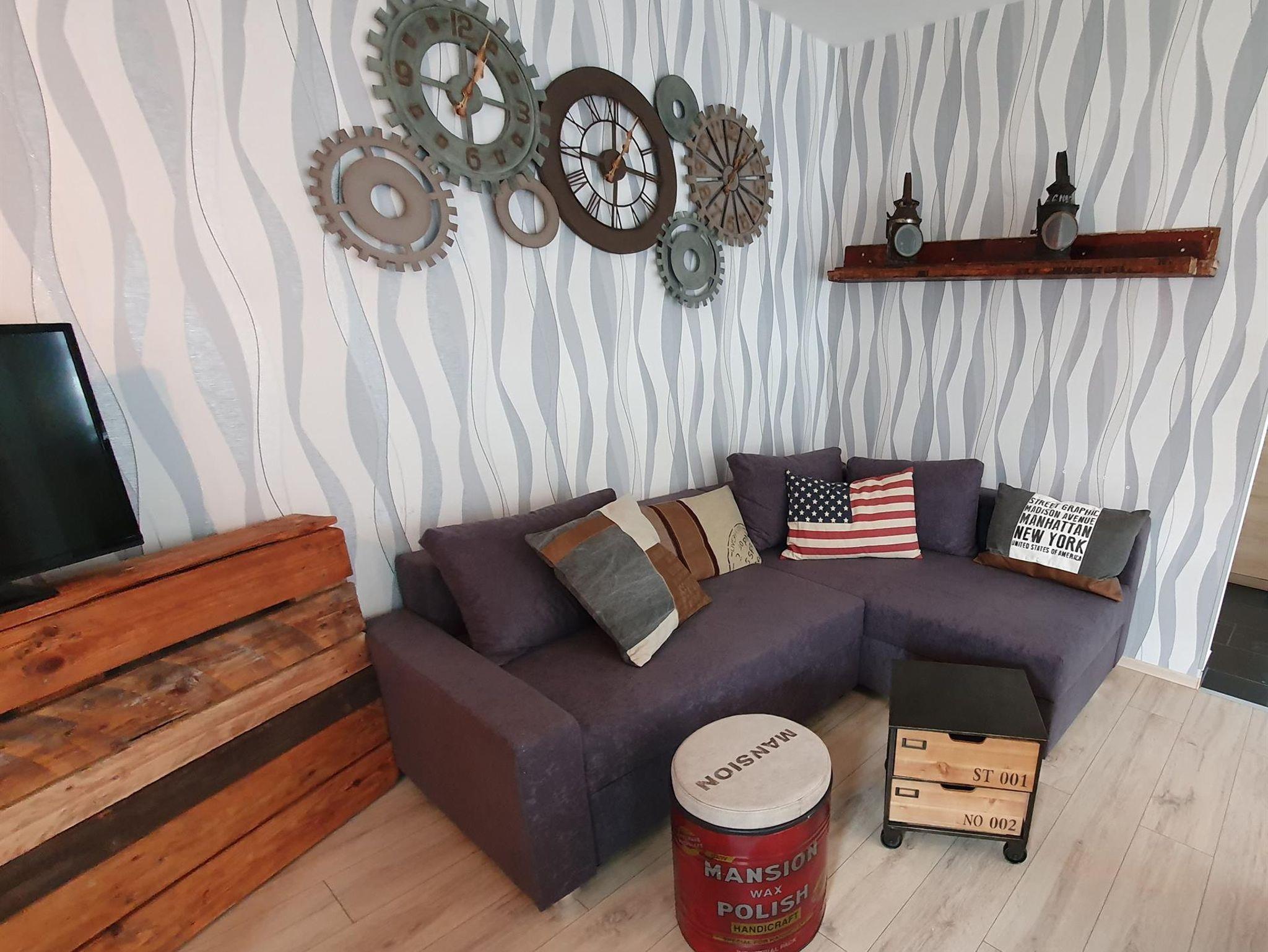 Im EG befindet sich die Küche sowie der Wohn-Essbereich. Der Wohn- Essbereich ist ganz im Industry Style eingerichtet. Hier können Sie es sich gemütlich machen. Zu den weiteren Annehmlichkeinten im Erdgeschoss teht ein Duschbad zur Verfügung mit Waschmaschine und Trockner, sowie ein Gäste WC. Vom Esszimmer und den im EG befindlichen Schlafräumen haben Sie direkten Zugang zu der grossen Terrasse mit Garten. Das EG verfügt über ein Einzelzimmer und ein Doppelzimmer. In beiden Schlafräumen befindet sich ein Fernseher.