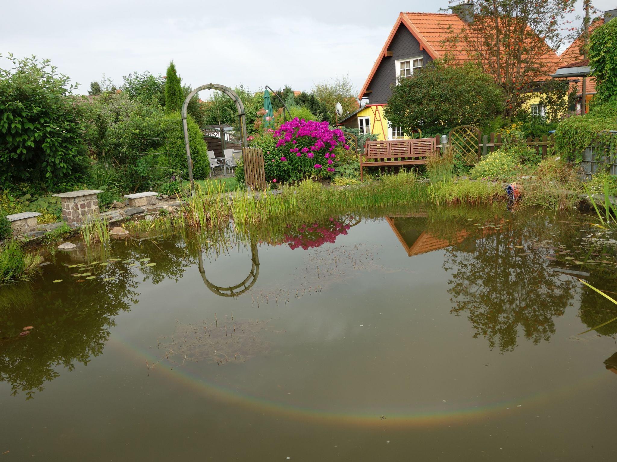 The outdoor area of the holiday home impresses with a spacious garden of approx. 2000 square metres, idyllic seating areas, garden pond with pavilion, Hollywood swing and a small wood. Guests of all holiday flats can enjoy the sun, nature and peace and quiet or use the barbecue. There is plenty of garden furniture available. Despite the communal use of the garden, everyone can find their own secluded corner. Parking is available directly in front of the house, and vehicles can also be parked free of charge in the public area in front of the property.