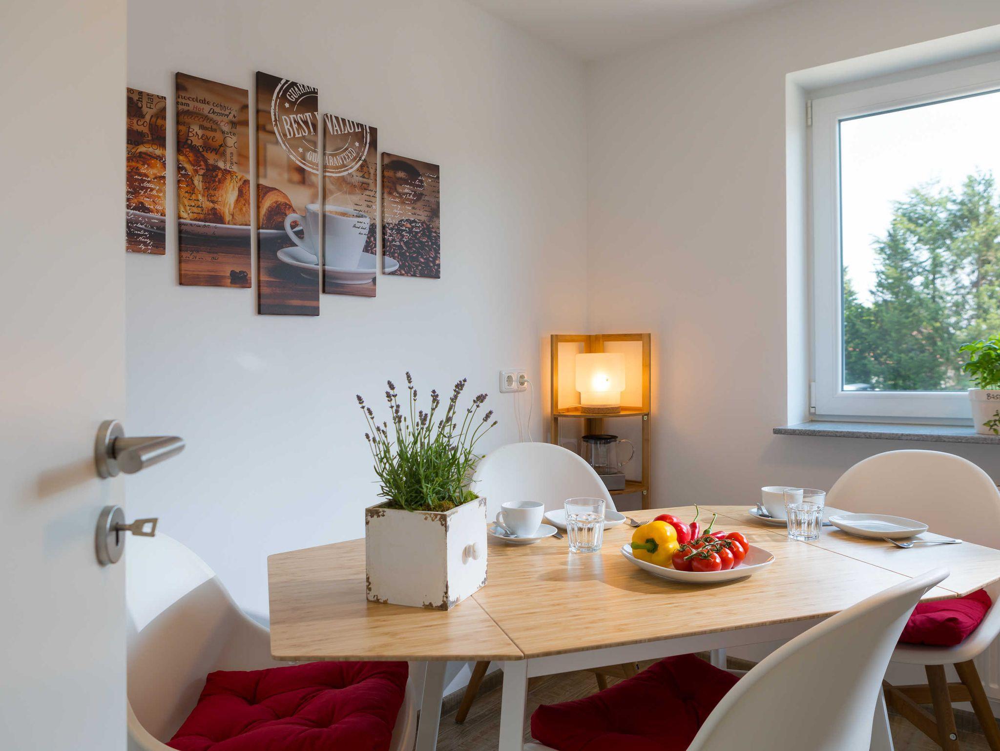 Die Ferienwohnung „Harzer Bachtäler“ bietet auf 65m² Platz für bis zu 3 Personen. Das Schlafzimmer verfügt über ein gemütliches Boxspringbett für 2 Personen sowie ausreichend Stauraum für Kleidung etc. Im Wohnzimmer befindet sich eine großzügige Schlafcouch, die Platz für 1 weitere Person bietet. Auf Wunsch kann ein Kinder-Reisebett für Kleinkinder zur Verfügung gestellt werden. TV und W-Lan sind ebenfalls vorhanden. Für die ganz persönliche Wellness-Auszeit finden Sie im Badezimmer eine zweiteilige Regendusche; Waschbecken, WC, Fön und Heizung zum Trocknen von Handtüchern sind ebenfalls verfügbar. Die separate Küche mit eigener Sitzgruppe und moderner Vollausstattung lässt darüber hinaus keine Wünsche offen. Im Service inbegriffen ist die Erstausstattung Wäsche pro angemeldeter Person (Bettwäsche/Handtücher) sowie ein Begrüßungsgeschenk (1 Flasche Sekt und 1 Flasche Wasser). Ein Parkplatz befindet sich direkt am Haus (auch für Wohnmobil geeignet). Eine Waschmaschine/ein Trockner mit Münzeinwurf finden Sie außerhalb des Wohnbereiches im Gebäude. Hier gibt es auch einen geschlossenen Abstellbereich für Fahrräder. Zwei E-Bikes können vor Ort für 30-35 € je Tag gemietet werden. Mit Rücksicht auf Allergiker ist das Mitbringen von Haustieren nicht gestattet.