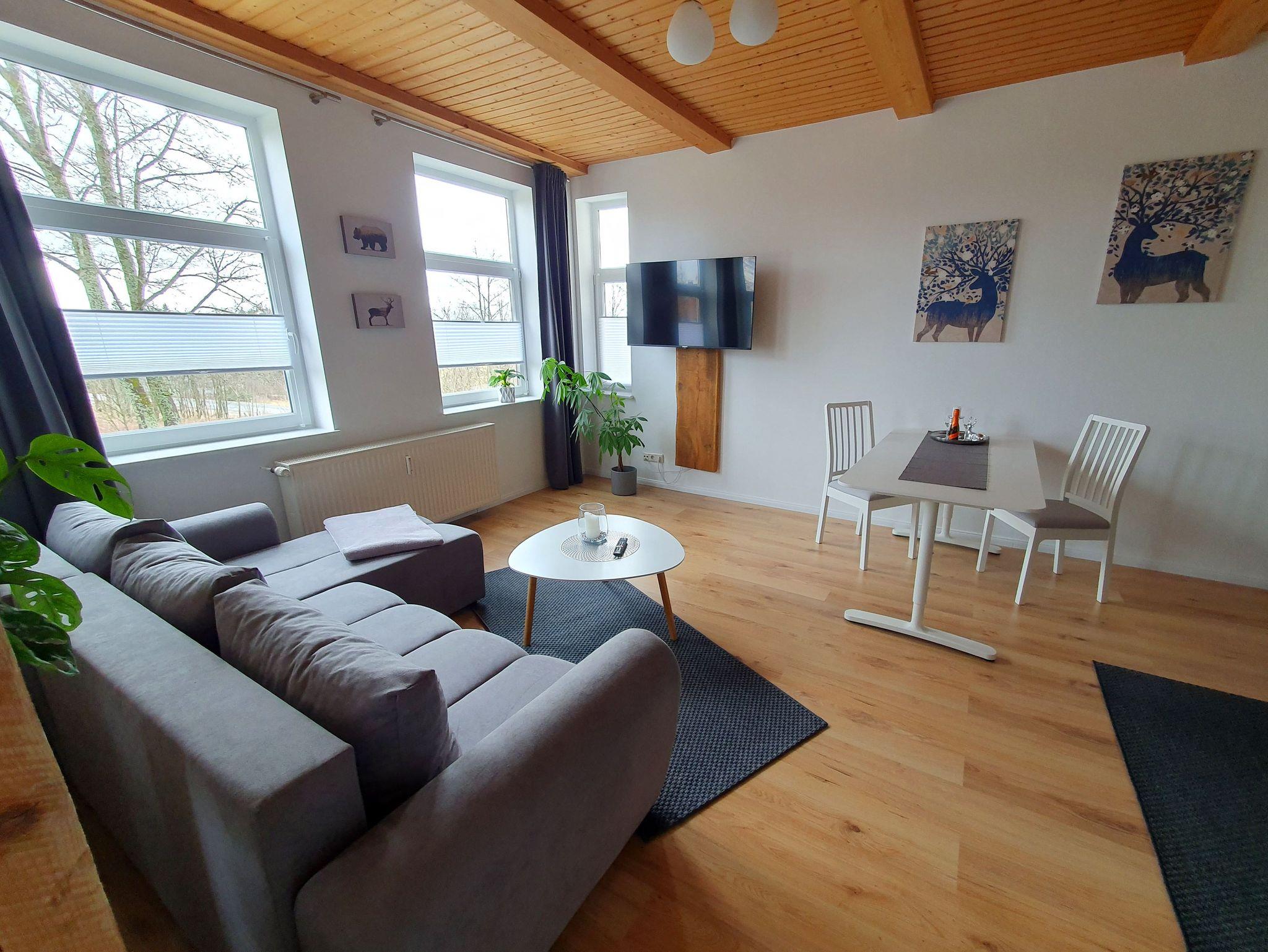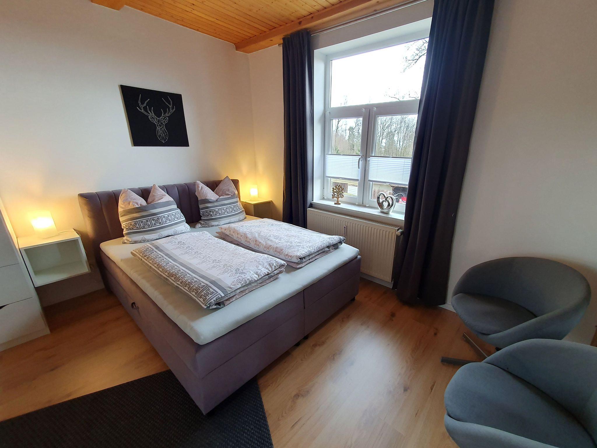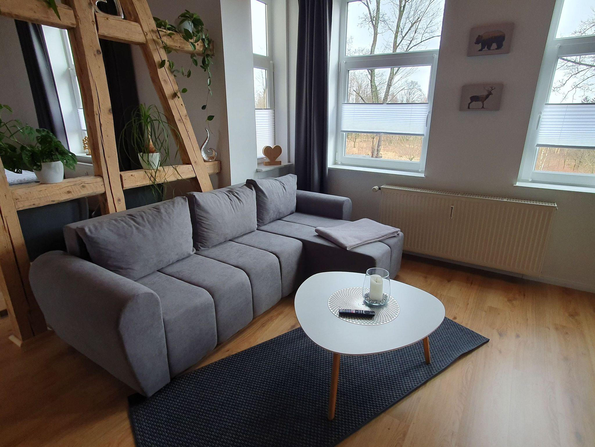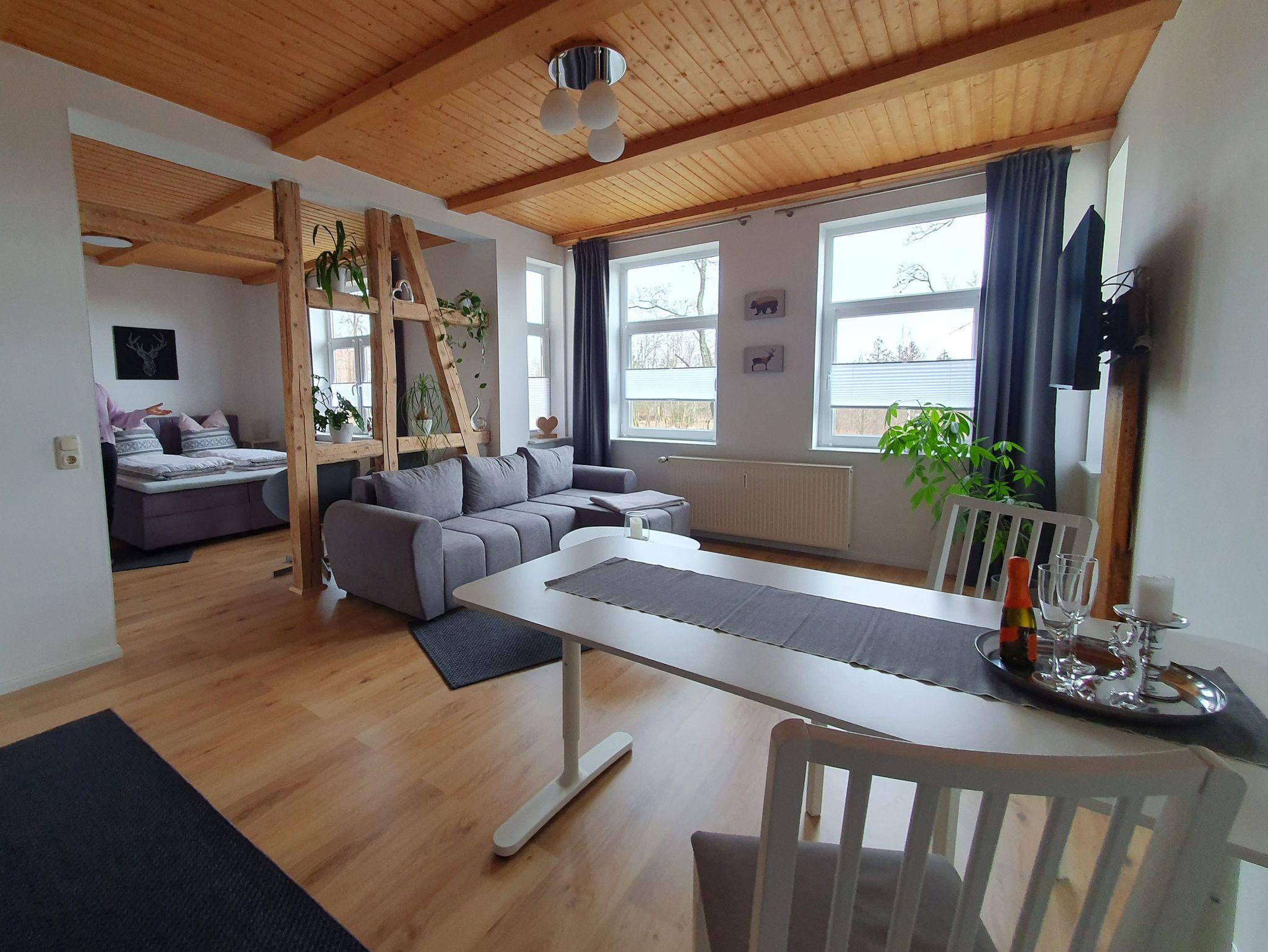 In unserer Ferienwohnung können Sie die Seele baumeln lassen. Sie befindet sich im 1. Obergeschoss des Hauses. Die Wohnung lädt mit einem modernen Boxspringbett, einem gemütlichen Sofa und einem hochwertigen Badezimmer zum Wohlfühlen ein. Das charmante Fachwerk sorgt für einen ganz besonderen Flair in der Wohnung. Ob kleine Auszeit, Familienurlaub oder verlängertes Wochenende - hier sind Sie genau richtig! Natürlich ist auch Ihr Vierbeiner herzlich willkommen.