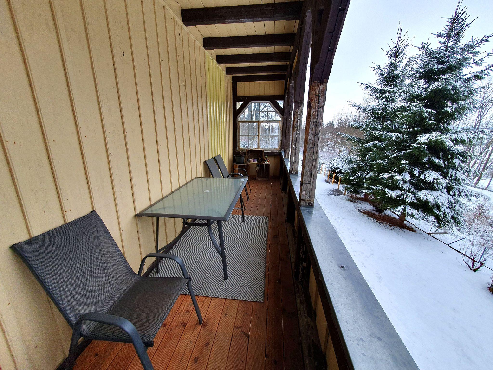 Zusätzlich kommen sie vom Wohnzimmer auf den großen überdachten Balkon mit Sitzgelegenheiten. Ganz ab vom Lärm der Städte lauschen sie hier der Natur.