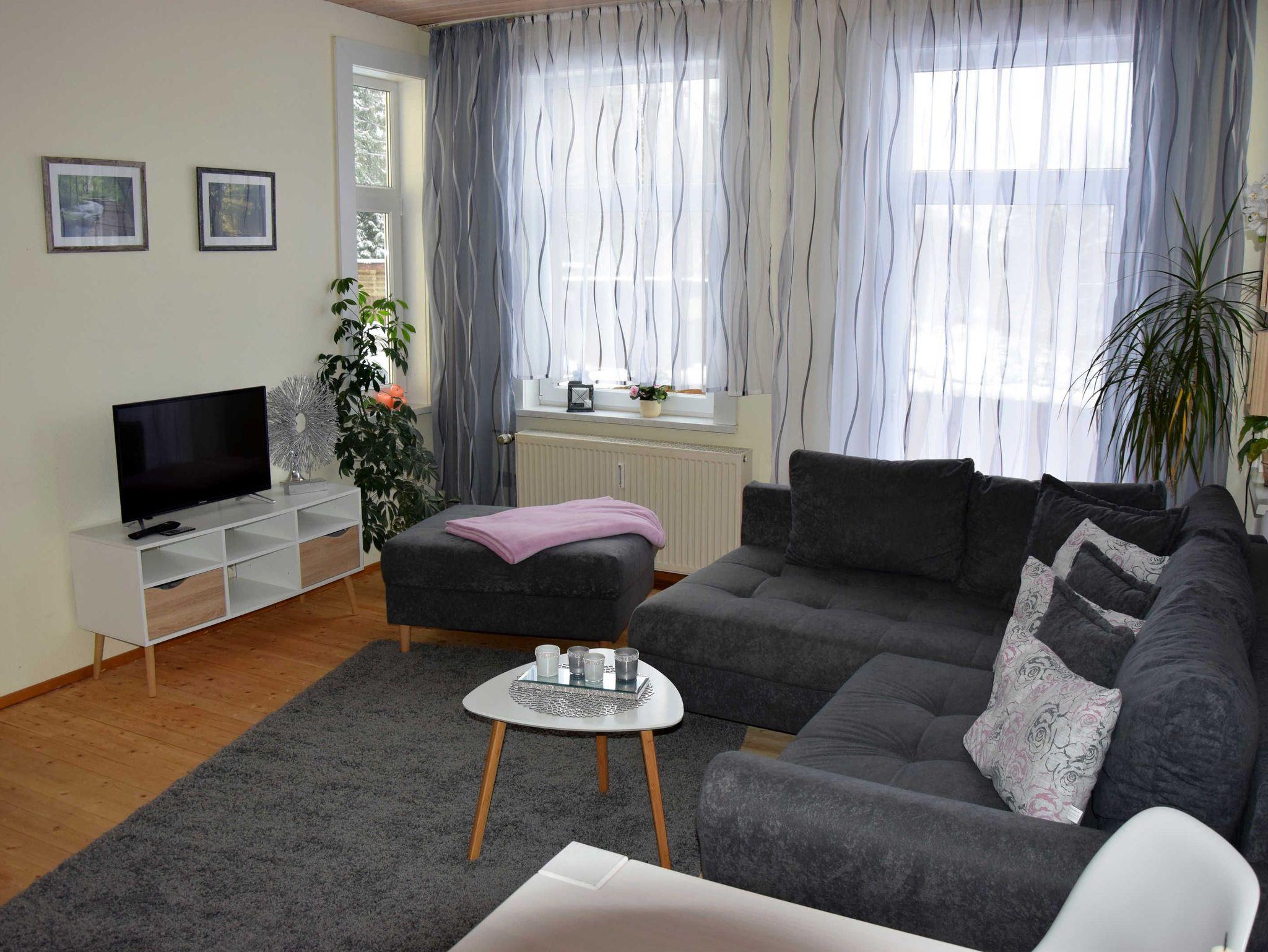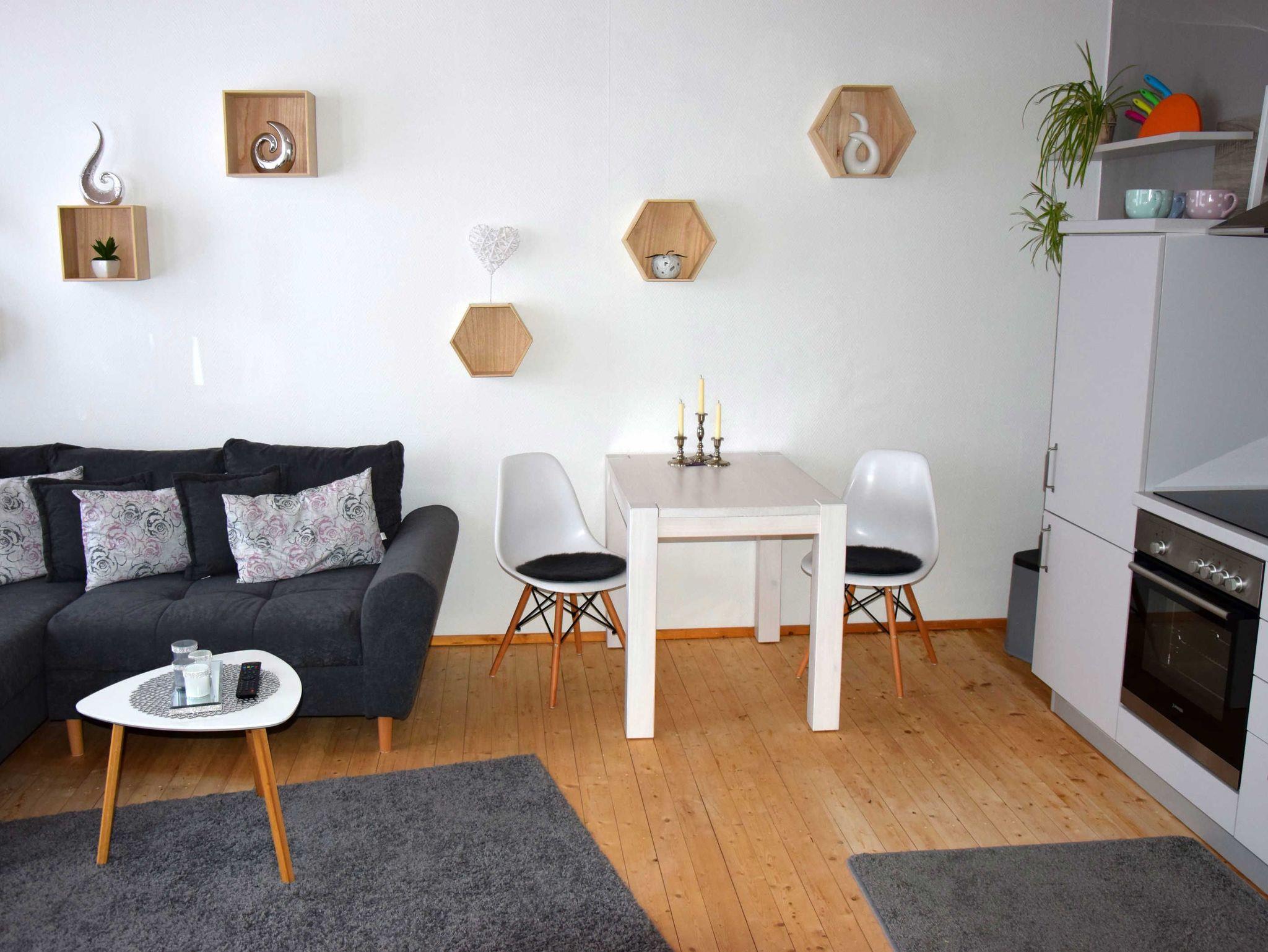 Die Ferienwohnung STILVOLL ist eine moderne, helle und großzügige Nichtraucherwohnung mit Balkon im Erdgeschoss. Sie hat eine Größe von 45 m² und bietet ein großes Wohnzimmer mit Couch, SAT-TV und offener Küche. Es erwartet sie eine Einbauküche mit Ceranfeld und Backofen, Kühlschrank mit Gefriermöglichkeit, Geschirrspüler und Esstisch. Zur Ferienwohnung gehört ein Schlafzimmer mit einem Boxspringbett und einem Kleiderschrank.