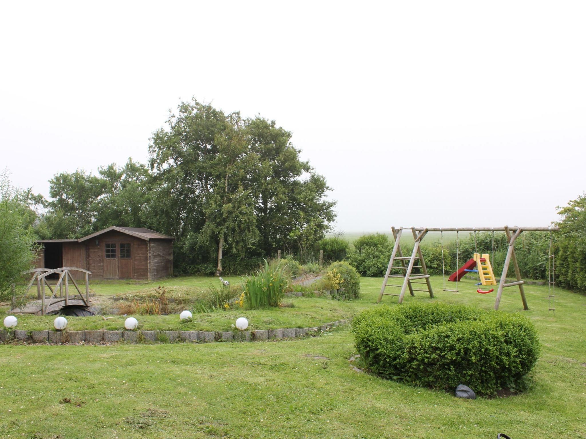 The spacious outdoor area of the house invites you to linger and relax. Enjoy the evening hours on the covered terrace with awnings, equipped with teak garden furniture for up to 12 people. A barbecue is also available for cosy evenings. The garden offers plenty of space for fun and games and is right next to the dyke, so the beach is just a few minutes' walk away.