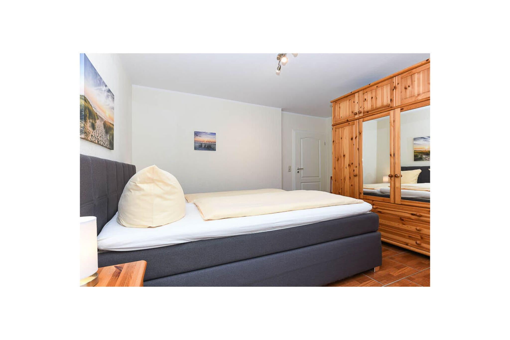 Die allergikerfreundliche Fewo im Nordsee-Gartenpark verfügt über großzügigen Wohn-Essbereich mit großer, moderner Küche außerdem über 2 separate Schlafzimmer, 1 Boxspring-Doppelbett, Jetzt Neu: 2 Einzel-Boxspringbetten, (Kinder-Gitterbett kann zugestellt werden), Dusche mit WC, Balkon mit Strandkorb und Gartenmöbel, neuer WLAN-Anschluss, fester Tiefgaragenparkplatz, Aufzüge.... Nichtraucher-Wohnung, keine Tiere, Behindertenfreundlich Die Wohnung und Tiefgarage, Waschräume, die Deichpassage des Nordsee-Gartenparks als auch alle anderen Einrichtungen können ohne das Haus zu verlassen und ohne Treppensteigen mit den Aufzügen erreicht werden. Durch die Verbindung mit der Deichpassage stehen Ihnen für Ihren Einkauf - direkt in der Deichpassage - Bäcker, Supermarkt, Restaurant, Eisdiele mit Cafe´, Bank und diverse Geschäfte zur Verfügung.