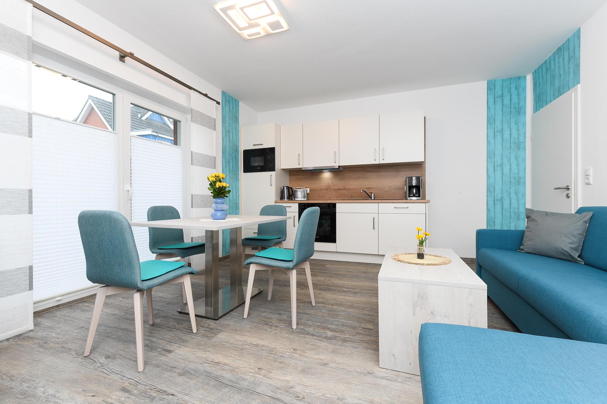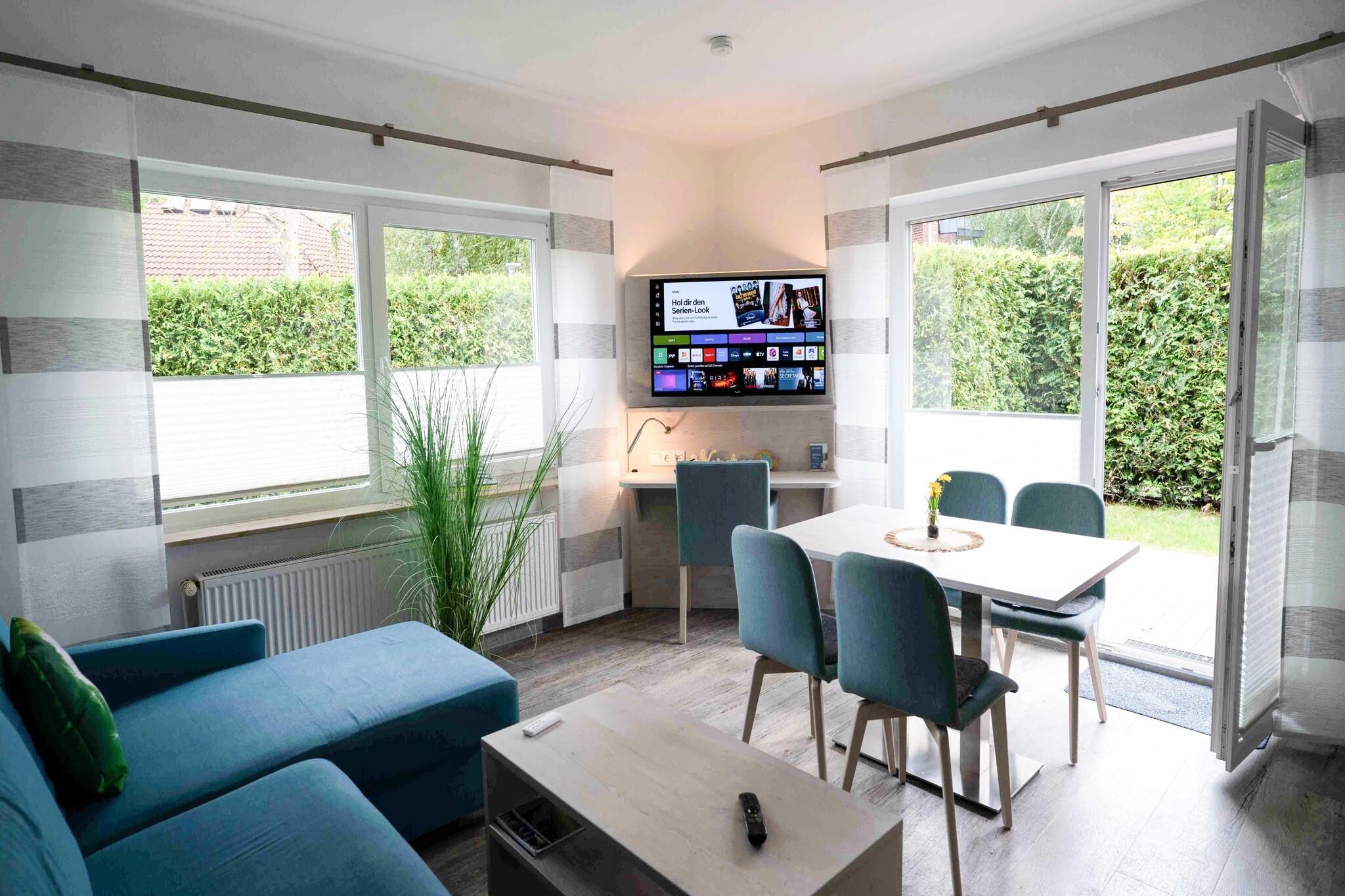 Denne koselige og høykvalitets ferieleiligheten i første etasje tilbyr omtrent 50 m² plass til 1 til 4 personer pluss et lite barn – ideelt for familier eller par som ønsker å kombinere fred og ro med nærhet til Nordsjøen. Leiligheten har en lys stue med integrert kjøkken, et separat soverom, et barnerom og et moderne bad med dusj, servant og toalett. En privat terrasse med sitteplasser inviterer deg til å slappe av utendørs. Det moderne kjøkkenet er utstyrt med alle viktige hvitevarer og et spisebord. Ytterligere fasiliteter inkluderer flatskjerm-TV, gratis Wi-Fi og madrasser av høy kvalitet for en god natts søvn. En velstelt hage med lekeområder ligger rett bak huset og tilbyr god plass for barn. Vaskemaskin og tørketrommel er også tilgjengelig for felles bruk. Eiendommen ligger i en rolig blindvei uten gjennomgangstrafikk – men stranden, havnen og Nordsjøens termalbad ligger innen gangavstand på bare noen få minutter. Perfekt for en avslappende Nordsjøferie med hele familien. Høydepunkter: Wi-Fi, forbruksbaserte energikostnader og vaskeripakke inkludert. Merknad om sluttrengjøring: For opphold på færre enn 5 netter betales et gebyr på 80 EURO; ellers er sluttrengjøring inkludert.