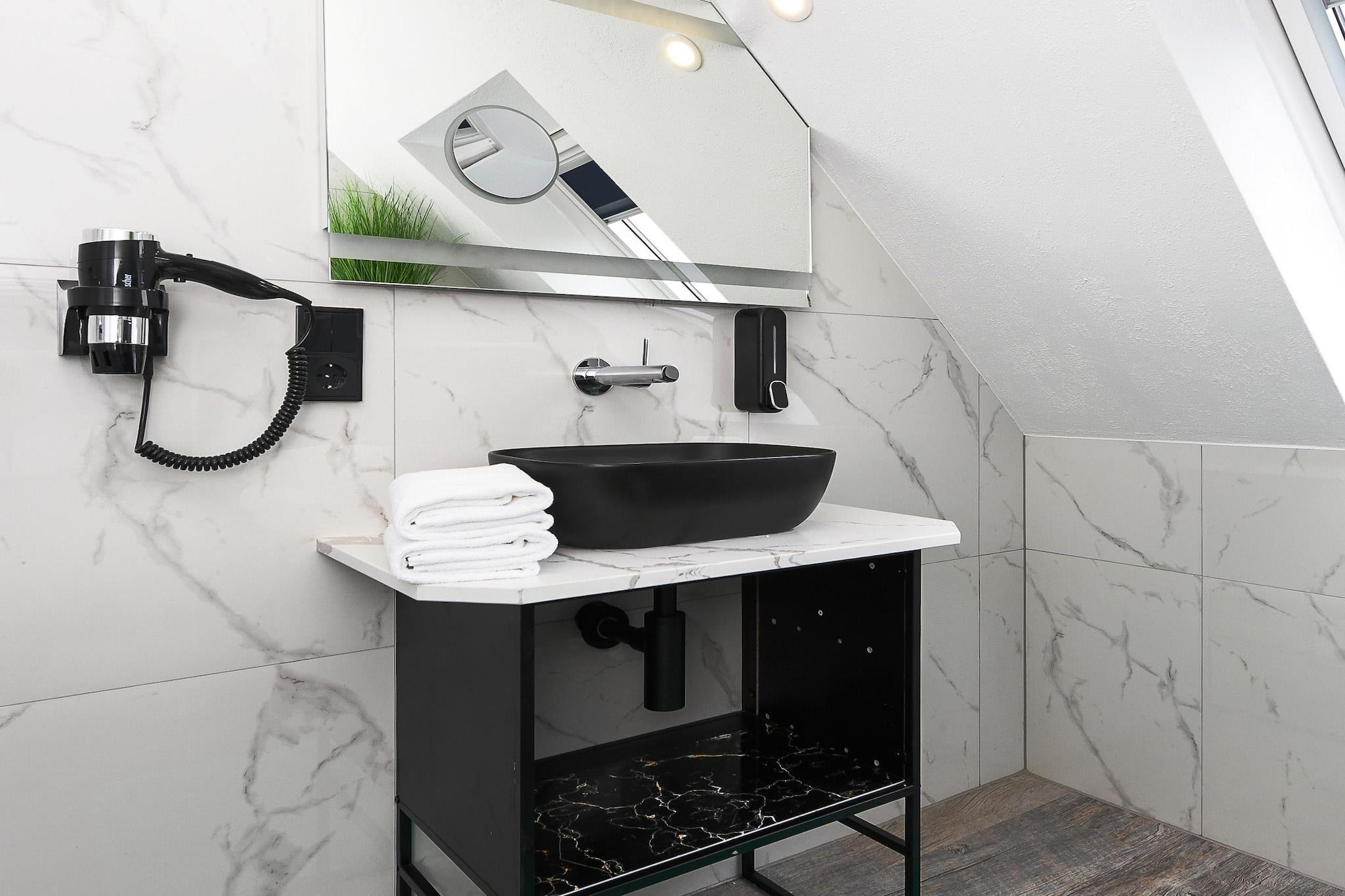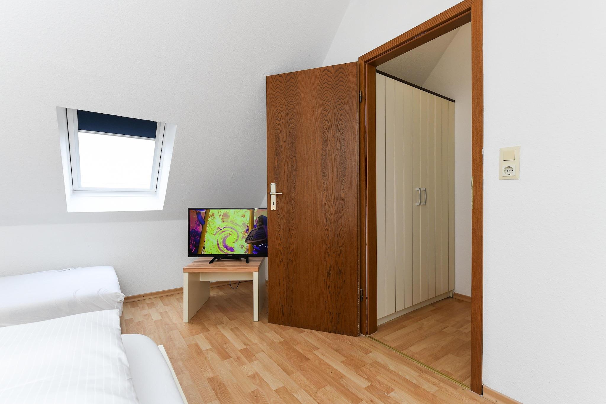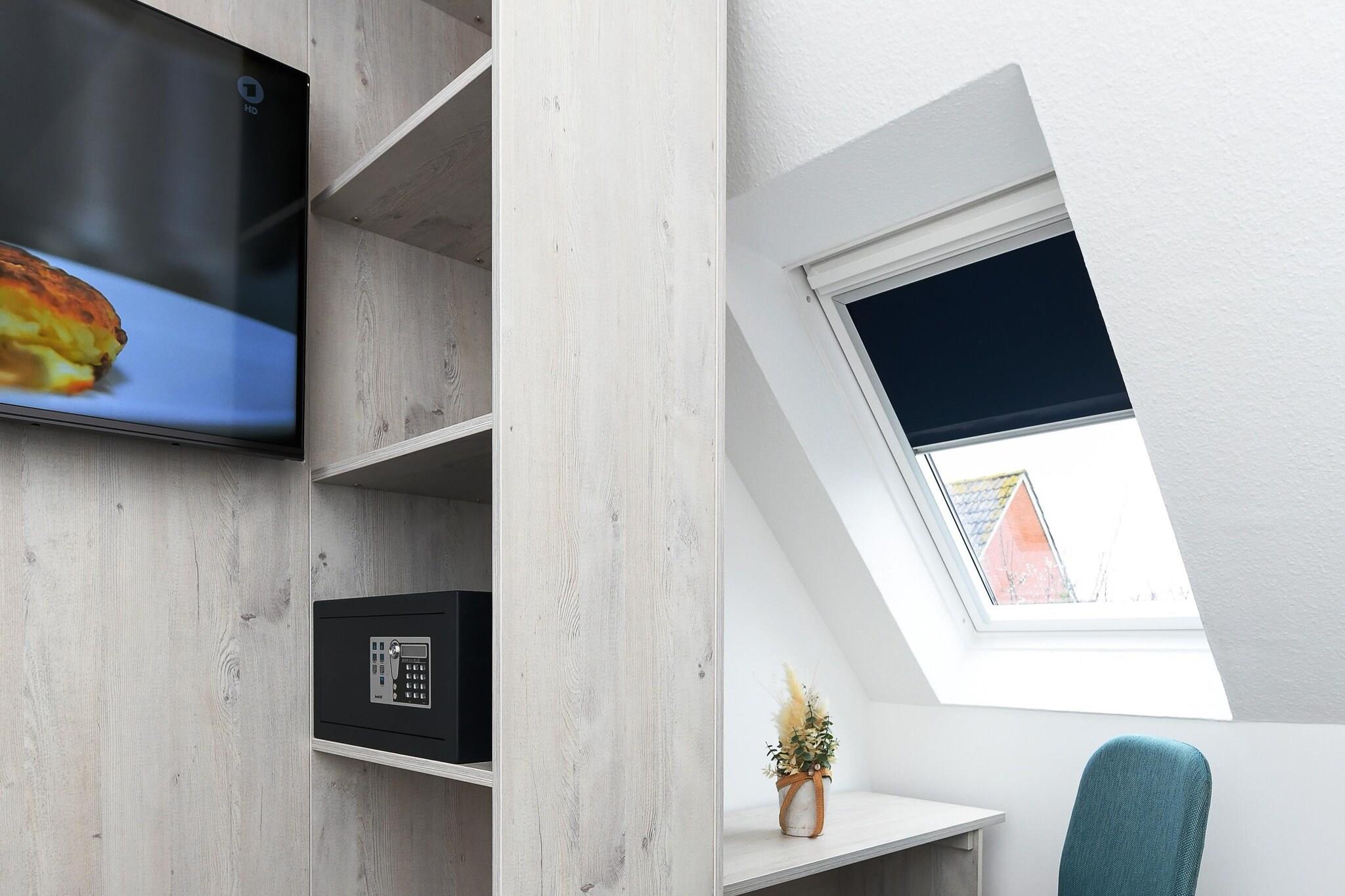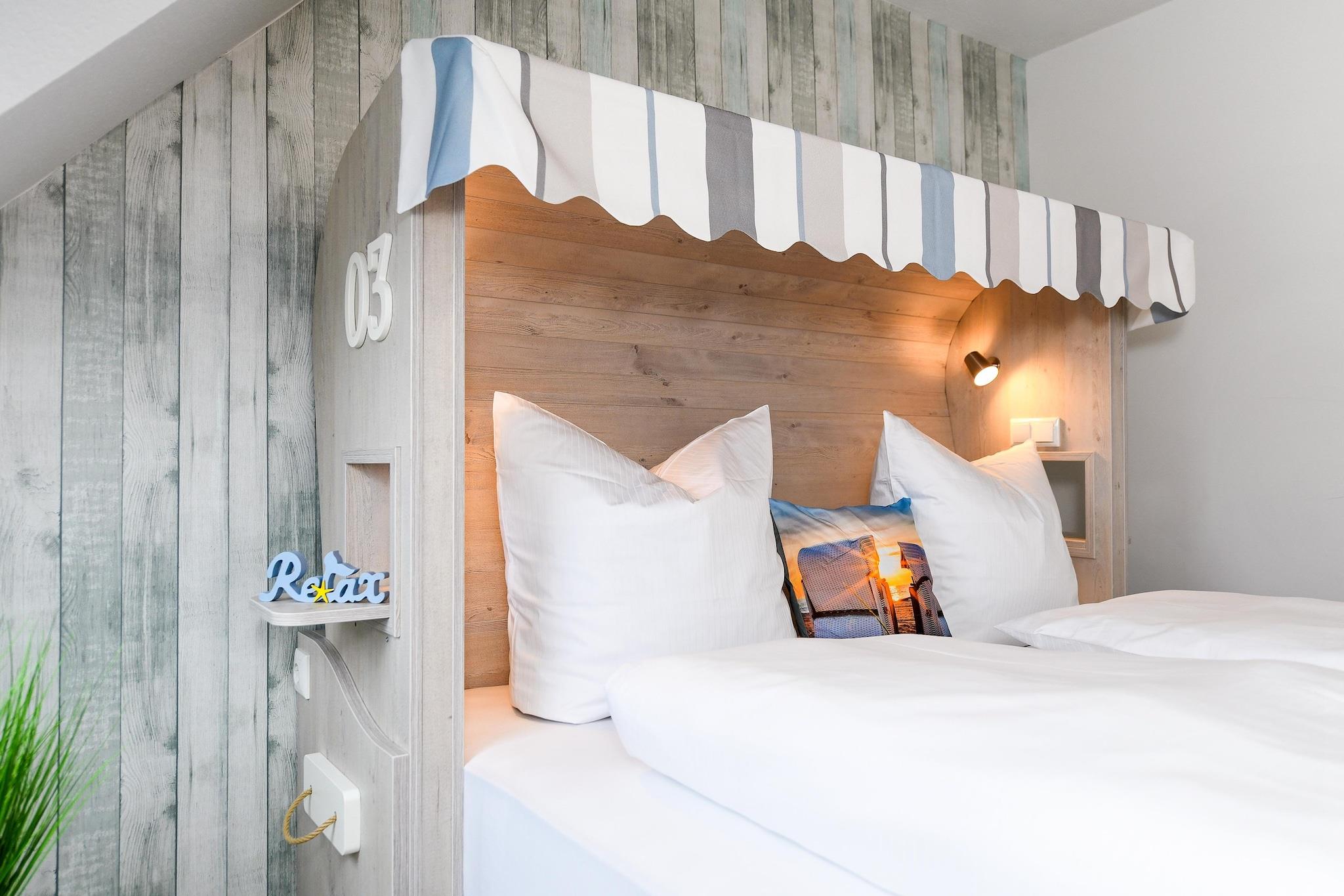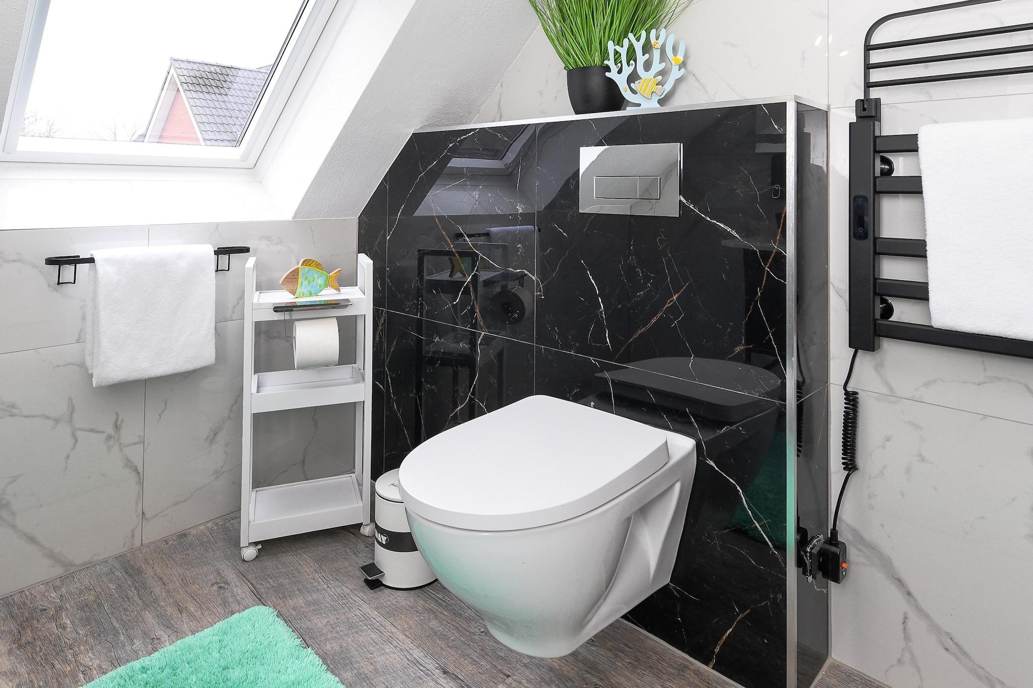 Denne koselige leiligheten i første etasje, på omtrent 50 m², tilbyr alt familier og de som søker avslapning trenger for en avslappende ferie ved Nordsjøen. Leiligheten er ideell for 1 til 4 personer, pluss et ekstra småbarn. Den har en lys stue med integrert kjøkken, et separat soverom, et barnerom og et moderne bad med dusj og toalett. Den private terrassen inviterer deg til å nyte solfylte frokoster eller avslappende kvelder utendørs. Gratis Wi-Fi, moderne kjøkkenapparater, flatskjerm-TV og madrasser av høy kvalitet sikrer komforten i hjemmet. Spesielt praktisk for familier: vaskemaskin og tørketrommel er tilgjengelig i fellesområdet. Den velstelte hagen bak huset gir god plass til lek og avslapning. Takket være den rolige beliggenheten og nærheten til stranden, sentrum og fritidsaktiviteter, er leiligheten ideell for par eller barnefamilier som ønsker å nyte ferien sin ved Nordsjøkysten. Høydepunkter: Wi-Fi, forbruksbaserte energikostnader og en sengetøypakke inkludert. Merknad om sluttrengjøring: For opphold på færre enn 5 netter betales et gebyr på EURO80; ellers er sluttrengjøring inkludert.