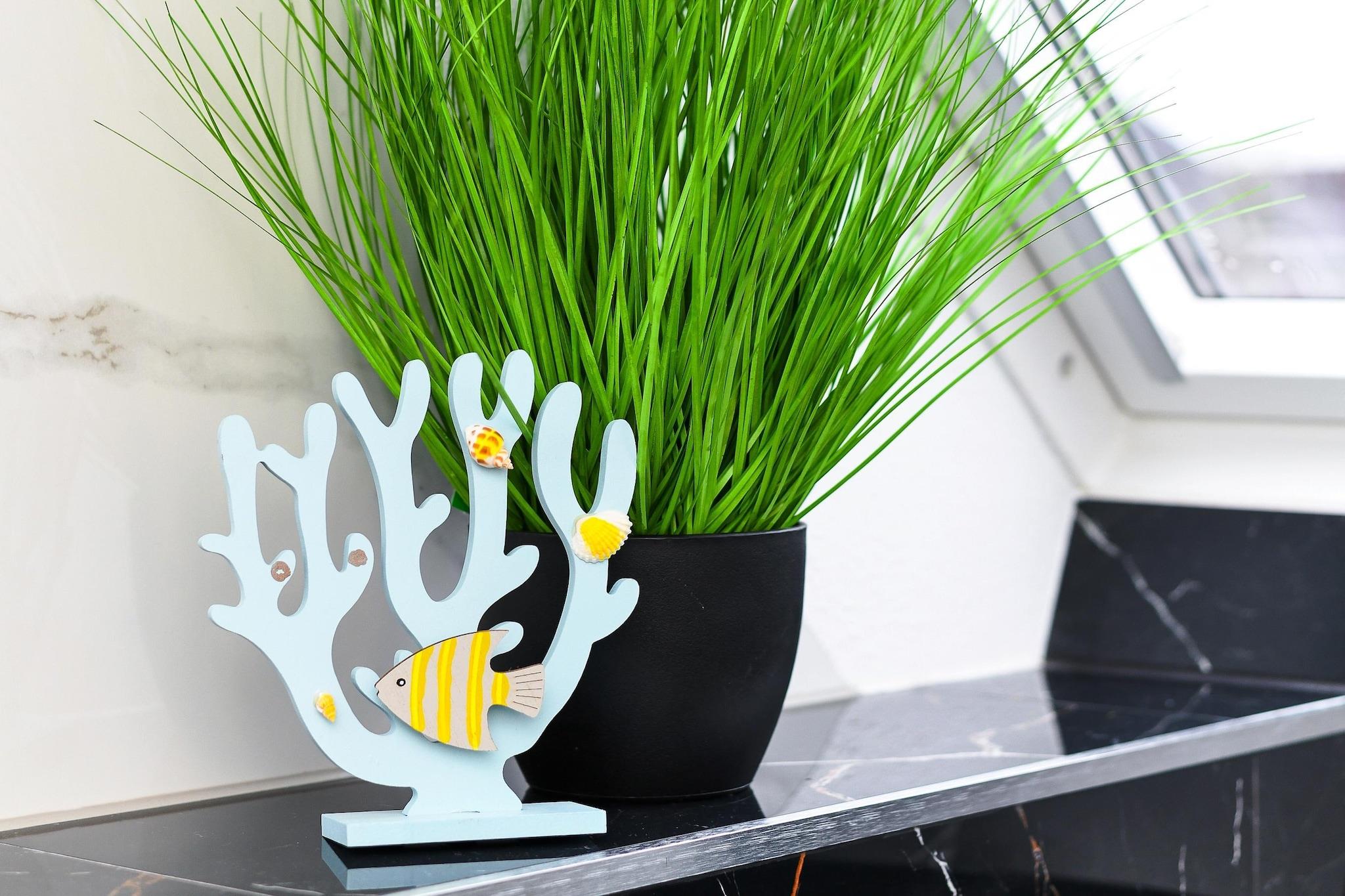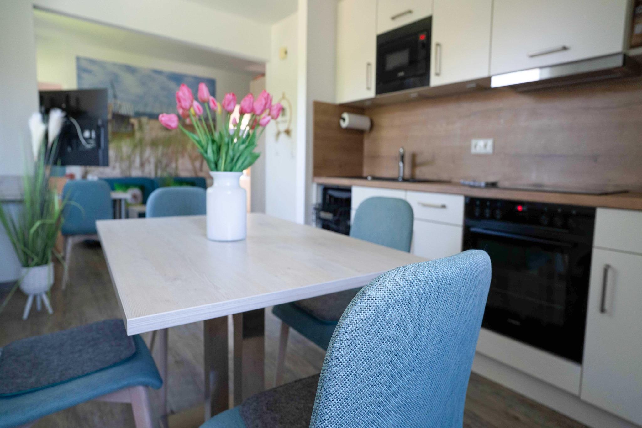 Denne koselige leiligheten i første etasje, på omtrent 50 m², tilbyr alt familier og de som søker avslapning trenger for en avslappende ferie ved Nordsjøen. Leiligheten er ideell for 1 til 4 personer, pluss et ekstra småbarn. Den har en lys stue med integrert kjøkken, et separat soverom, et barnerom og et moderne bad med dusj og toalett. Den private terrassen inviterer deg til å nyte solfylte frokoster eller avslappende kvelder utendørs. Gratis Wi-Fi, moderne kjøkkenapparater, flatskjerm-TV og madrasser av høy kvalitet sikrer komforten i hjemmet. Spesielt praktisk for familier: vaskemaskin og tørketrommel er tilgjengelig i fellesområdet. Den velstelte hagen bak huset gir god plass til lek og avslapning. Takket være den rolige beliggenheten og nærheten til stranden, sentrum og fritidsaktiviteter, er leiligheten ideell for par eller barnefamilier som ønsker å nyte ferien sin ved Nordsjøkysten. Høydepunkter: Wi-Fi, forbruksbaserte energikostnader og en sengetøypakke inkludert. Merknad om sluttrengjøring: For opphold på færre enn 5 netter betales et gebyr på EURO80; ellers er sluttrengjøring inkludert.
