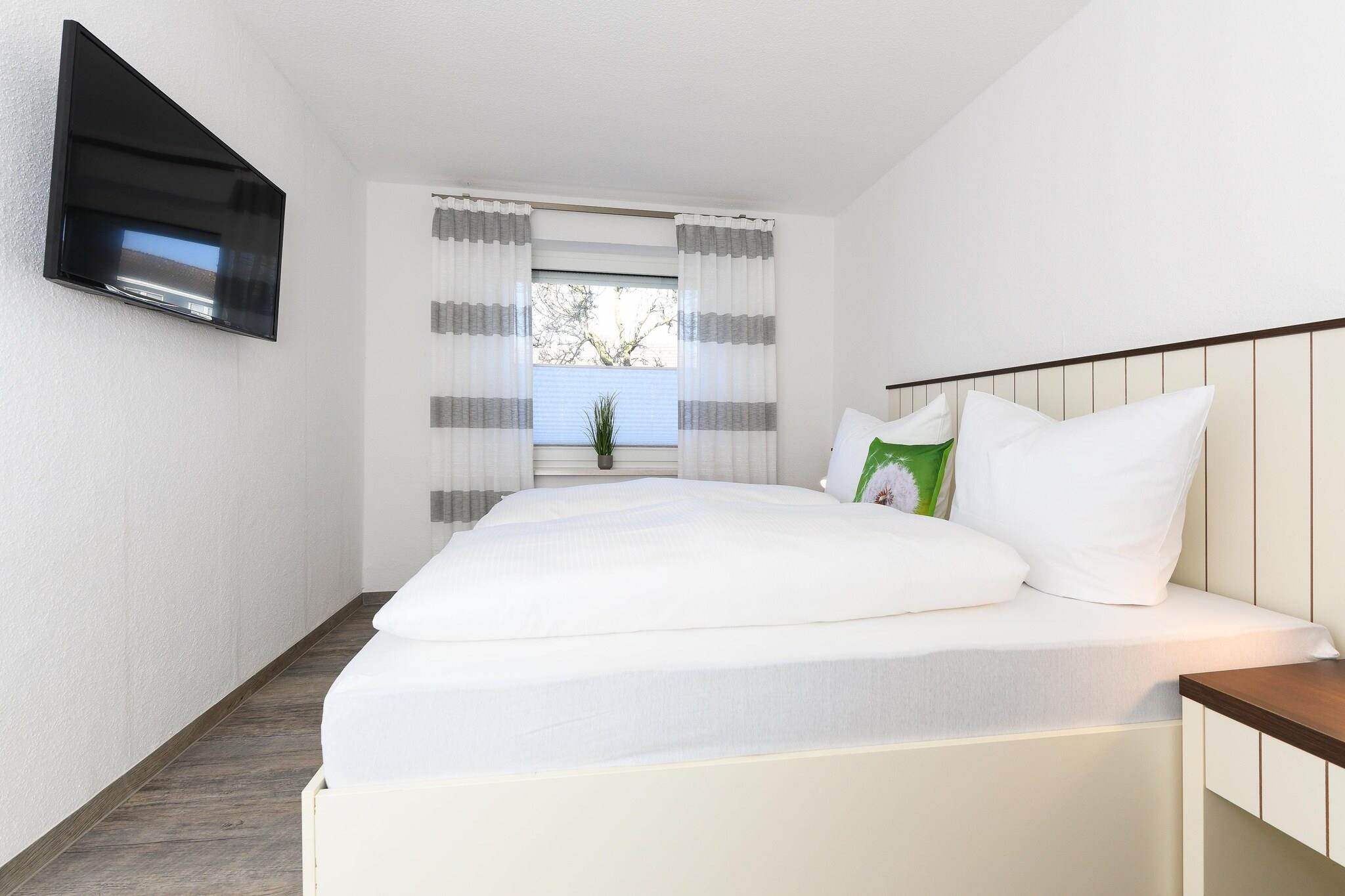 Denne komfortable leiligheten i første etasje tilbyr omtrent 55 m² plass til opptil 4 personer. To separate soverom, en koselig stue med integrert kjøkken og et moderne bad sikrer en fullstendig avslappende ferieopplevelse ved Nordsjøen. Det fullt utstyrte kjøkkenet med alle nødvendige hvitevarer, samt flatskjerm-TV, komfortable madrasser og gratis Wi-Fi skaper de perfekte forholdene for avslappende dager som par eller med familien. Badet er funksjonelt og møblert til en høy standard – med dusj, toalett og servant. Vaskemaskin og tørketrommel er tilgjengelig for felles bruk i huset. En velstelt hage bak huset inviterer deg til å slappe av og gir god plass for barn å leke. Takket være den sentrale, men rolige beliggenheten, kan du enkelt nå stranden, sentrum og fritidsaktiviteter til fots. Høydepunkter: Wi-Fi, forbruksbaserte energikostnader og en sengetøypakke er inkludert. Merknad om sluttrengjøring: For opphold på mindre enn 5 netter betales et gebyr på EURO80; ellers er sluttrengjøring inkludert.
