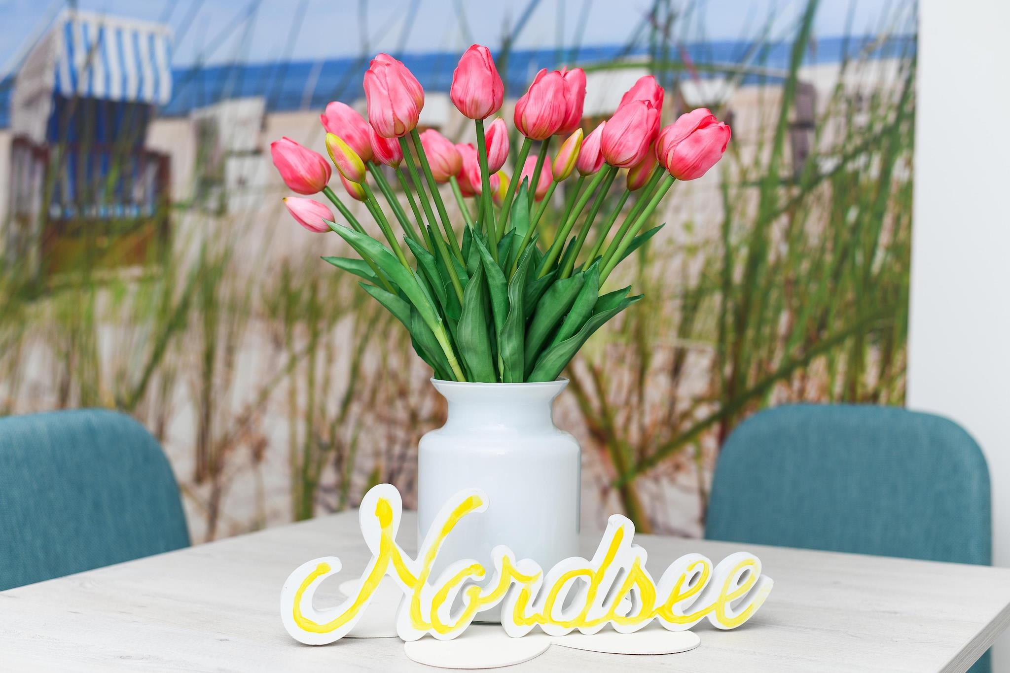 Denne kjærlig møblerte leiligheten i første etasje tilbyr omtrent 40 m² plass til opptil to personer pluss et ekstra småbarn. Den lyse vinterhagen skaper en koselig atmosfære og inviterer deg til å slappe av selv i det nordtyske været. Leiligheten har et separat soverom, en stue, et praktisk kjøkken med alle nødvendige hvitevarer og et moderne bad med dusj, toalett og servant. Wi-Fi og flatskjerm-TV er tilgjengelig for ekstra bekvemmelighet. Vaskemaskin og tørketrommel deles i huset. Den store hagen bak huset gir barnefamilier ekstra plass til å leke og slappe av. Takket være den rolige beliggenheten nær kysten er leiligheten et ideelt utgangspunkt for avslappende dager ved Nordsjøen. Høydepunkter: Wi-Fi, forbruksbaserte energikostnader og en vaskepakke er inkludert. Merknad om sluttrengjøring: For opphold på mindre enn 5 netter betales et gebyr på EURO80; ellers er sluttrengjøring inkludert.