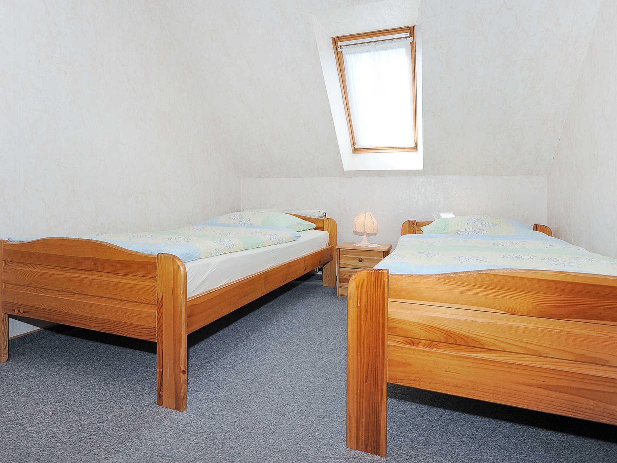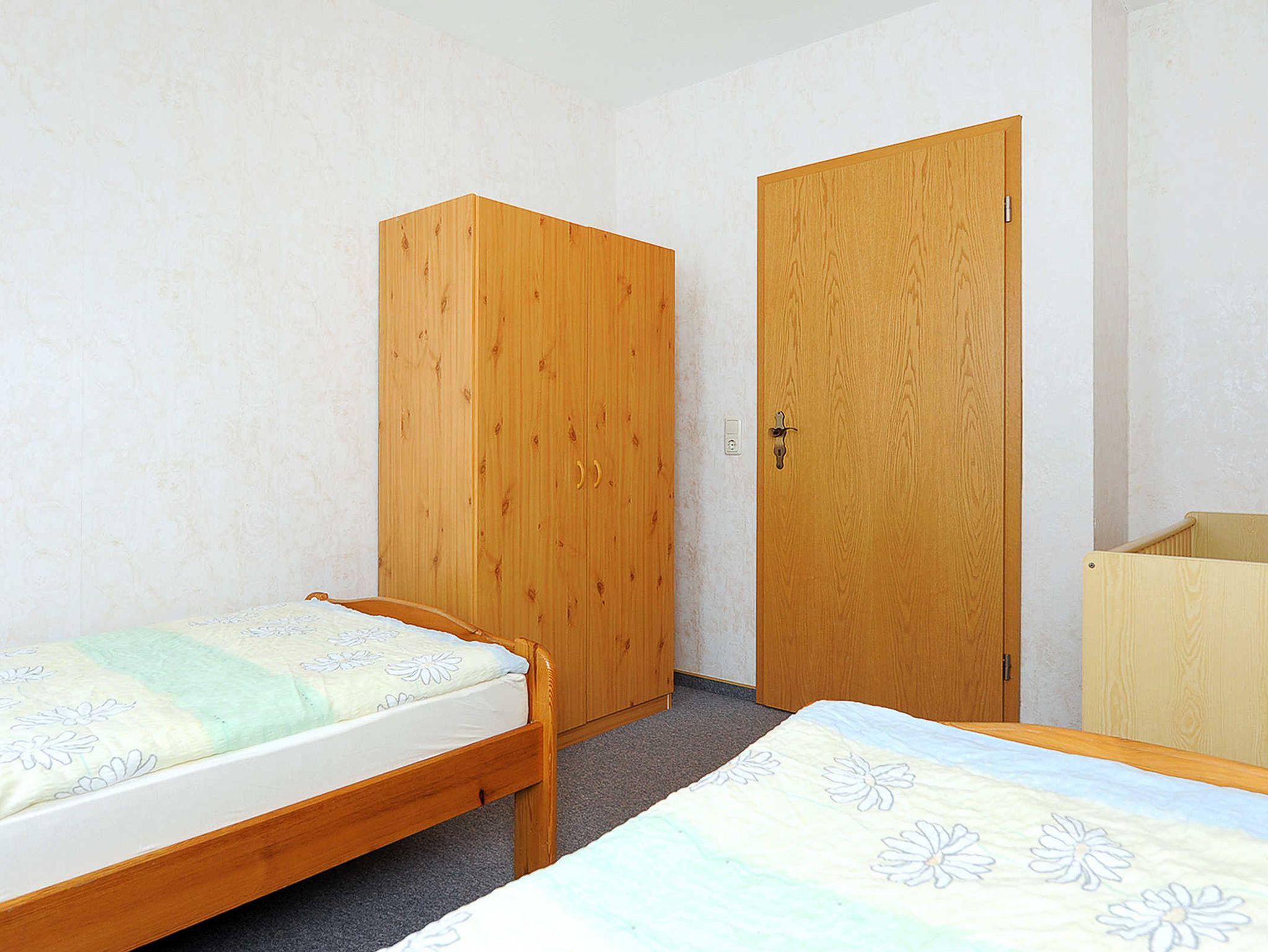 Größe ca. 50 Quadratmeter, Wohnraum mit integrierter Küche, Schlafzimmer, zweites separates, Schlafzimmer/Kinderzimmer, Badezimmer mit Dusche, Waschtisch und WC, Obergeschoss, Terrasse (Gemeinschaftsterrasse), optimal für 2 bis 4 Personen.