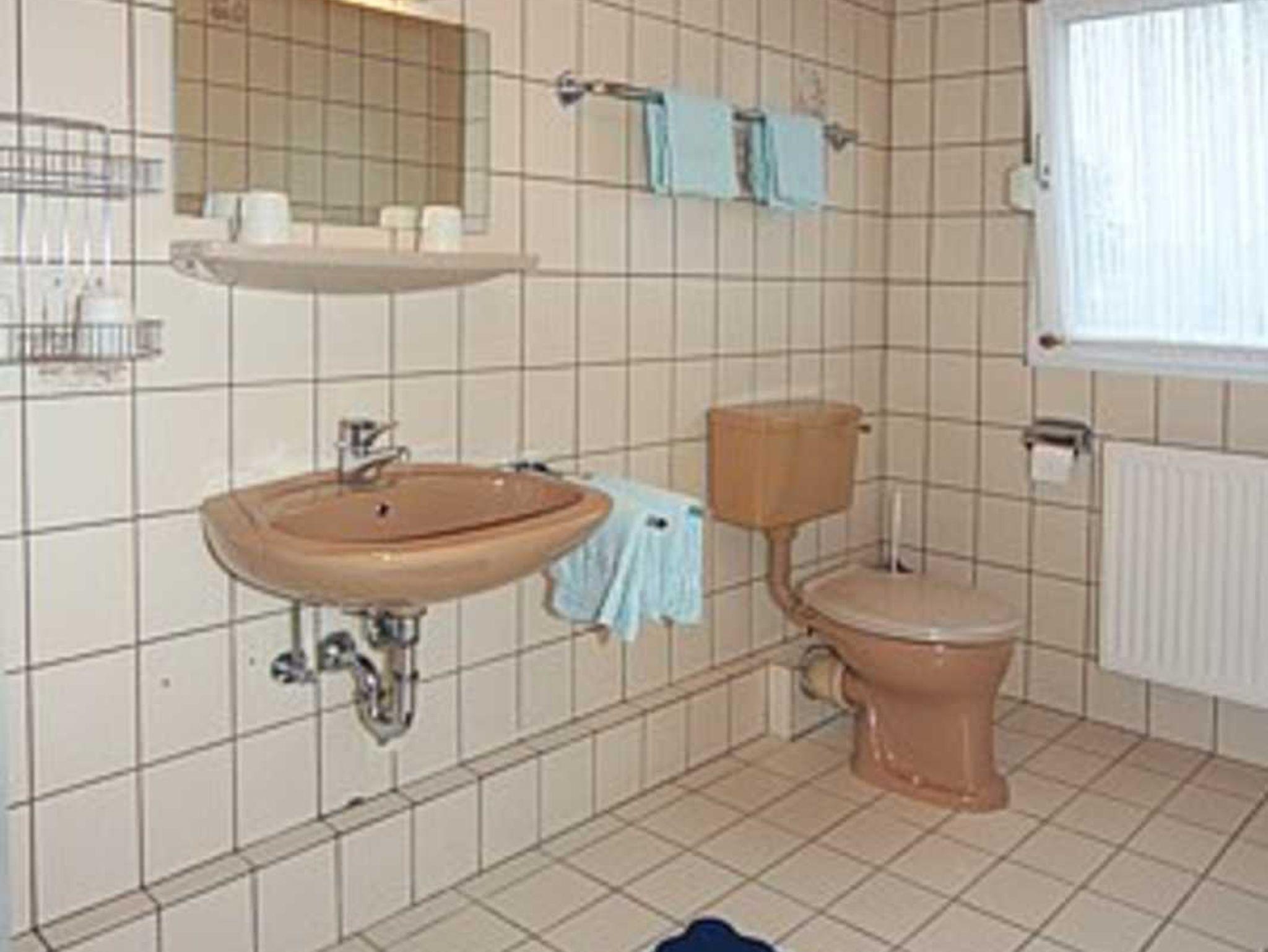Badezimmer mit Dusche, Waschtisch und WC