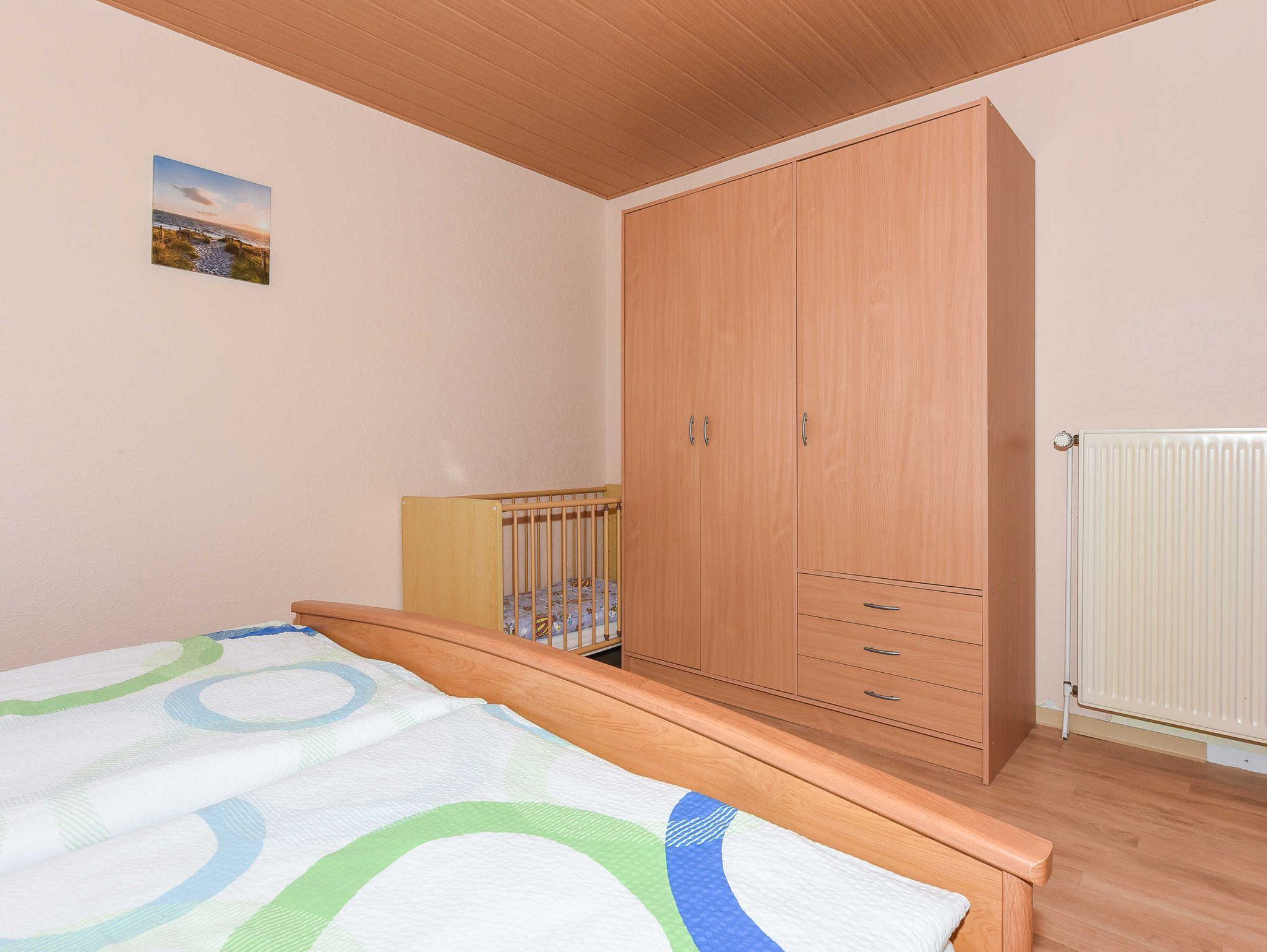 Größe ca. 40 Quadratmeter, Wohnraum mit integrierter Küche, Schlafzimmer, zweites separates Schlafzimmer/Kinderzimmer, Badezimmer mit Dusche, Waschtisch und WC, Obergeschoss optimal für 2 bis 3 Personen.