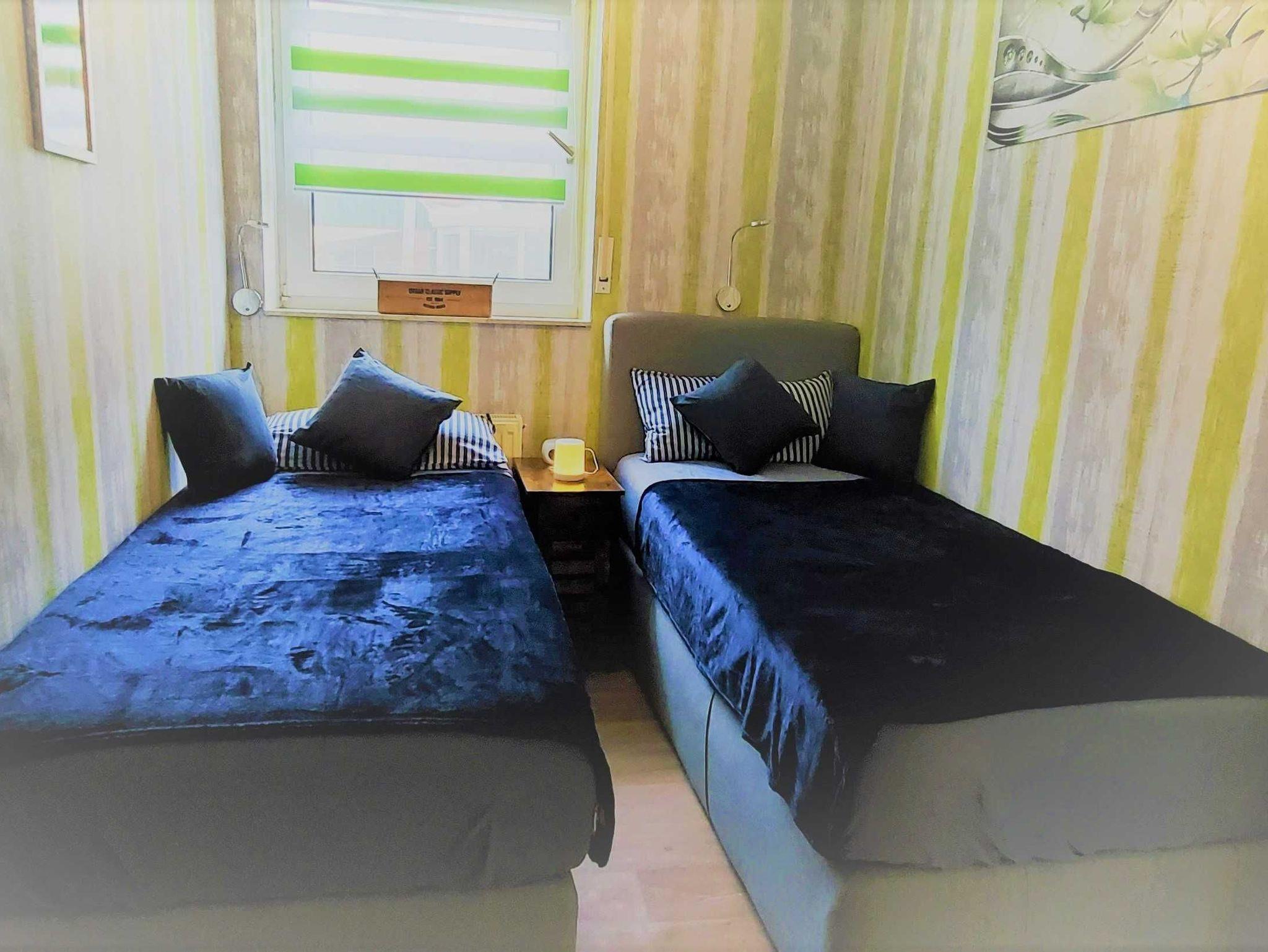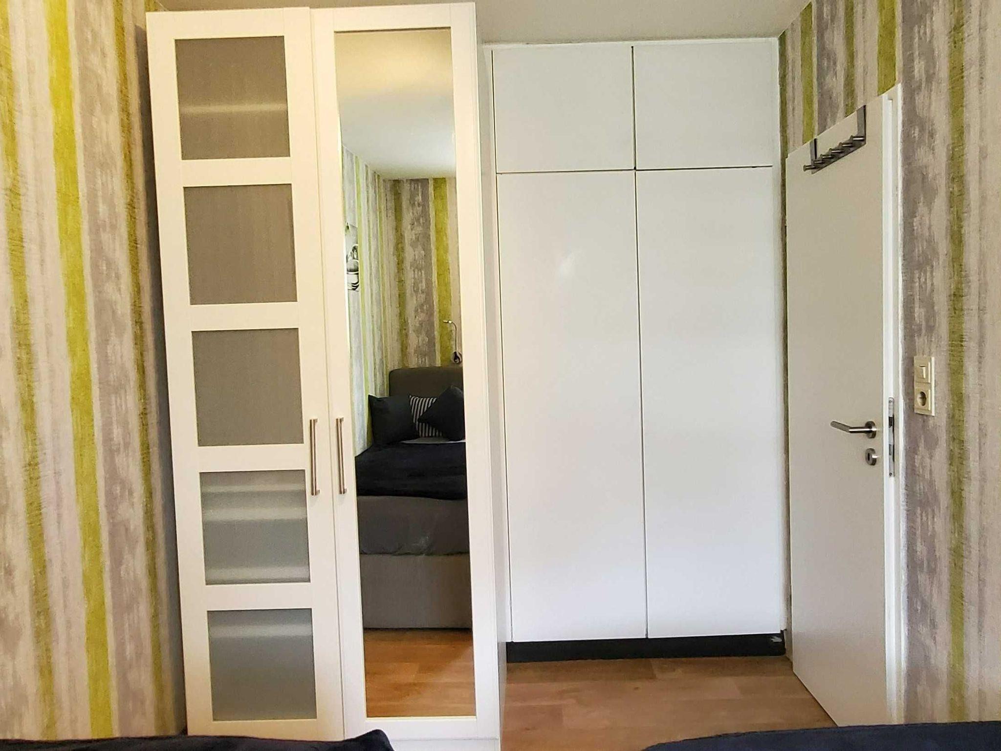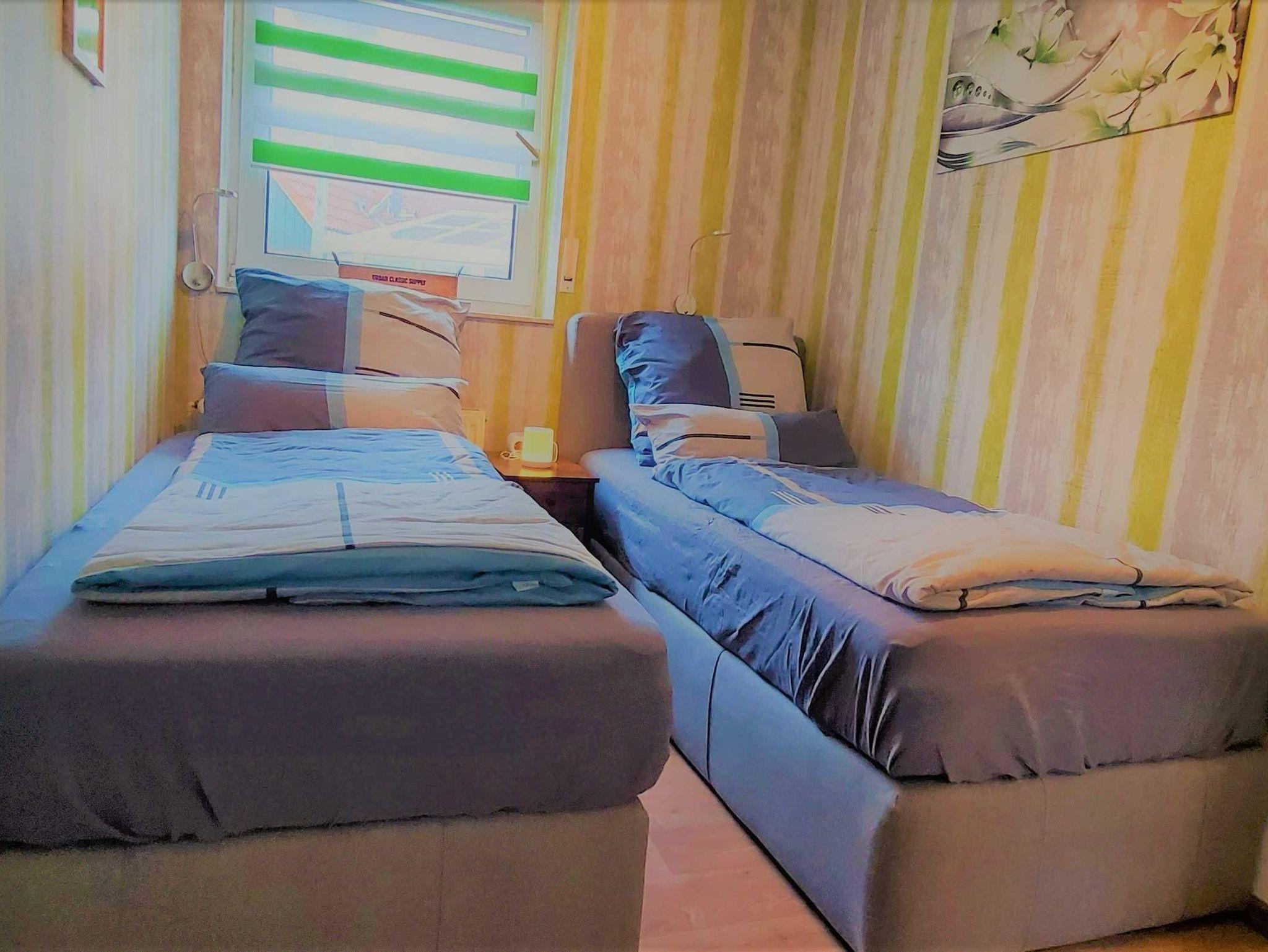• Zweites Schlafzimmer mit 2 feststehenden Boxspringbetten (je 90x200 cm). Kleiderschrank und Steckdosen.