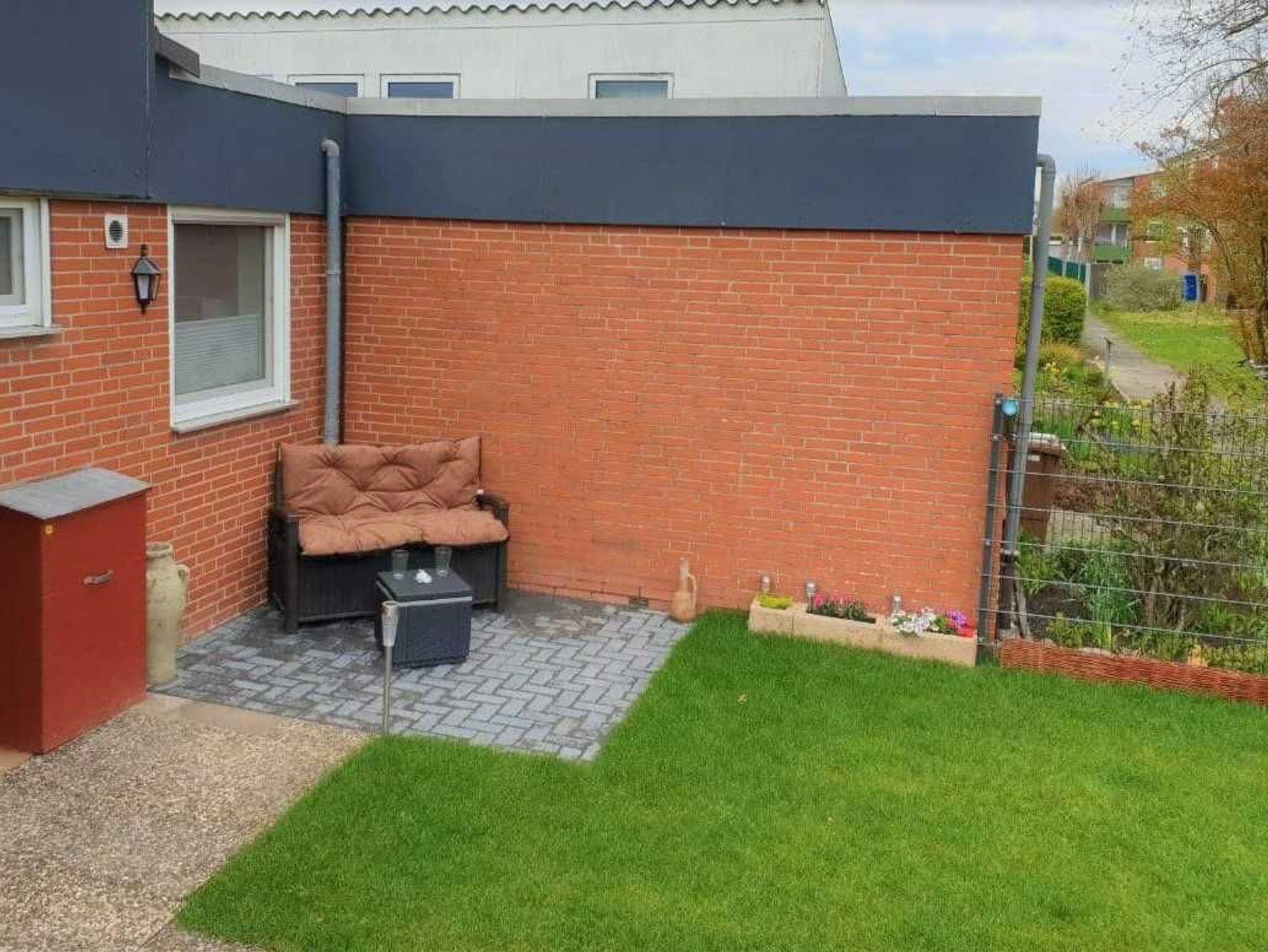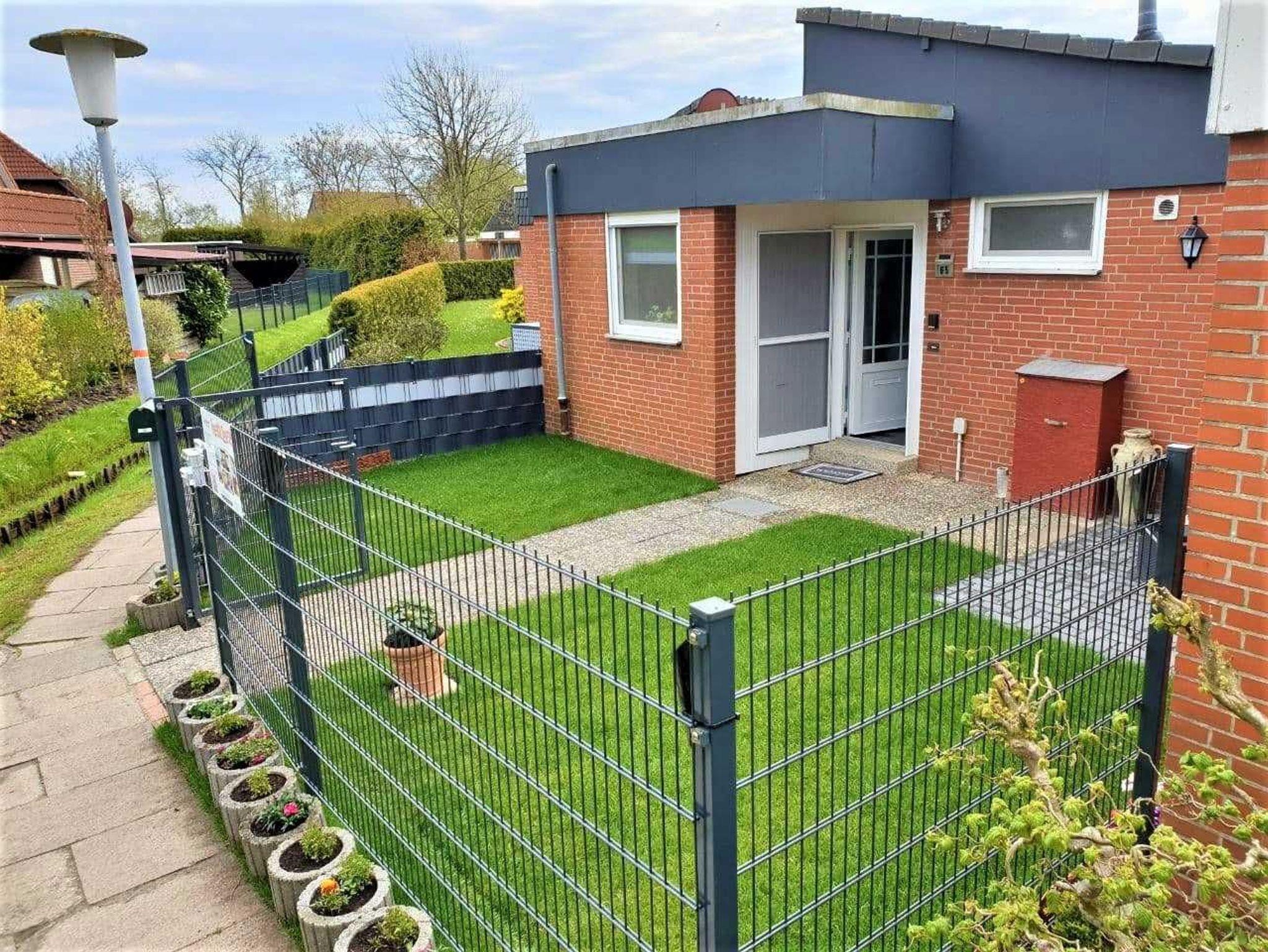 • Der Vorgarten hat eine eingezäunte Wiese und eine gemütliche Sitzecke.