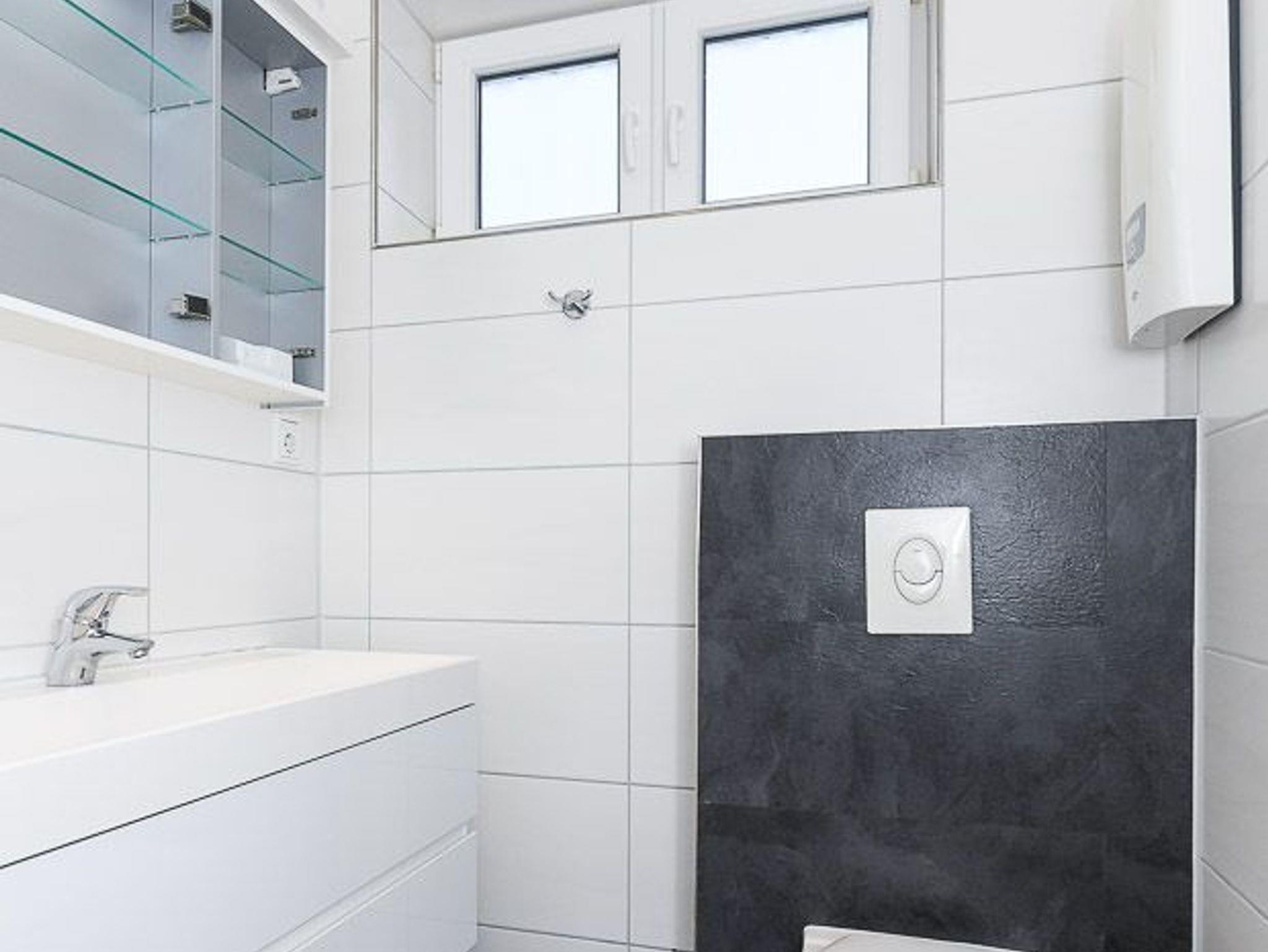Badezimmer mit Dusche, Waschtisch und WC