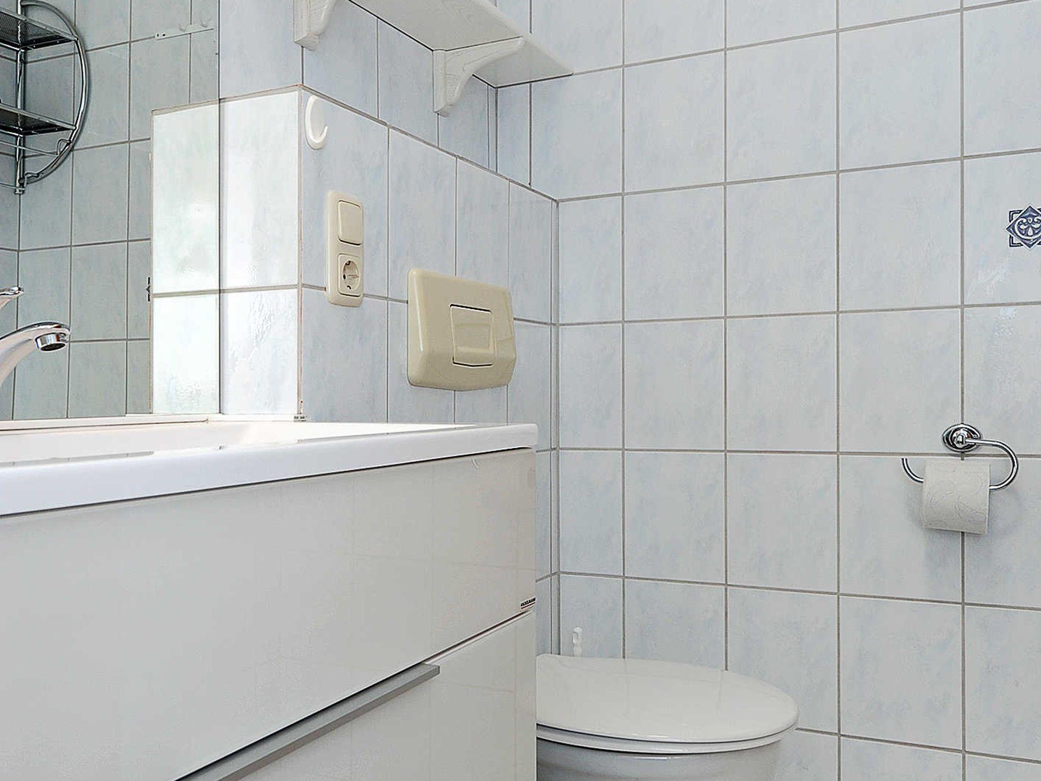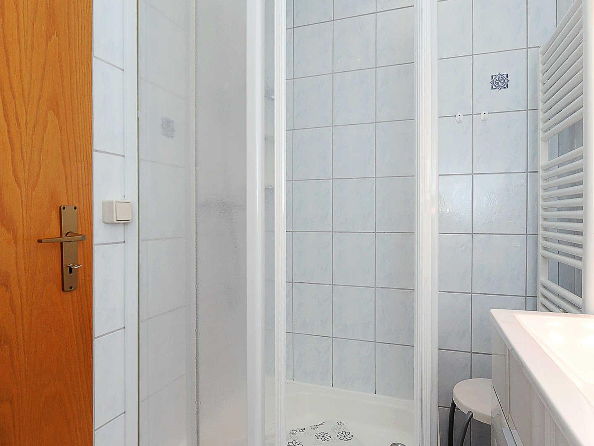 Badezimmer mit Dusche, Waschtisch und WC