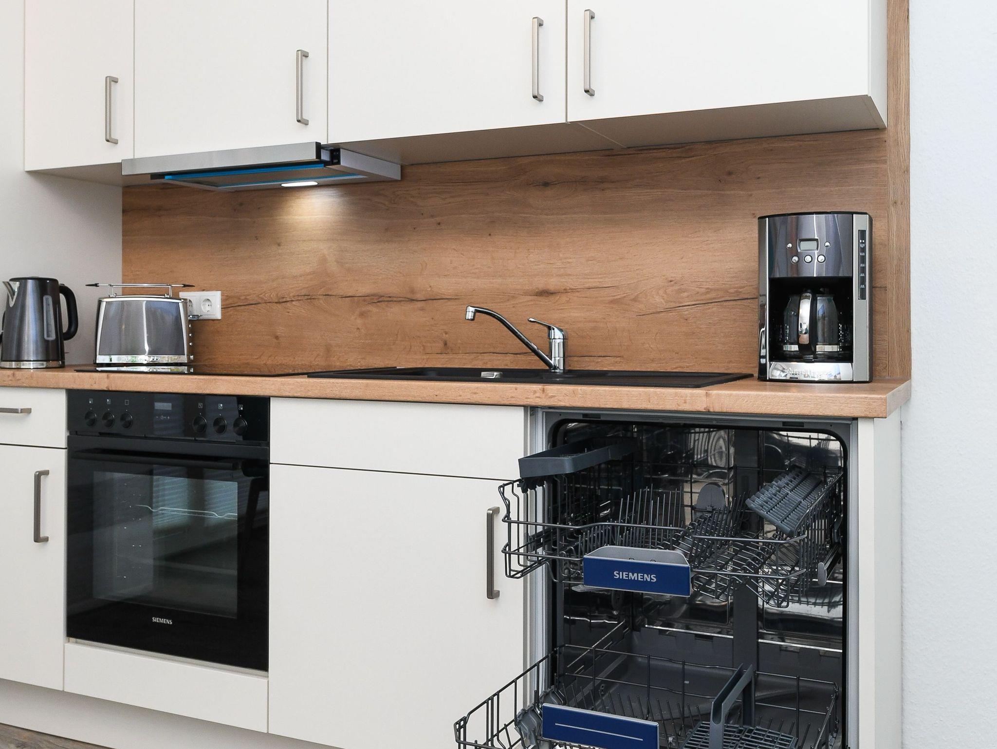 Die meisten unserer Wohnungen sind mit Mikrowelle und Geschirrspülmaschine ausgestattet, selbstverständlich sind Satelliten-TV, eine hochwertige technische Ausstattung sowie ein allgemein hoher Standard der Einrichtung.